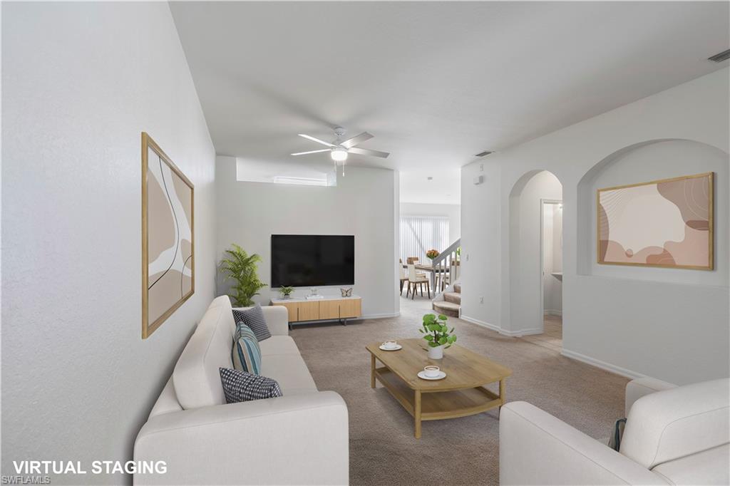 ***Mortgage savings may be available for buyers of this listing***Townhome that feels welcoming from the moment you enter. This 3-bedroom, 2.5-bathroom residence in the Bristol Pines community begins with a spacious living area that flows effortlessly into a kitchen offering generous storage, great counter space, a convenient breakfast bar, and a new dishwasher. The adjacent dining area sits just off the kitchen, while sliding doors lead to a screened lanai that backs to woods, providing a peaceful, wooded view. The main level also features a half bath, a laundry room, a newer hot water heater, and a newer HVAC system (approximately 4 years old) for added comfort. Upstairs, the primary retreat offers tray ceilings, an ensuite bathroom with a dual vanity, a separate tub and shower, and a walk-in closet. Two additional bedrooms share a full bathroom. Freshly painted interior throughout gives the home a bright, move-in ready feel. A 1-car garage adds practicality, and the community provides resort-style amenities including a clubhouse, pool, exercise room, playground, and tennis and basketball courts. Don’t miss the chance to make this upgraded townhome your new home, conveniently located close to Collier Blvd, shopping, dining, and more!