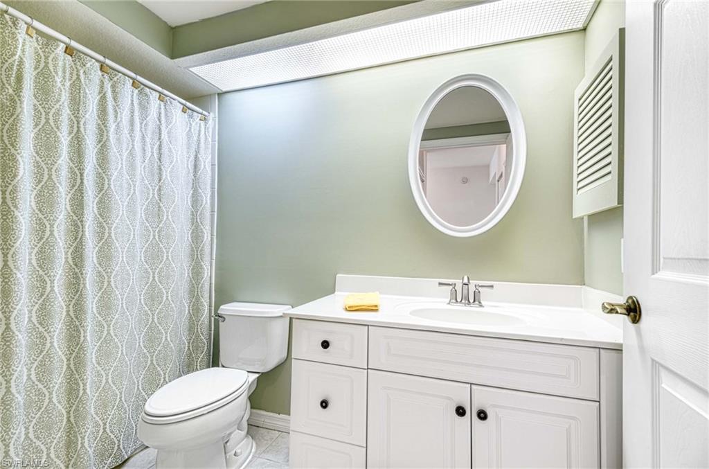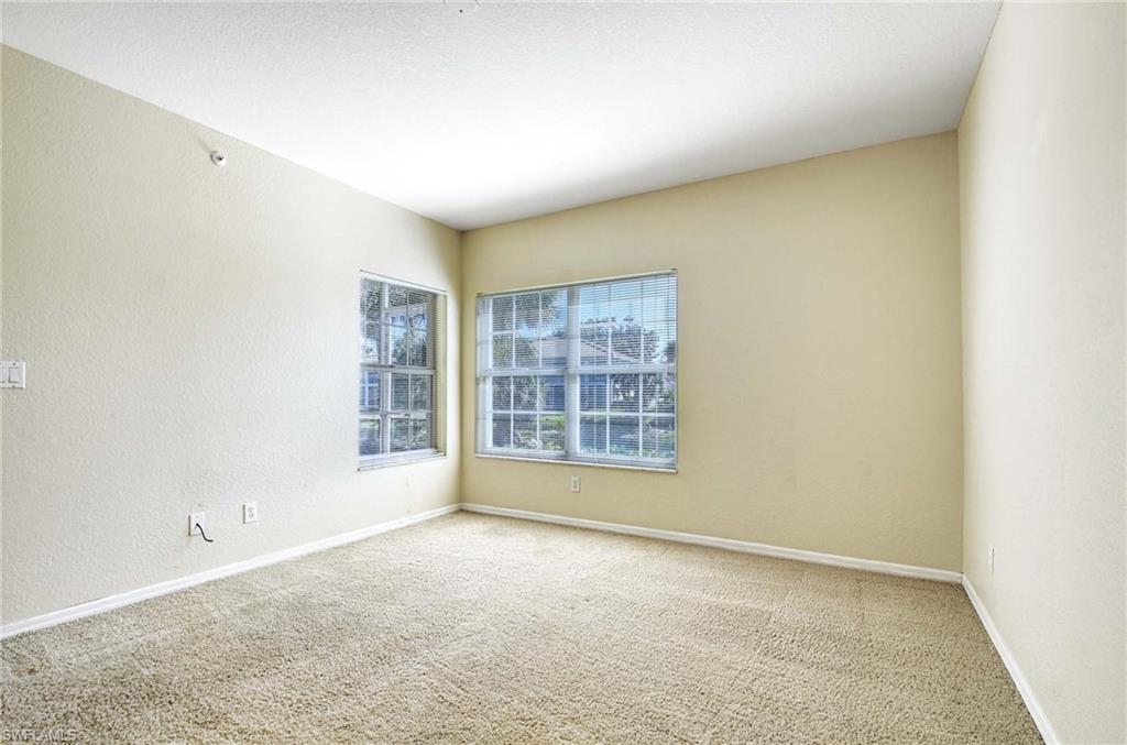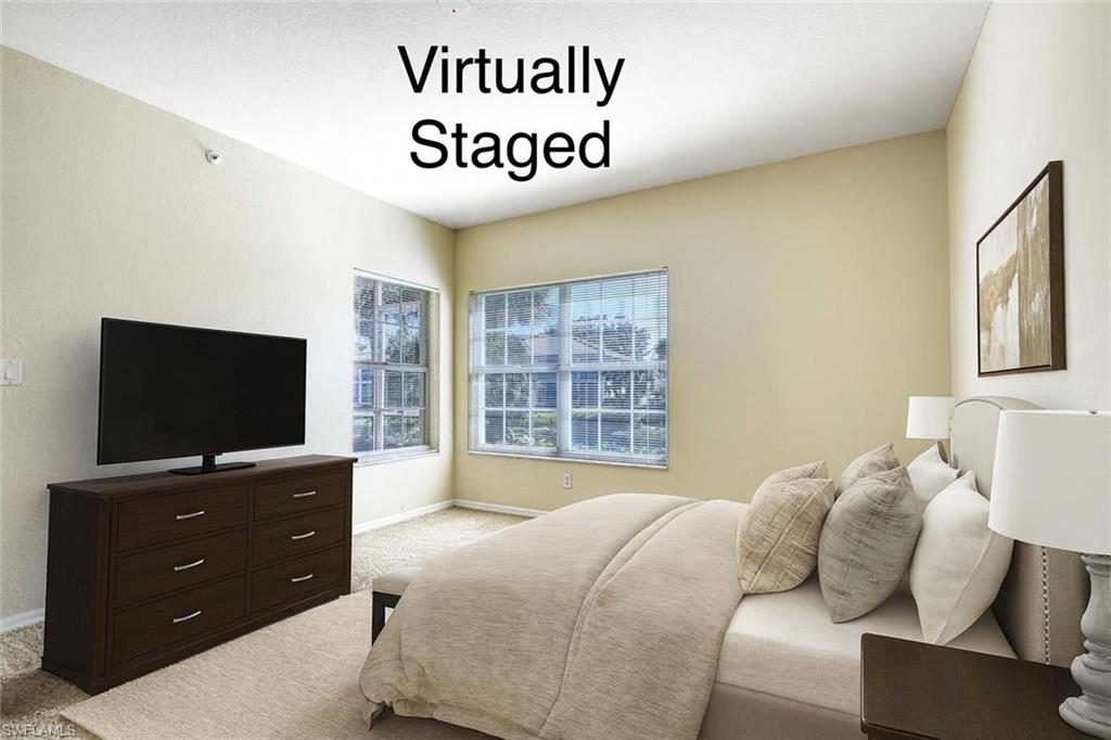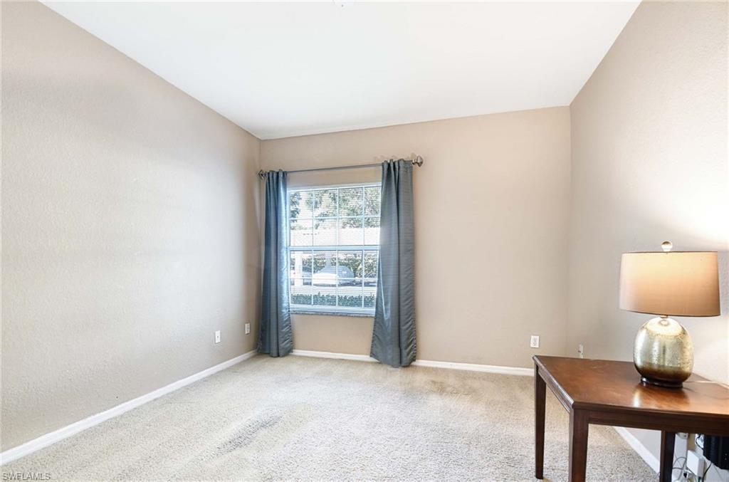 CALUSA BAY - LIGHT, BRIGHT AND MOVE-IN READY UPSTAIRS END UNIT: Welcome to this very well maintained second-floor end-unit condo featuring 2 bedrooms, a den and 2 bathrooms. With an open floor plan and an abundance of natural light, this condo offers a spacious and inviting atmosphere. Newly installed luxury vinyl flooring flows throughout, complemented by soft, neutral carpet on the stairway for added comfort. In addition, the A/C was replaced two years ago. This well-maintained community has undergone recent upgrades, including new roofs in 2019, freshly painted buildings in a modern off-white hue in 2021, updated signage, and all-new lantern-style lighting for a refreshed and contemporary look in 2021. The Fitness Center has also been redone with a variety of cardio and strength-training equipment. It also features a group exercise area with a ballet bar. It is a state-of-the-art community fitness center. In addition, the listing includes a covered carport space. There are additional parking spaces available for your guests. Calusa Bay's location is just minutes from the Waterside Shoppes and Mercato, with their fine-dining restaurants and upscale shopping, Whole Foods, Vanderbilt Beach, The Ritz-Carlton, LaPlaya and The Turtle Club. It is also just a short drive to the vibrant 5th Avenue and Third Street districts. Don't miss the opportunity to make this spotlessly clean and nicely updated condo your new vacation home or permanent home. This condo would also be a great investment property. The HOA fee covers everything but electricity.