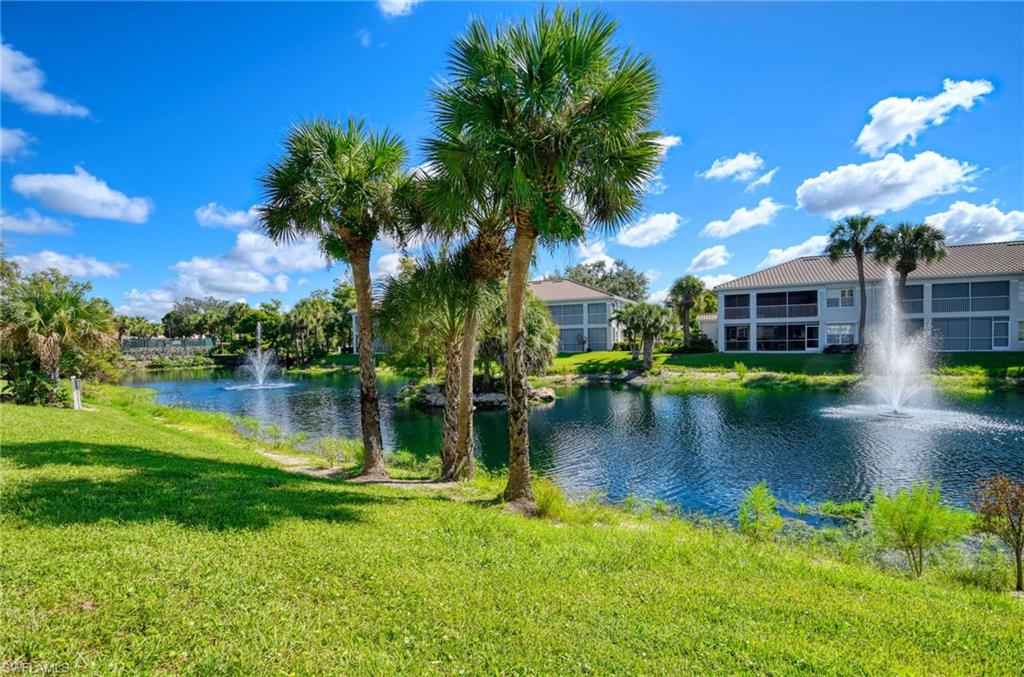 TURNKEY CONDO WITH STUNNING LAKE VIEWS IN PRIME LOCATION! Located in North Naples, just 10 minutes from Vanderbilt Beach, Mercato and the municipal main library. Top shopping and dining destinations close by. This meticulously maintained 2-bedroom, 2-bath condo offers serene water views with fountain, perfect for enjoying sunrises from the lanai. Light, bright, and tastefully updated, the home features a renovated kitchen and new flooring throughout. Vaulted ceilings add to the spacious, airy feel. Recent updates include modern lighting, ceiling fans, accent walls, and fresh paint. Move-in ready—being sold fully turnkey. Enjoy fantastic community amenities including a library, fitness center, two pools with a lap pool and spa, tennis courts, and a vibrant social scene with organized games, live music, dancing, and group outings. Buildings received new roofs in 2019 and were repainted in 2021. Whether you're seeking a seasonal retreat or full-time residence, this condo offers style, comfort, and convenience at an excellent value. This property qualifies for a 1% lender incentive—ask for details!