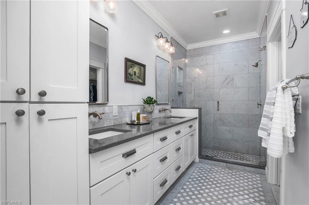 Gorgeous 2 plus den villa home nestled in the vibrant town of Naples, this exquisite property offers an unparalleled lifestyle with a host of community amenities including tennis and bocce courts, a clubhouse featuring a 60-ft lap pool and hot tub, a fishing pier, and a tot lot for endless enjoyment. Revel in the beauty of a preserve view from your expansive screened lanai, the perfect setting for relaxation or entertaining. The home boasts a fully updated kitchen showcasing white cabinetry, stunning quartz counters with a double ogee edge, complemented by a Cafe Appliance package in matte white with brushed bronze accents, along with brushed bronze hardware. Enhance your living experience with updated laminate wood flooring, updated lighting fixtures throughout and a brick-paved driveway surrounded by meticulously updated landscaping that adds exceptional curb appeal. Full hurricane protection ensures peace of mind. The den can easily be converted into a 3rd bedroom by adding the doors back on which the seller has available. Situated within walking distance to Seed to Table and The Strand shopping plaza, and just 6 miles from Naples’ pristine white sand beaches, this residence offers convenience to premier shopping, dining, and entertainment options, making it a perfect haven for those seeking the best of Florida living.