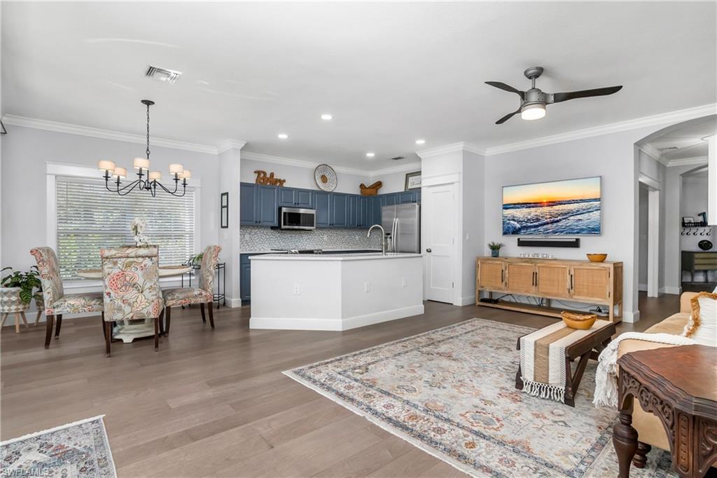 Welcome to the neighborhood! Don't miss your opportunity to see this light & bright single family home situated on a pie shaped lot with attractive landscaped views in the gated community of Carlton Lakes. This adorable 3 bedroom plus den home has an open concept floor plan that is great for entertaining family and friends. You'll enjoy volume ceilings, decorative archways, upgraded carpet in bedrooms, tile laid on the diagonal and updated lighting in the kitchen, dining & entryway. The kitchen features wood cabinetry, Corian countertops, an eat in kitchen area & breakfast bar. Two spacious guest bedrooms share a full bath with shower/tub combo. Carlton Lakes amenities include tennis courts, bocce courts, fishing pier, a club house with a fitness room, 60 ft lap pool and hot tub. You'll enjoy being close to shopping, dining and 6 miles from Naples white sand beaches. This home is sold with a 1 year home warranty for the new buyer at closing.