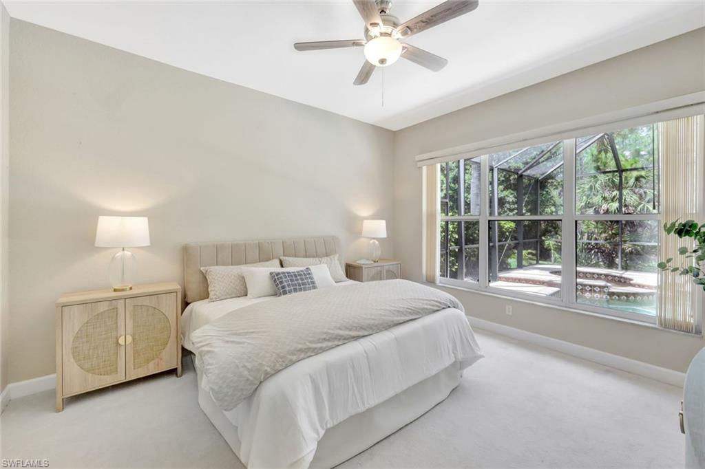 Wake up to a one-of-a-kind view, with a shimmering lake, and natural preserve as your backdrop. This first floor coach home in the sought-after Carlton Lakes community offers the best of Naples living on one of the most coveted streets in the neighborhood. Step through a spacious foyer with arch wall details, and you’ll be captivated by unobstructed lake view! At the heart of this welcoming residence is a completely updated kitchen, showcasing modern finishes and an inviting kitchen island that seamlessly connects to the living area. Double doors off the living area lead to the private primary suite, which includes a spacious bedroom, a functional bathroom, and a large walk-in closet—all blending comfort with convenience. A unique transformation of previously unused second-lanai space has created a true third bedroom with a closet, complemented by an office nook that easily accommodates work-from-home or creative pursuits. Throughout the unit, upgraded flooring adds a fresh, contemporary feel, while an updated water heater and AC system ensure comfort and efficiency year-round. Layout offers plenty of clever storage solutions so you’ll never run short on space. The extended driveway gives you extra parking, and you're a short walk from both the main and satellite pools. Whether you’re looking to take a refreshing dip in the nearby main pool or unwind at the satellite pool, you’ll find both just a short stroll from your front door. The clubhouse serves as a hub for social gatherings and community amenities—is also within easy reach. Inclusive of tennis courts, basketball court, children's playground, gym, and fishing pier A well-maintained, gated enclave, Carlton Lakes combines natural beauty and a sense of peaceful retreat. Located in North Naples, Carlton Lakes is in prime position with just minutes from pristine Gulf beaches, upscale shopping, diverse restaurants, and scenic parks. If you appreciate fresh, locally sourced produce, you’ll love having the popular Seed to Table market right outside the community’s main entrance. To make your move even simpler, furnishings are negotiable. Don’t miss this opportunity to own a slice of paradise in Naples, where serene lake views, modern comforts, and exceptional convenience come together to create the perfect Florida lifestyle.