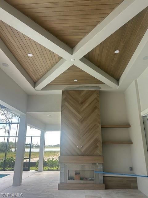 Discover the epitome of luxury living in this new Madison II model by Stock Development, on a spectacular lakefront lot with breathtaking wide water views. This meticulously designed home is loaded with high-end upgrades and is ready for you to move in immediately! As you enter this exquisite residence, you’ll be greeted by soaring 14-foot ceilings and expansive 10-foot sliders that seamlessly blend indoor and outdoor living spaces. The gourmet kitchen is a chef’s dream, featuring a premium JennAir appliance package and elegant quartz countertops that elevate style and functionality. Go outside to the oversized pool area, with outdoor fireplace complete with luxurious Mugia 12-by-24-inch tile, ideal for entertaining and relaxation. The spa invites you to unwind as you take in the stunning views this exceptional lot has to offer. Throughout the home, designer lighting by Clive Daniels adds a touch of sophistication, enhancing every room. The spacious layout includes thoughtfully designed living areas that cater to today’s lifestyle, and the three-car garage with pre-finished flooring provides ample space for vehicles and storage. Don’t miss this rare opportunity to own a beautiful new construction home in one of the sought-after models available. Experience the ultimate in waterfront living and make this dream home your reality today. Schedule a private showing!