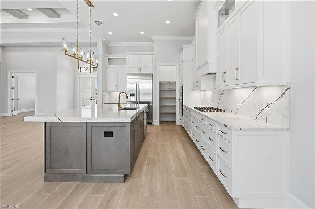 Be among the first to own in this premier new community by STOCK Development! This Gardenia II floor plan will be ready just in time for the holidays. Featuring Sub-Zero and Wolf appliances with a gas cooktop, custom-designed closets, and a host of luxurious upgrades throughout. Step outside to nearly 1,000 sq ft of covered lanai with a fully equipped outdoor kitchen and fireplace - perfect for entertaining. Top it off with a stunning custom pool and spa overlooking a serene southwest-facing lake view. Caymas is set on 780 magnificent acres in a prime Naples location, offering an incomparable waterfront lifestyle in an unmatched setting enriched by exclusive amenities offering a kayak launch, golf simulator, private theater, billiards and indoor and outdoor dining, bocce, dog park and much more. The stunning 25,000 square foot clubhouse offers a variety of ways to connect with friends and neighbors.