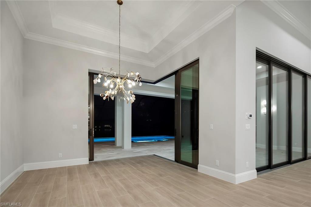 YOUR PICKLE BALL FRIENDS ARE HERE! NEW CONSTRUCTION at CAYMAS! The Chandler V will offer a gas kitchen cooktop and outdoor kitchen in nearly 800 square feet of covered lanai living space and a beautiful custom pool and spa package with a private wooded view. Many options and upgrades. Caymas is set on 780 magnificent acres in a prime Naples location, offering an incomparable waterfront lifestyle in an unmatched setting enriched by exclusive amenities offering a kayak launch, golf simulator, private theater, billiards and indoor and outdoor dining, bocce, dog park and much more. The stunning 30,000 square foot clubhouse offers a variety of ways to connect with friends and neighbors.