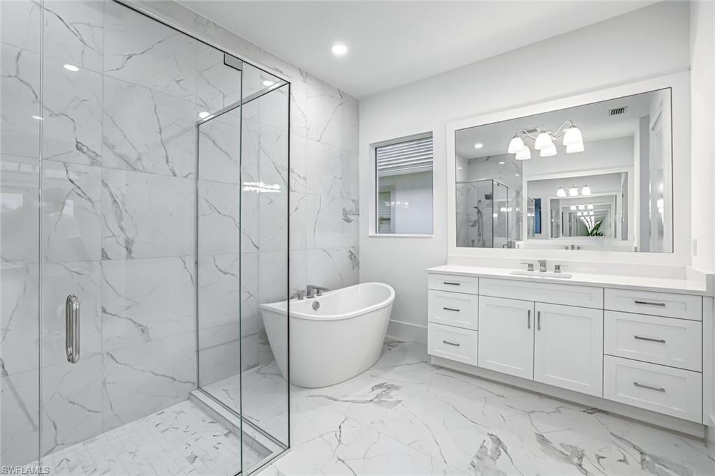 Looking for modern finishes? Here is your chance to own NEW CONSTRUCTION in CAYMAS! This new community by STOCK Development is a must see! Pickleball is OPEN! This is your opportunity to live in the Birchwood III floor plan with our newest modern elevation. The Birchwood III will offer a gas kitchen cooktop and outdoor kitchen in nearly 500 square feet of covered lanai living space and a beautiful custom pool and spa package with a private wooded view. Many options and upgrades. Caymas is set on 780 magnificent acres in a prime Naples location, offering an incomparable waterfront lifestyle in an unmatched setting enriched by exclusive amenities offering a kayak launch, golf simulator, private theater, billiards and indoor and outdoor dining, bocce, dog park and much more. The stunning 30,000 square foot clubhouse offers a variety of ways to connect with friends and neighbors. (Exterior photo is a rendering of the Birchwood III Floor Plan Elevation.)