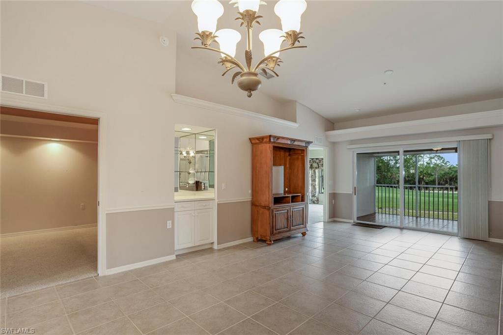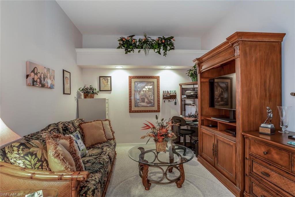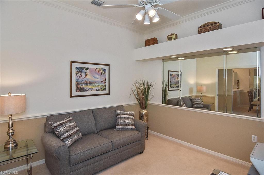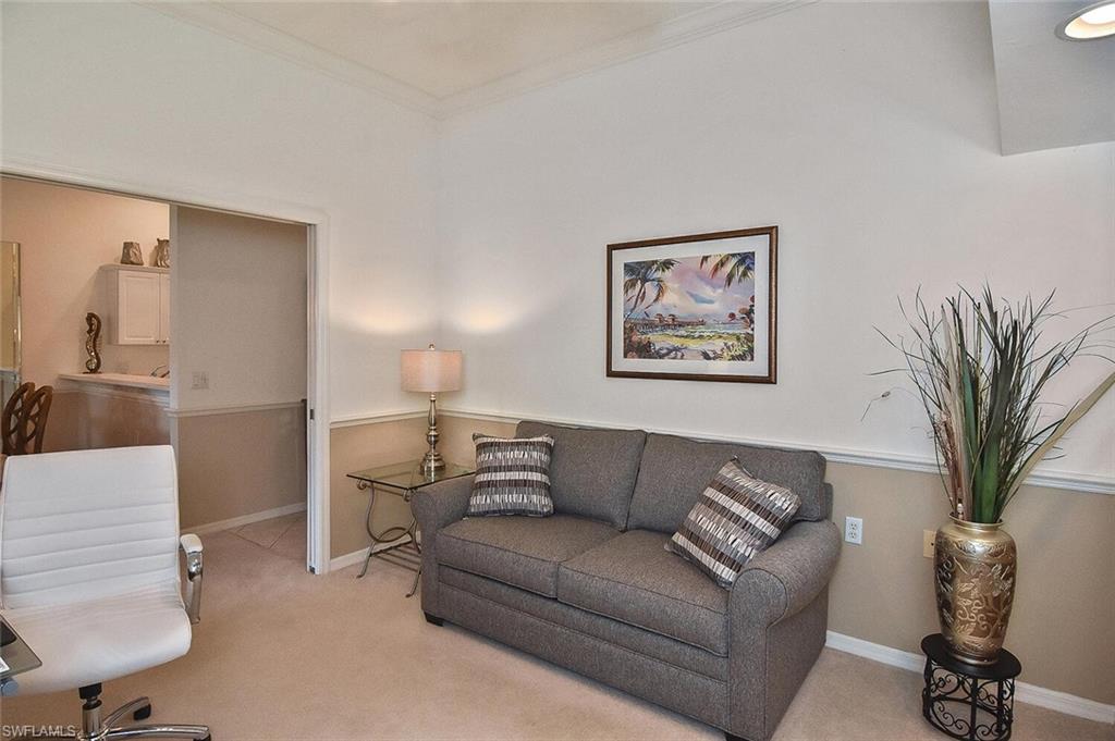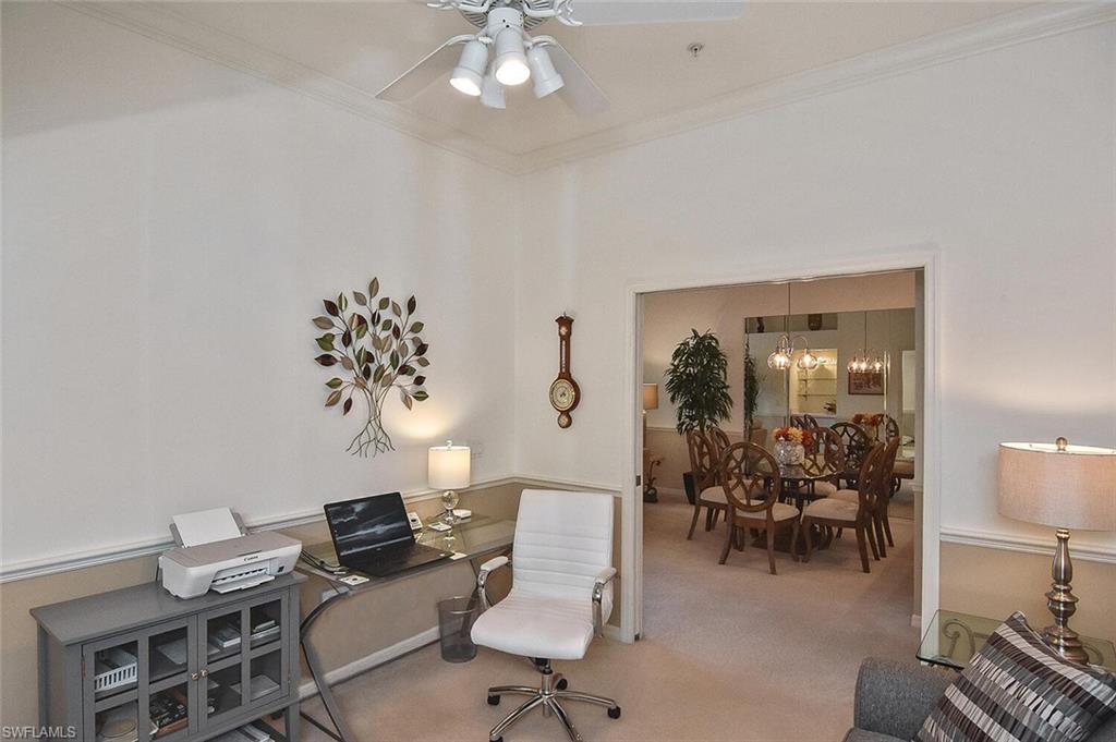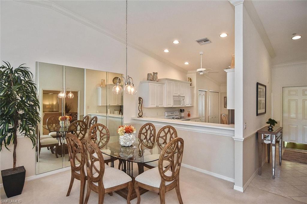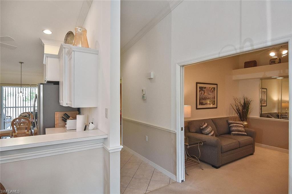 This first floor, turnkey furnished condo with an incredible golf course view must be seen to be believed! This beautifully maintained Veranda III residence is located in the highly sought-after Cedar Hammock Golf & Country Club, a premier bundled golf community in Naples. Offering 2 bedrooms plus a den, 2 full bathrooms, and a detached 1-car garage, this spacious home features 1,414 sq. ft. of living area (1,714 sq. ft. total including the front and rear screened lanais). Inside, you’ll find a bright open layout with crown molding, chair rails, and elegant travertine tile floors in the main living areas, complemented by luxury vinyl faux wood flooring in the bedrooms and den. The kitchen has been updated with quartz countertops, stainless steel appliances, and ample cabinet and pantry space. Enjoy peaceful mornings or relaxing evenings on either your front veranda or rear screened lanai—recently re-screened in 2025 and featuring Florida glass for added privacy. Notable updates include hurricane-impact windows, high end washer/dryer, new tile roof and exterior paint (2020), and surge protection throughout. The property also includes Wi-Fi readiness and plenty of guest parking nearby. Cedar Hammock offers a recently redesigned 18-hole championship golf course, practice facilities, resort-style pools, tennis and bocce courts, a fully equipped fitness center, and a beautifully renovated clubhouse with both casual and fine dining options, all within a guard-gated community just minutes from downtown Naples and the beaches. This is the one!