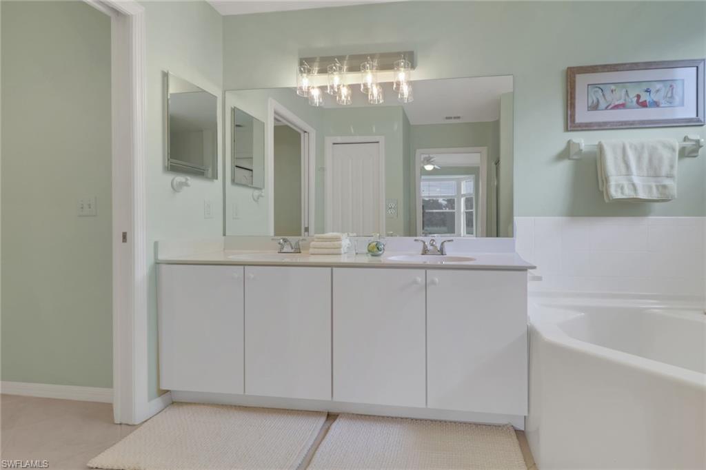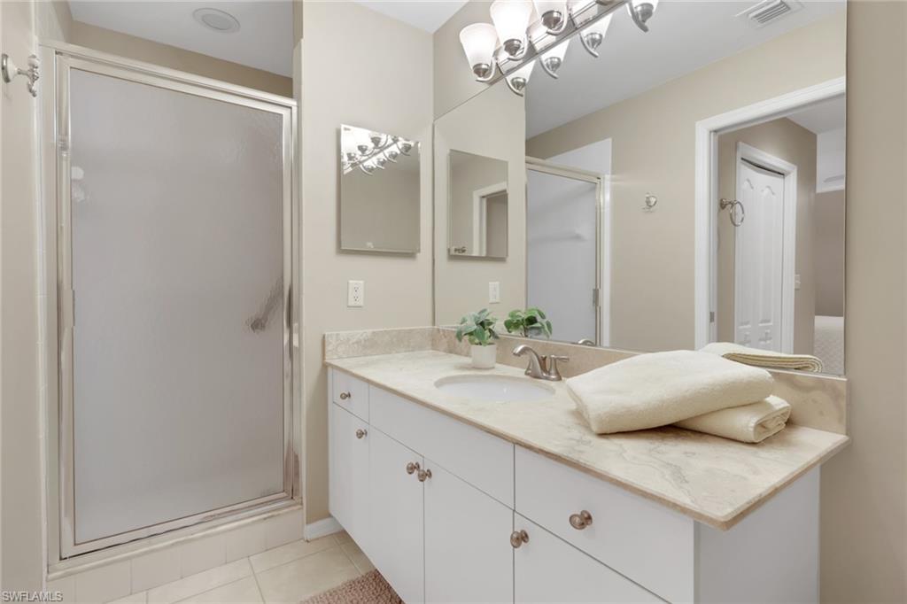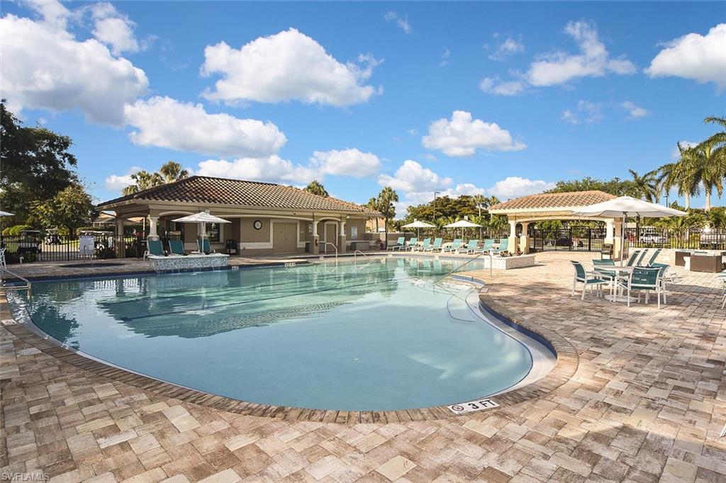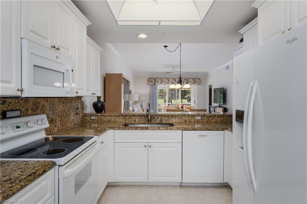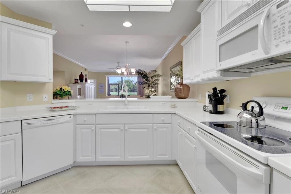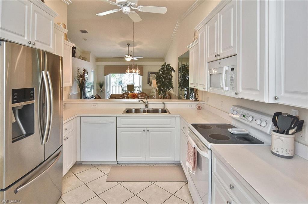 First floor, end unit Abbey (highly coveted!) is light and bright with just under 2000' square feet. The condo has large, south facing windows, with the back lanai overlooking the fairway of the 9th Hole of Cedar Hammock Golf and Country Club's award winning golf course. The 2 bedroom + den/2 bath has large front and back lanais for wonderful outdoor living, great storage with 3 walk in closets, two linen closets, plus a one car garage with extra storage. Large, neutral tile on the diagonal greets you in the nicely updated, eat in kitchen with updated cabinets, granite countertops, farmhouse sink, newer appliances and light fixtures. Brand new AC with transferable warranty, and the washer, dryer, hot water heater have also been updated. Freshly painted bedrooms and den have newly installed, gorgeous, light, wood laminate floors. The grand master bath has large walk in shower, separate soaking tub, the toilet in a private water closet, a linen closet and dual sinks for plenty of personal space, has also been freshly painted. Watch breathtaking sunsets from the comfort of your lanai while also viewing deer and birds wandering by. This unit is being offered turnkey so just pack your suitcase and golf clubs to unwind in your own slice of Naple's paradise. Cedar Hammock is a bundled golf community, 6,680-yard Par 72 Course, that was designed by two legendary golf course architects, Jed Azinger and Gordon Lewis. The redesigned Community Center features both indoor and outdoor dining options, a new resort pool, 2 story fitness center with professional trainer, pro shop, a competitive tennis program on updated courts, bocce courts with popular community programs. Close to both downtown Naples and Marco Island, great restaurants and shopping, all next to gorgeous white sand beaches.