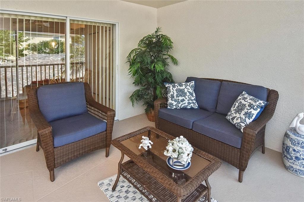 Sit back, relax, and enjoy the Cedar Hammock experience. Sunny mornings and gorgeous views from both the front and back lanais, in this beautifully updated and maintained Second Floor Condo nestled on Hole 12 of Cedar Hammock's Championship 18 Hole Golf Course. This Veranda has 2 large lanais, 2 large bedrooms plus den, 2 full baths and a one car garage, and is being sold turnkey. Elegant furnishings included, brand new AC with transferable 10 year warranty, newer light fixtures/fans, newer painting, newer flooring includes large tiles placed on the diagonal throughout most of the home, and wood laminate flooring in the master bedroom. Updated completely the master bath has new cabinets, custom glass shower, dual sinks, lights, hardware, etc - a gorgeous space. The Guest bath has also been beautifully updated. The active Cedar Hammock Community offers the perfect lifestyle - boasting a top bundled golf course - 4 community pools - newly updated cabana bar, The Hammock, a 2 story gym with machines and weights, professional trainers teach classes, yoga, tennis courts with competitive opportunities. Ride your bike to the gym for a yoga class or play a game of bocce, followed by lunch or dinner at the outstanding country club restaurant. Cedar Hammock is close to Naples and Marco Island, world class beaches, fine dining and minutes from shopping on famous 5th Avenue. Come see this beautiful condo in a great neighborhood.