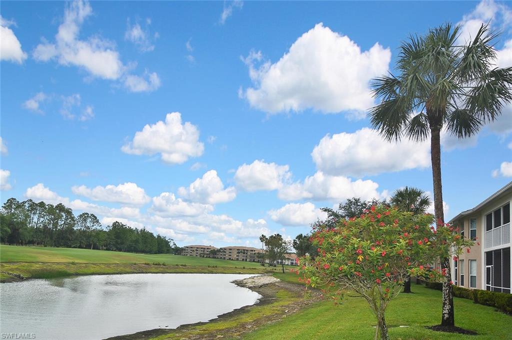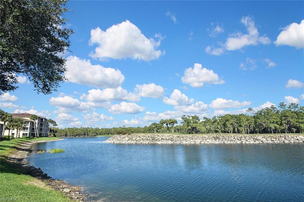 You must see this Beautiful turnkey-furnished 2 bedroom + Den, 2nd floor End-Unit with over 1,400 square feet of living area. This Colonade Model is light and bright with an amazing 180° Degree View of the lake and the 11th hole of the Cedar Hammock championship golf course. This condo is immaculate, and you will love the luxury vinyl plank flooring, new bedroom carpet, open floorplan with lots of windows, sparkling pool and fishing pier steps from your front door. This unit even comes with it's own extra large storage closet outside your front door. Cedar Hammock Golf and Country Club is a very active community, and provides the ultimate Naples lifestyle with a top bundled Par 72 golf course designed by Gordon Lewis and Jed Azinger, 4 community pools, and major improvements recently made to the amenities including indoor and outdoor dining. Enjoy the aqua driving range and putting greens, the 2 story fitness center, cabana bar, har tru tennis courts, bocce courts and incredible resort-style pool are sure to impress! Come meet your friendly neighbors and enjoy Florida Living at its finest! Cedar Hammock is ideally located close to Olde Naples and Marco Island, world-class beaches, fine dining, endless entertainment options, and minutes from exquisite shopping on famous 5th Avenue.