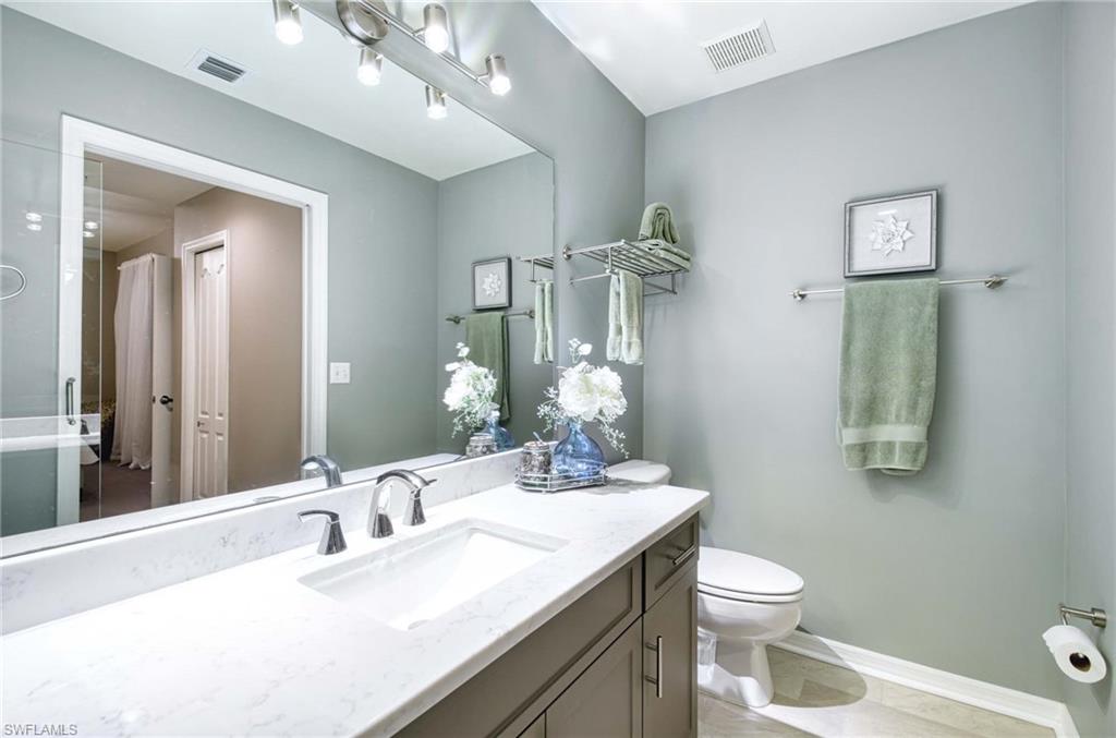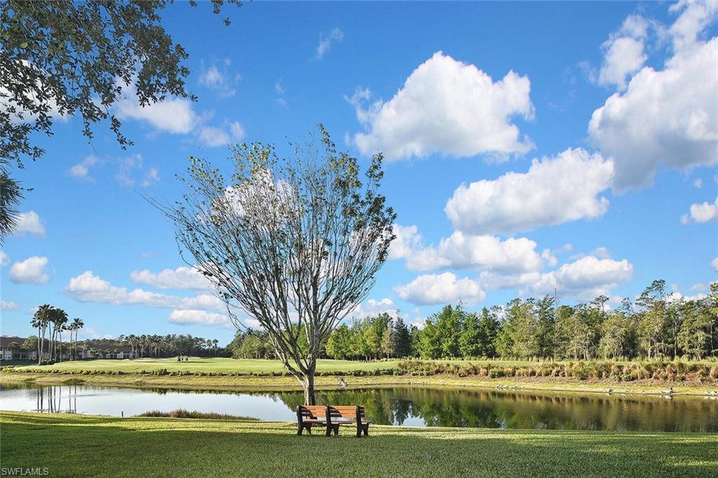 Discover relaxed golf-course living in this beautifully updated first-floor condo that comes with a bundled golf membership. Step out onto the screened lanai and take in peaceful views of the pond and the second hole—perfect for enjoying your morning coffee, unwinding at sunset, or letting your dog out for a stroll with ease thanks to the convenient walkout location. Inside, the home features new luxury vinyl flooring, plantation shutters, updated lighting, quartz countertops, stainless steel LG appliances, and a completely refreshed primary bathroom with quartz dual sinks. Cedar Hammock Golf & Country Club has recently undergone impressive renovations, offering residents access to a spectacular two-story fitness and wellness center, a resort-style pool with indoor/outdoor cabana bar, and an expanded Grill Room patio overlooking the golf course and driving range. Additional amenities include a vibrant tennis program and new bocce courts. This is a fantastic opportunity to own an updated condo in one of Naples’ most desirable bundled golf communities. Opportunities like this don’t come often!