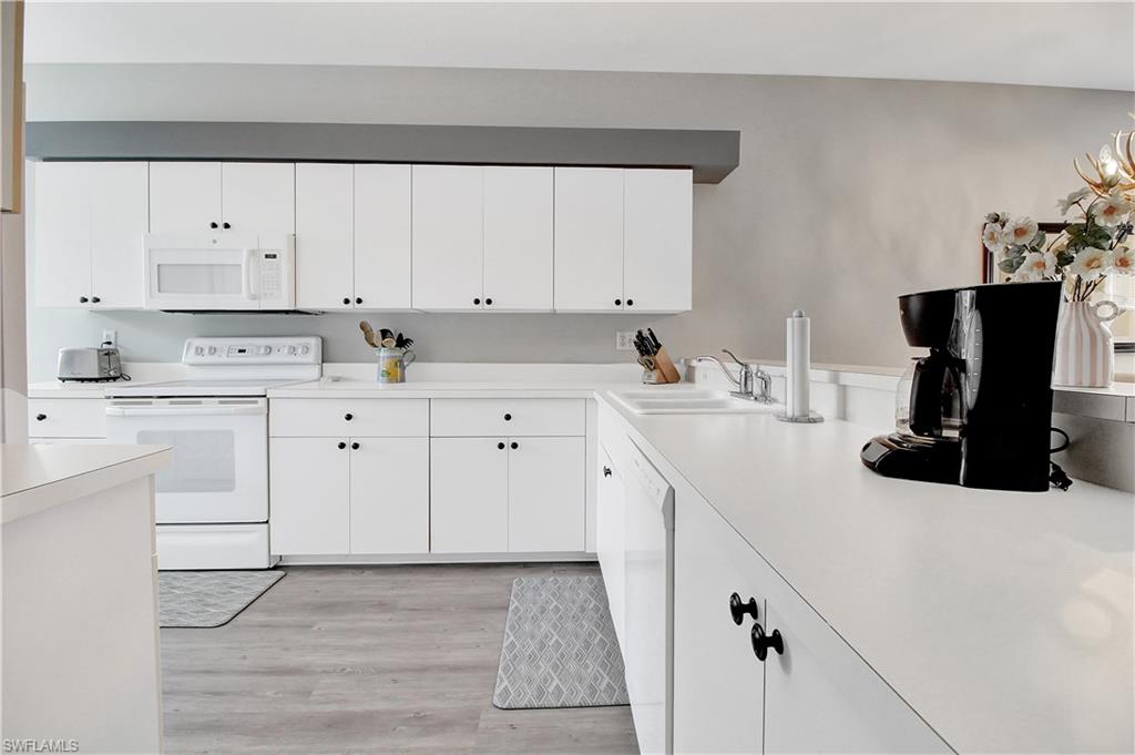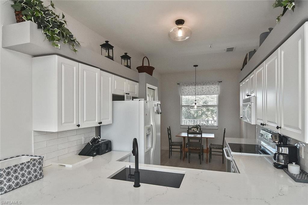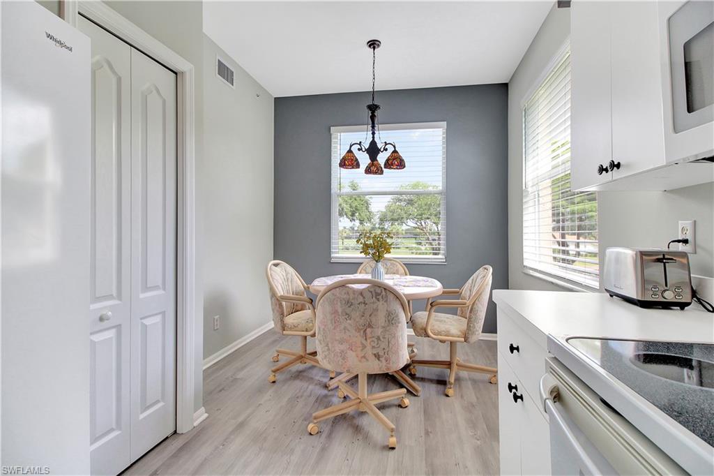If you're looking for stunning golf course and lake views combined with luxury resort-style living, then this one's for you! This beautifully appointed two-bedroom, two-bath condominium in Terrace III at Cedar Hammock offers exactly that, with a floor plan designed for comfort, style and seamless indoor-outdoor living, all complemented by a covered carport space. Step inside to be greeted by tile flooring in the entry, an arched entryway and an abundance of natural light throughout. The main living area and bedrooms feature upgraded vinyl flooring, adding warmth, durability and modern elegance to the home. The open kitchen is a chef's dream featuring white cabinetry, pantry, breakfast bar and a cozy eat-in area. The dining area flows seamlessly into the living room, where glass sliders open to the screened lanai. Enjoy unobstructed views of the golf course and lake, along with sightings of abundant wildlife, while seamlessly blending indoor and outdoor living. The screened lanai is the spot for morning coffee or evening cocktails, surrounded by the tranquil beauty of the landscape. The owner's suite offers a peaceful retreat, featuring upgraded vinyl flooring, a walk-in closet, en-suite bath, and a linen closet. The guest bedroom also features upgraded vinyl flooring and provides comfort and privacy, with a full bath conveniently nearby, including a shower-tub combo. The laundry area is equipped with a top-load washer, front-load dryer and overhead storage. This unit also includes an extra-large storage closet conveniently just across from the unit itself. Cedar Hammock is a bundled golf community featuring a 6,680-yard par 72 course designed by Jed Azinger and Gordon Lewis. Following a $12 million renovation, the newly redesigned community center now offers enhanced amenities, including indoor and outdoor dining, a resort-style pool at the clubhouse and a two-story fitness center with professional trainers. Residents can also enjoy Har-Tru tennis courts, bocce courts, and refine their game on the driving range and putting greens. For added convenience, there are multiple pools available throughout the community, including one right next to the building for easy access. With countless social activities and amenities, there's always something to enjoy. Just minutes from downtown Naples and Marco Island, you'll have easy access to renowned dining, shopping and pristine white-sand beaches. Don’t miss your chance to live the ultimate resort-style lifestyle and schedule your private showing today!
