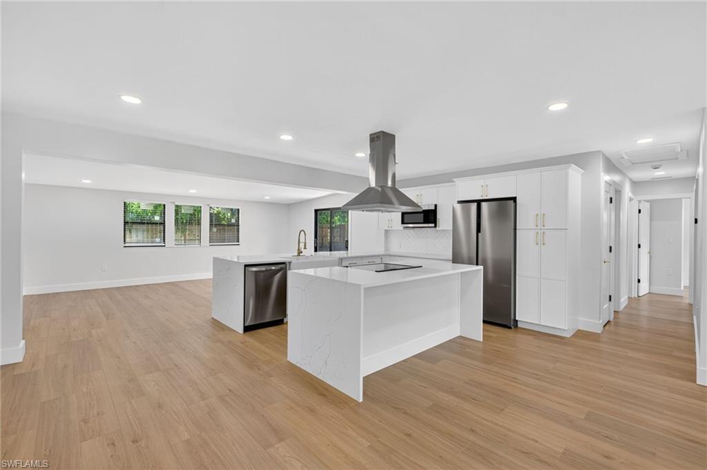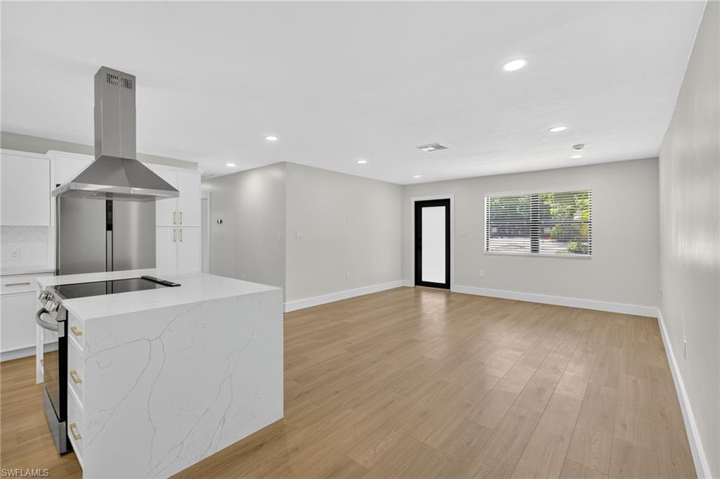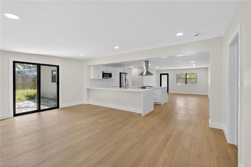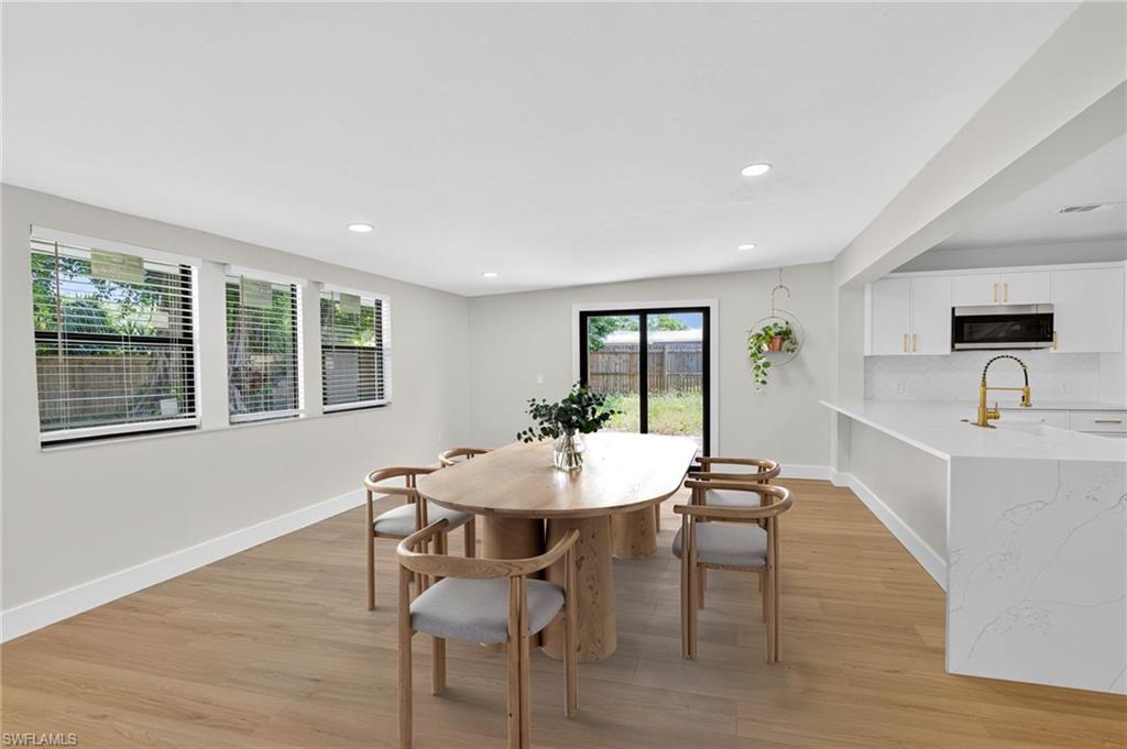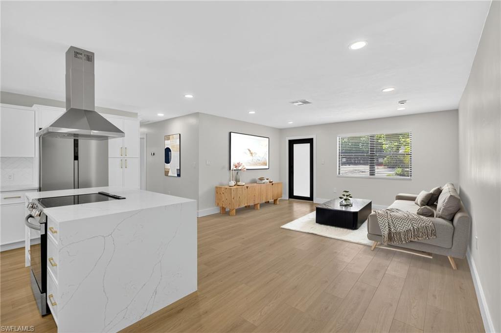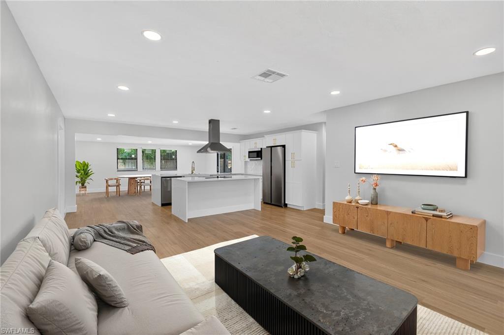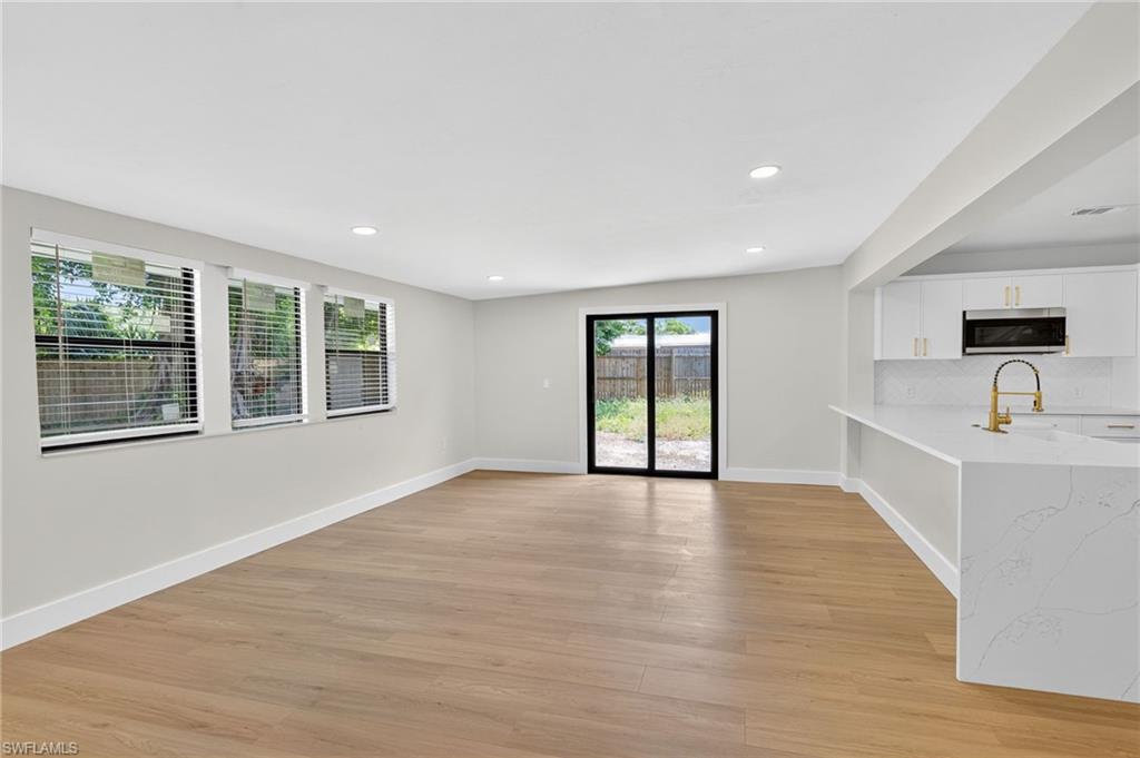 MOTIVATED SELLER WILL CONTRIBUTE UP TO $5,000 TOWARDS CLOSING COSTS! This fully remodeled 3B/1B home has been thoughtfully updated with major improvements. Roof & electrical systems were updated in 2022 & the A/C in 2024. Open concept living space with soaring open beam ceiling & a sleek gourmet kitchen with custom cabinetry, quartz counter-top & a full suite of smart Samsung Appliances for energy efficient living & cooking. Title floors throughout & update bathrooms. The enclosed carport has been transformed into a stylish additional bedroom & bathroom for guest room or a private home office. Situated on a generous 9,148 sq ft lot offering both space & potential for pool or extension of the home. Conveniently located near Naples Beaches, Bayshore Arts District, 5th Ave & Airport. No HOA. Sold AS-IS condition. Cash or Conventional loan.