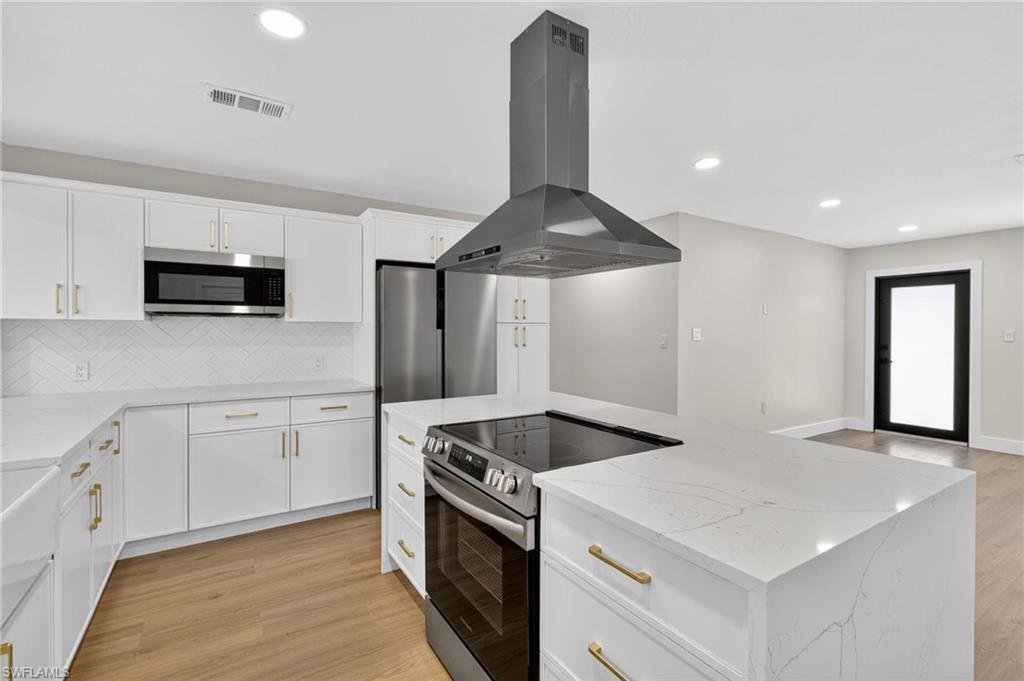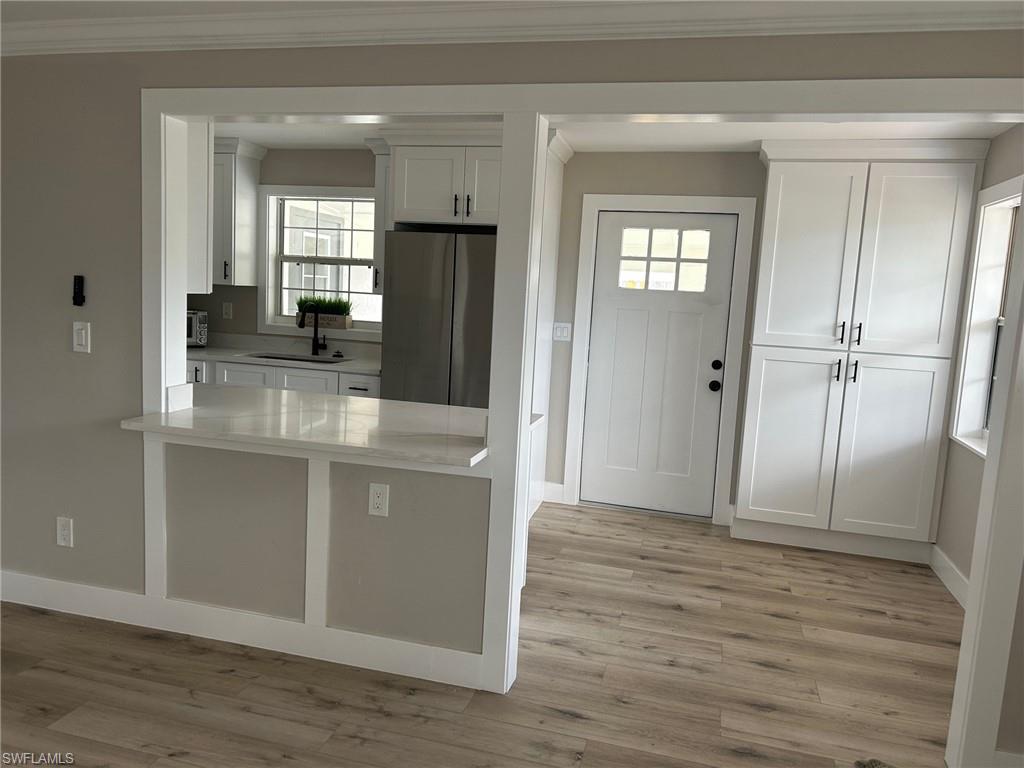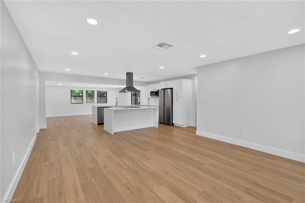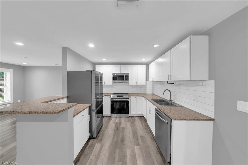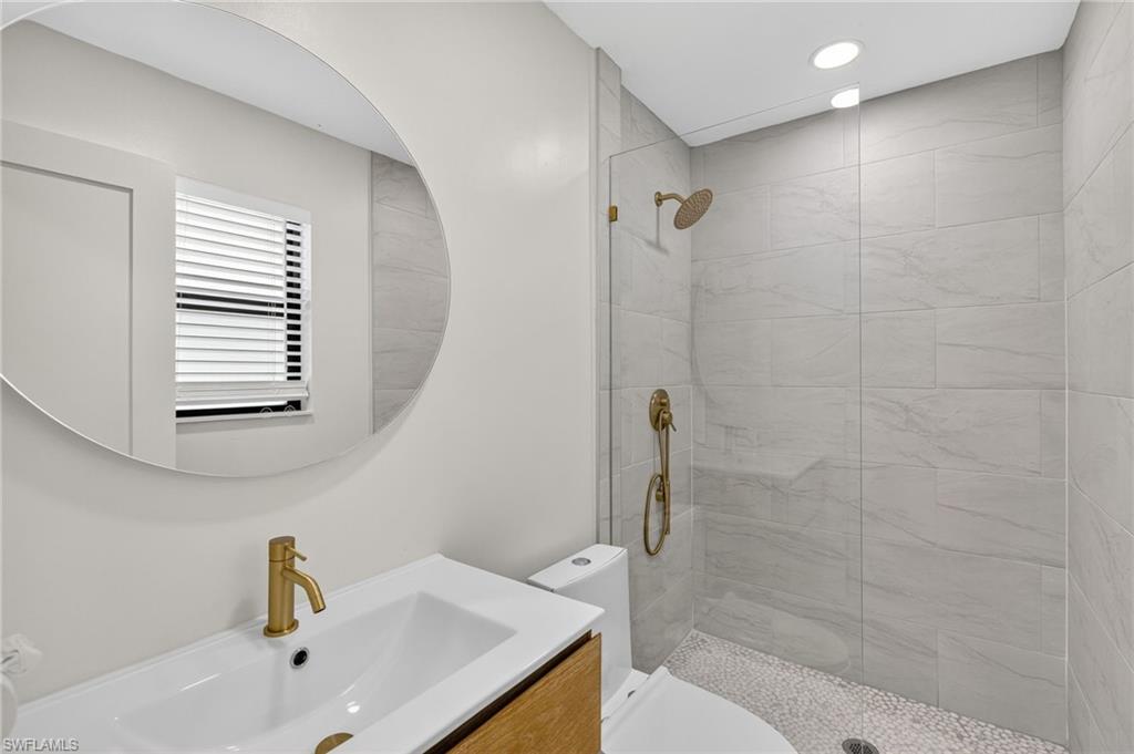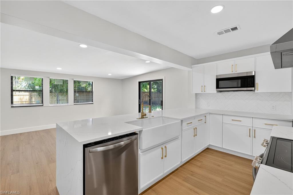 MOTIVATED SELLER WILL CONTRIBUTE UP TO $5,000 TOWARDS CLOSING COSTS! This fully remodeled 3B/1B home has been thoughtfully updated with major improvements. Roof & electrical systems were updated in 2022 & the A/C in 2024. Open concept living space with soaring open beam ceiling & a sleek gourmet kitchen with custom cabinetry, quartz counter-top & a full suite of smart Samsung Appliances for energy efficient living & cooking. Title floors throughout & update bathrooms. The enclosed carport has been transformed into a stylish additional bedroom & bathroom for guest room or a private home office. Situated on a generous 9,148 sq ft lot offering both space & potential for pool or extension of the home. Conveniently located near Naples Beaches, Bayshore Arts District, 5th Ave & Airport. No HOA. Sold AS-IS condition. Cash or Conventional loan.