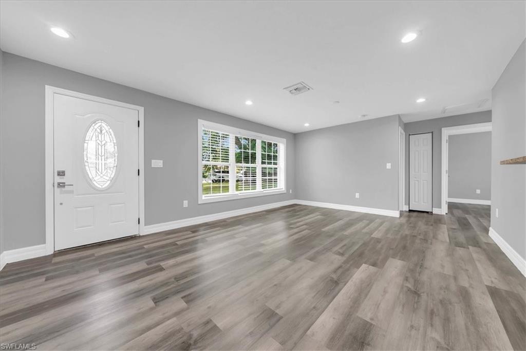 New to the market foreclosed home, recently remodeled, spacious single family home with 1812 sq ft, 2 rooms do not have windows so they were not counted as bedrooms. They would be a den or sewing room. There is a great yard, an attached carport, and a storage shed in the side yard. Great location with a 10 minute drive to beaches and downtown Naples. Water heater new in 2023, roof new in 2023, newer appliances, AC new in 2023, newer window framing and baseboard, but buyers need to verify all as information was supplied by 3rd parties verbally. .