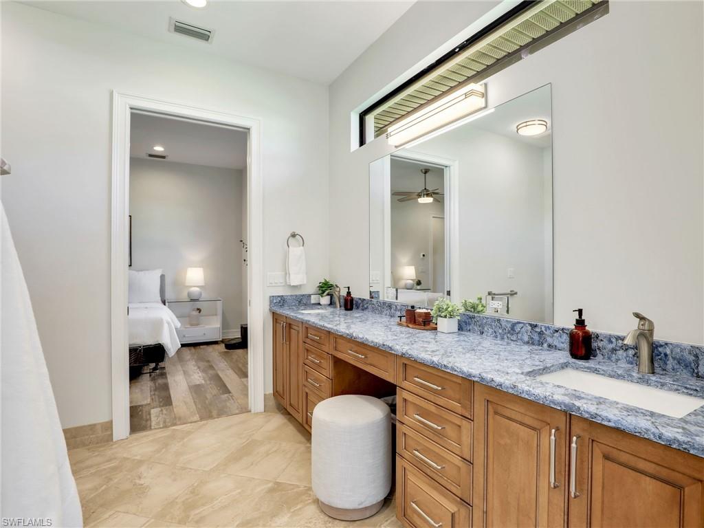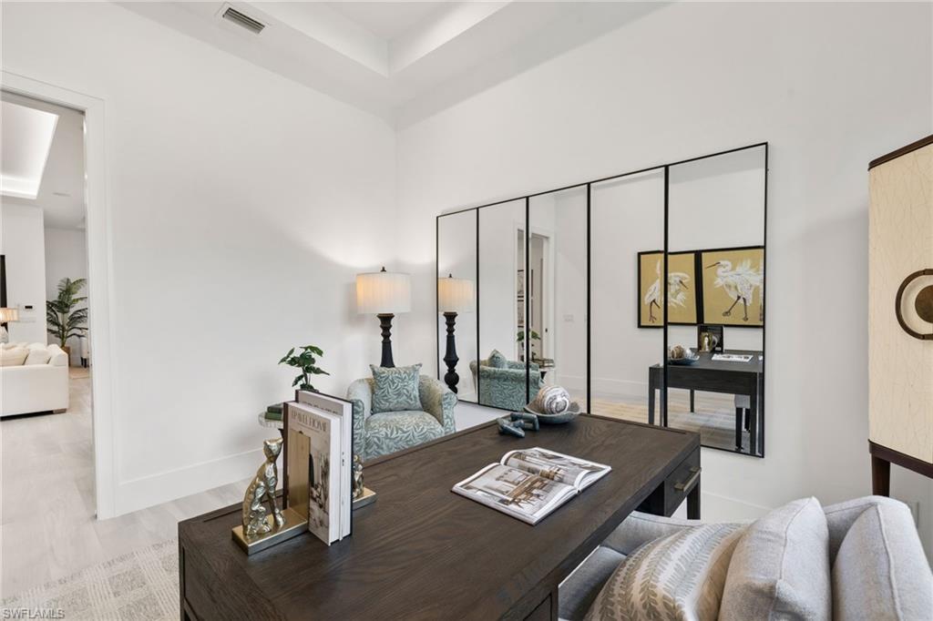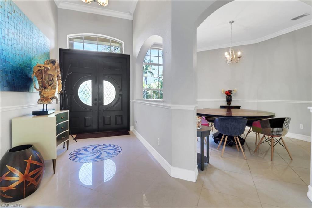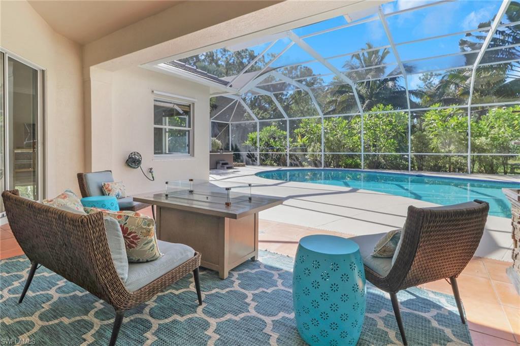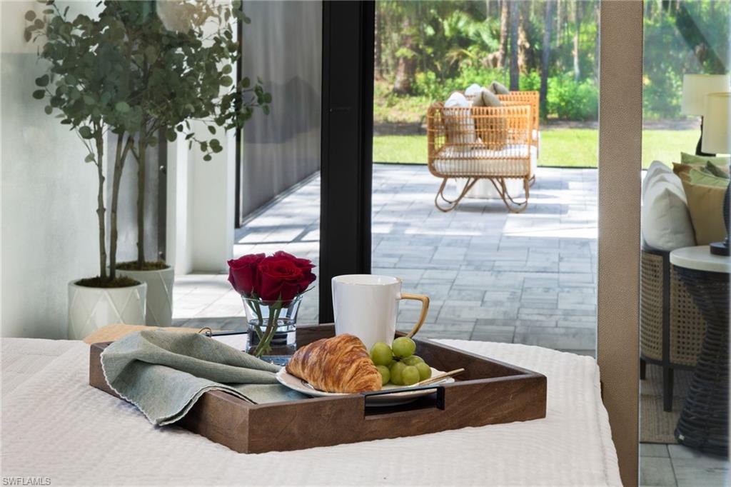 Coastal Modern Retreat on 2.45 Acres—No HOA, Prime Naples Location! Welcome to your private oasis, where modern design meets estate-style living. This 2018-built custom home sits on a beautifully landscaped 2.45-acre lot with a paver driveway and charming front entry. Step through the 9' mahogany front door into a bright, open living space with soaring 15' ceilings and epoxy floors in a marble blend of greys and blues—creating a polished coastal vibe. A stylish wet bar with wine fridge makes entertaining effortless, while the open layout invites flow and function. With 2,616 sq ft under air (3,248 total), this thoughtfully designed 3-bedroom, 3.5-bath home includes a versatile flex room with glass pocket doors and large sliders that disappear into the wall—ideal as an office, gym, den, or guest suite. Just beyond the main living spaces, the elegant primary suite offers tranquil pool views and direct lanai access. Sunlight fills the room, highlighting soft tones, a custom wallpaper accent wall, and upscale finishes that create a relaxing escape. The spa-like primary bath features dual vanities, a freestanding soaking tub, and dual walk-in shower with floor-to-ceiling textured tile. Bedrooms offer 10'+ ceilings, engineered oak flooring, 8' solid wood doors, and privacy. Both guest bedrooms have en-suite bathrooms; one features a steam shower and pool access. The chef-inspired kitchen impresses with quartz countertops, double wall oven, gas cooktop, and WalzCraft cabinetry (42" lowers, 24" uppers). A large island with cabinets on both sides offers added storage, prep space, and casual dining. Entertaining is effortless—open the sliders to the expansive covered lanai with stone tile and cypress ceiling. A huge paver sun deck surrounds the heated pool and spa—perfect for relaxing or hosting. The outdoor kitchen with sink and built-in grill sets the stage for weekend barbecues. Built for long-term peace of mind this home features PGT impact windows, standing seam metal roof, spray foam attic insulation, insulated partition walls, generous attic storage, and whole-house surge protector. A Navien tankless hot water heater, whole-house reverse osmosis (300-gal tank), buried 500-gal propane tank, and dual A/C units offer year-round efficiency. The oversized garage includes epoxy flooring and a 220V outlet for your EV, while a carport adds extra covered parking. A 5-zone irrigation system keeps the grounds thriving. Located in Collier Woods—an in-town Estates area with no HOA—offering privacy, space, and unbeatable convenience near top schools, shopping, dining, and Gulf beaches.