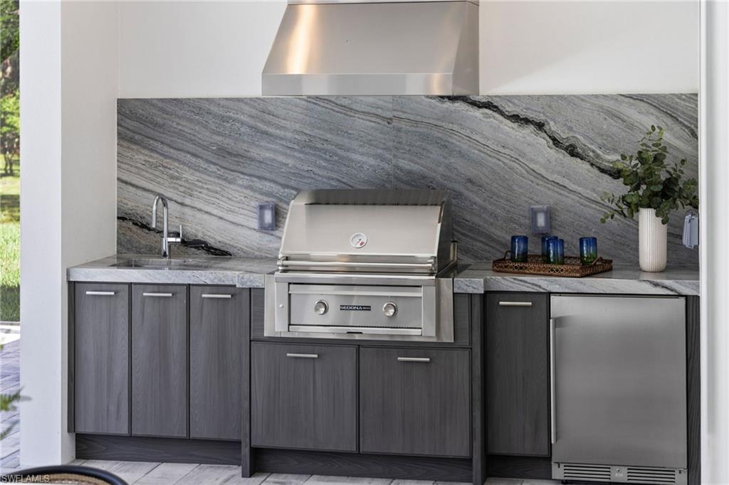 Unmatched in quality, design, and sophistication, in this newly constructed home is a true showpiece. Set on nearly 3 acres of meticulously landscaped grounds and 100% Uplands, the residence was created through the vision of a renowned interior designer and the craftsmanship of Forge Construction, one of the area’s premier custom builders. The expansive property offers endless possibilities—space for a playground, firepit, pickleball or tennis courts, or even an additional garage while maintaining an elegant sense of privacy and tranquility. Inside, the heart of the home is a chef-inspired kitchen featuring Thermador appliances, an induction cooktop, a generous walk-in pantry, and locally crafted custom cabinetry. Countertops of marble, granite, and quartz add timeless refinement, while designer Palecek lighting provides a distinctive finishing touch. Every detail reflects uncompromising quality: PGT aluminum impact windows and sliders, a fiberglass impact-rated front door, insulated garage doors with quiet side-mount openers, an epoxy-finished garage floor, and a durable stucco exterior. Modern conveniences include LED lighting, 400-amp electrical service, a Sonos-integrated A/V system, Ring doorbell, and pre wiring for cameras. Comfort is enhanced with Wi-Fi–controlled HVAC systems with dehumidifiers, a smart water heater with timer and recirculation line. Step outside to experience Florida living at its finest. A fully automated saltwater pool and spa with Pentair lighting invite relaxation, framed by a picture-window screen enclosure. The outdoor bath and shower add convenience, while a summer kitchen-complete with grill, refrigerator, sink, and composite cabinetry—makes entertaining effortless.Blending elegance, innovation, and lifestyle flexibility, this property embodies the very best of modern Florida living. Ideally located in Collier Woods, the property offers the perfect balance of privacy and convenience—just minutes from Naples’ renowned white-sand beaches, world-class golf courses, luxury shopping, and fine dining.