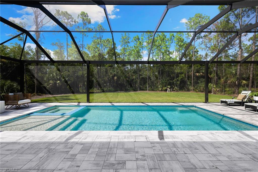 Welcome to this stunning new construction home by Forge Construction, ideally nestled on a serene 3.07 acre lot in an X FLOOD ZONE and 100% Uplands. This property offers tranquility and endless possibilities, with ample space to add a PICKLEBALL court, additional garage, or even a guest cottage or barn. Inside, the home features 4 bedrooms, a dedicated office, 3 bathrooms, and a convenient pool bath. The gourmet kitchen is a chef's dream, equipped with Thermador appliances, including an induction cooktop, custom cabinetry with built-ins, a walk-in pantry, and sleek quartz countertops. The open-concept design seamlessly flows into the generous screened, fully automated saltwater pool and spa area, featuring Pentair state-of-the-art equipment and lighting, an outdoor shower, and a pool bath. Enjoy al fresco dining as you grill in your built-in summer kitchen. The primary suite opens directly to the pool and is complete with spacious walk-in closets and a spa-like bathroom featuring dual vanities, a walk-in shower, and a free-standing tub framed by elegant blue coastal tile.Additional highlights of this home include a comprehensive whole-home reverse osmosis system, a spacious 3-car epoxy-finished garage, PGT aluminum impact windows and sliders, and an advanced audio/video and security system with Sonos integration. The exterior features programmable lighting to enhance the home's curb appeal. Whether you're raising a family or seeking a luxurious retreat, this home, constructed to the latest standards, provides the perfect blend of peace of mind, comfort, craftsmanship, and natural beauty. Conveniently located with easy access to everything...West of 951/Collier Blvd. in between Vanderbilt Beach Rd & Pine Ridge Rd. It's a must-see for discerning buyer who wants room for more and/or peaceful living... all minutes away from the hot spots of Naples!