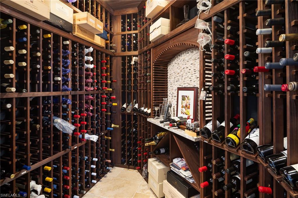 Sophisticated, stylish and sunny retreat describes this beautifully renovated residence on a private cul-de-sac lot with serene southern exposure lakefront setting. This sprawling residence offering over 8,500 square feet in total area is an entertainer's delight with spectacular foyer entrance with 17-foot ceilings, huge windows, climate-controlled 700-bottle wine cooler with beautiful glass door and great room with big views and impact pocket sliding doors leading to the 2,700-square-foot lanai with ample covered and uncovered entertaining area. The sleek cook’s kitchen offers Thermador appliances, six-burner gas stove, double oven, center island, bar area and huge walk-in pantry. Many improvements include four stunning renovated baths, exquisite light fixtures, new roof and screened enclosure in 2018, two new water heaters in 2022, marble floors in living area and guest suite, wood floors in owner’s suite and study, generator, gas fireplace, built-in safe, Sonos sound system and speakers throughout living area, Ring security and summer kitchen with Artisan grill and sink. The large owner’s suite offers beautiful views, two walk-in closets, large bath with private garden setting with inside and outside showers. Huge private guest suite upstairs with large screened and open balcony overlooking the lake. Long driveway leads to the fabulous oversize 927-square-foot garage with built-in cabinets, third bay for golf cart and car lift for the auto collector. Immediate golf membership available with purchase, negotiable furniture package and pristine condition make this home move-in ready. Collier’s Reserve's natural beauty of 450 acres was recognized as the world’s first Audubon Signature Sanctuary community and offers world-class club amenities, championship golf, active tennis, pickleball and bocce, newer fitness center, excellent food with friendly staff, and overall superb location in Naples, less than two miles to Vanderbilt Beach.