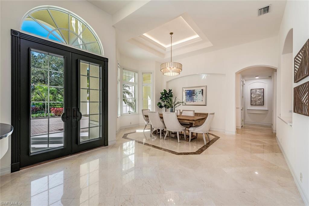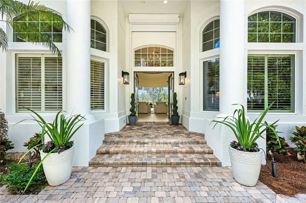 Masterfully designed updated & elegant estate home on a beautifully manicured street in Colliers Reserve! This spacious and light custom-appointed home welcomes you through oversize solid mahogany wood double entry doors into an awe inspiring grand entrance foyer with 22' soaring ceilings, diagonally set marble floor, and magnificent sweeping curved staircase with marble treads and wrought iron railings with solid brass banister. Light and airy interiors feature designer lighting and window treatments, oversize rich crown moldings and millwork, and a chef's dream custom kitchen featuring a Thermador 5 burner gas cook top, wood paneled vent hood with polished and tumbled marble border detail, upper & under cabinet lighting, Thermador thermal wall oven, and exquisite granite countertops with seating at center island. Custom 8ft solid wood doors through out. The primary suite bath feels like an oasis with dual marble vanities and separate frameless walk in shower and Mirabelle Therapy bubbler spa tub. There is ample space for entertaining family and friends with a separate bar area and designer stylish wood accented outdoor covered living space. Luton lighting system throughout with programmable features via a Savant home automation system. A separate office/den features custom raised panel natural finish entry doors complimenting wood paneling and crown moldings with wide plank royal mahogany wood floors. Enjoy the peace & serenity outdoors around an oversized 35x16 sparking lap pool and raised spa with greenery views of preserve & the golf course. Colliers Reserve enjoys designation as an Audubon Signature Sanctuary community spread out on over 450 acres of lush landscaping and natural beauty unmatched in Southwest Florida.