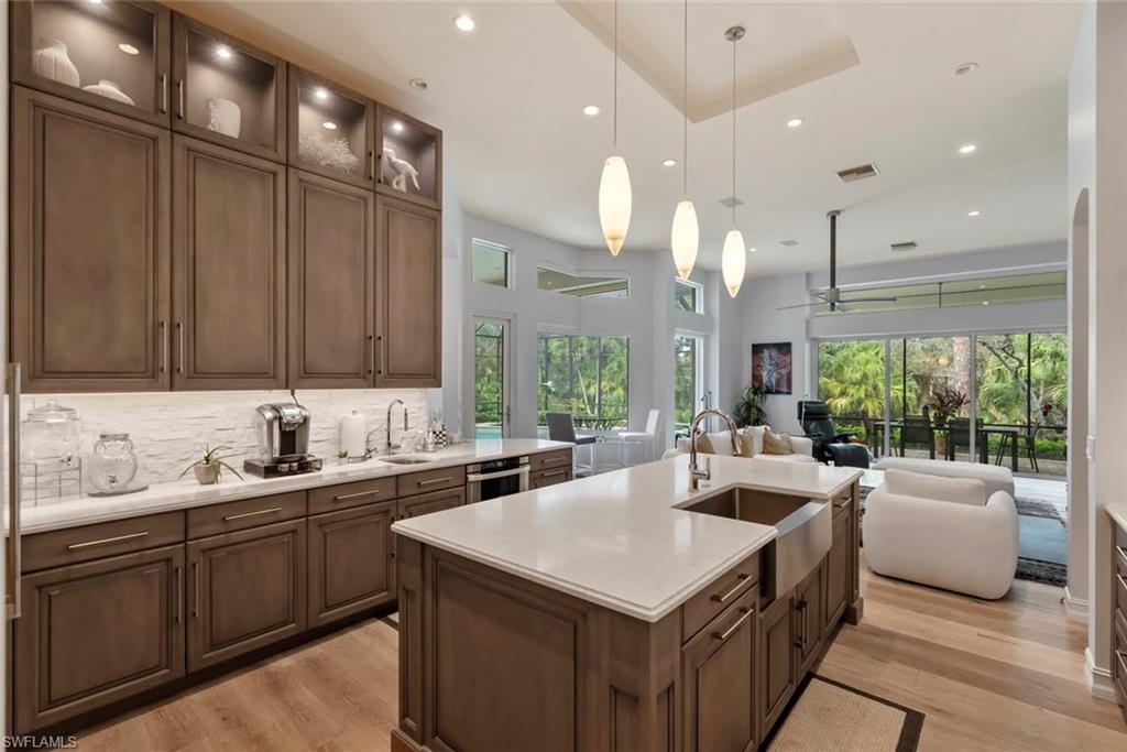 A perfect canvas for luxury living on coveted Gormican Lane, a quiet cul-de-sac street with just 26 private estates in the heart of Collier’s Reserve. Set on a premium out-of-flood-zone lot with sunny southern exposure and panoramic golf vistas, this custom-built residence combines timeless architecture, abundant natural light, and thoughtful design. While the owner’s suite, a guest suite, office, and everyday living spaces comprise over 3,400 square feet of main-floor living, two private guest bedrooms above provide comfort and space for visiting family and friends. Outdoors, an expansive lanai invites effortless entertaining and relaxation, with multiple seating, lounging, and dining areas surrounding a gas-heated 32-foot pool and spa—the perfect backdrop for sun-soaked afternoons and memorable gatherings. At the heart of the home, the remastered chef’s kitchen showcases Sub-Zero and Wolf appliances, including a 6-burner gas cooktop, a butler’s pantry/wet bar with beverage center, and refined finishes like soft-close custom wood cabinetry. The renovated owner’s suite and updated bathrooms elevate everyday luxury, while 15-foot high tray ceilings with crown molding, an electric fireplace and the spacious office with warm wood flooring add touches of sophistication. Additional highlights include a two-car garage plus a separate golf cart bay, extensive built-in cabinetry for storage, a new flat-tile roof, and impact-rated hurricane protection throughout. Enjoy the unmatched lifestyle of Collier’s Reserve, developed by the Collier family as the first Audubon International Sanctuary club, offering world-class golf, tennis, pickleball, fitness & wellness, bocce, even kayaking, as well as a vibrant social calendar across casual and fine dining venues. Welcome home to Arthur Hills’ eco-friendly paradise.