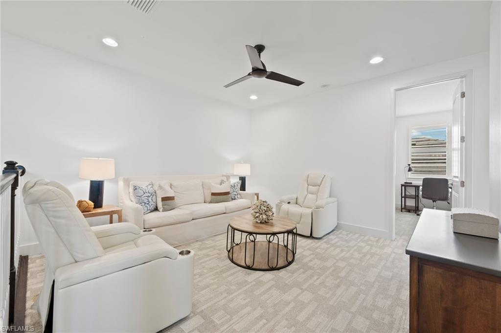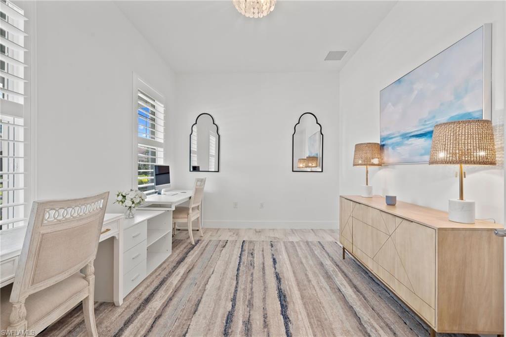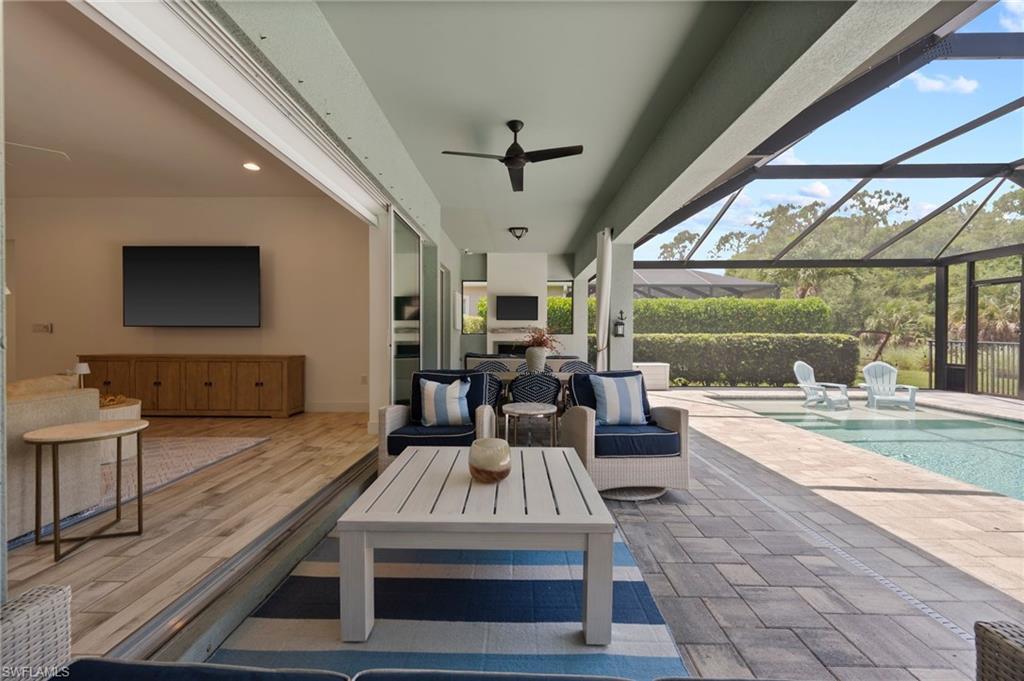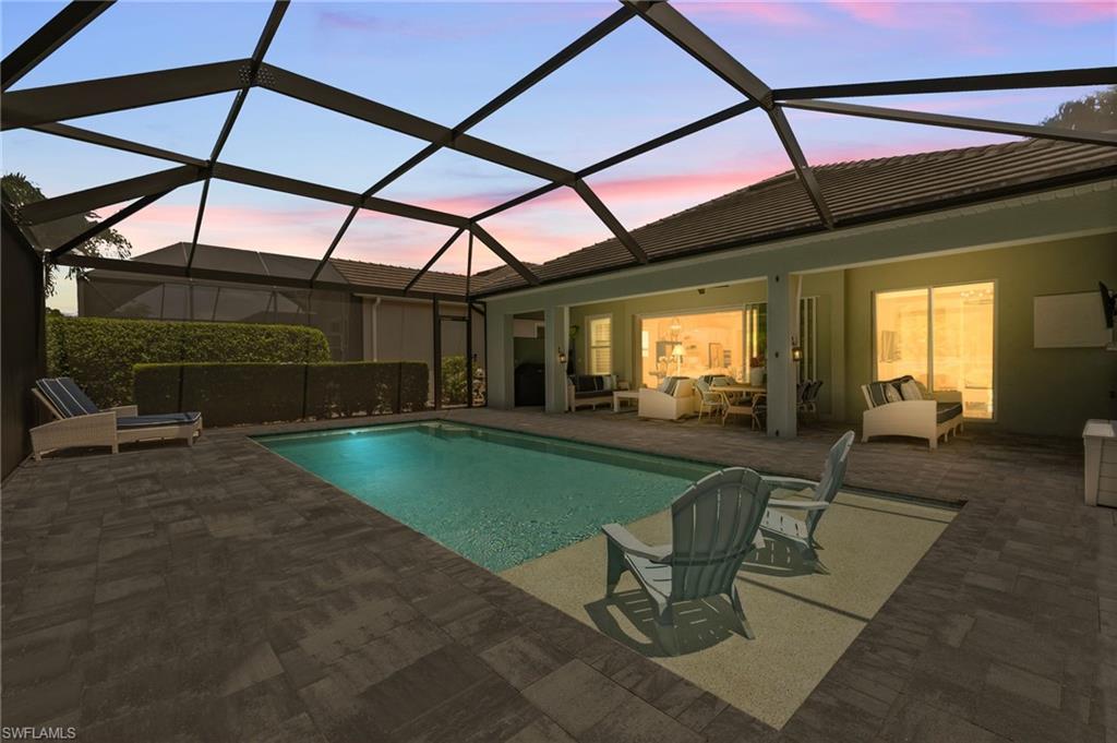 Stunning Turn-Key Home in Desirable Compass Landing – North Naples Fully furnished and offered turn-key (with only a few minor personal exclusions), this immaculately maintained residence exudes style, comfort, and sophistication at every turn. From the moment you enter, you’ll notice the pristine condition, inviting ambiance, and subtle luxury that define this remarkable home. Spanning 2,422 square feet, this 3-bedroom plus office residence showcases thoughtful upgrades both inside and out. Every room has been expertly designed and beautifully finished, featuring designer light fixtures, elegant window treatments, a custom fireplace with built-ins, and an extended screened lanai complete with a relaxing hot tub and breathtaking landscape lighting that transforms the outdoor space into a private retreat. The gourmet kitchen is a showpiece, offering quartz countertops, under-cabinet lighting, a wine cooler, high-end appliances, a deep basin sink, and a spacious walk-in pantry. Details like upgraded hardware and a modern faucet elevate the space even further. The garage impresses with heavy-duty shelving racks and a freshly painted epoxy floor, providing both function and polish. Located in the gated community of Compass Landing, residents enjoy low HOA fees and resort-style amenities including a clubhouse, pool and spa, fitness center, kids’ playground, and a vibrant social calendar — from the annual Christmas Golf Cart Parade to festive Halloween celebrations. Zoned for top-rated Bear Creek Elementary and Gulf Coast High School, this home offers the perfect blend of convenience and community. Enjoy walking distance to Founders Square for dining and entertainment, plus quick access to I-75 for effortless travel. This is an incredible opportunity to own a fully furnished, move-in-ready home in one of North Naples’ most sought-after neighborhoods.