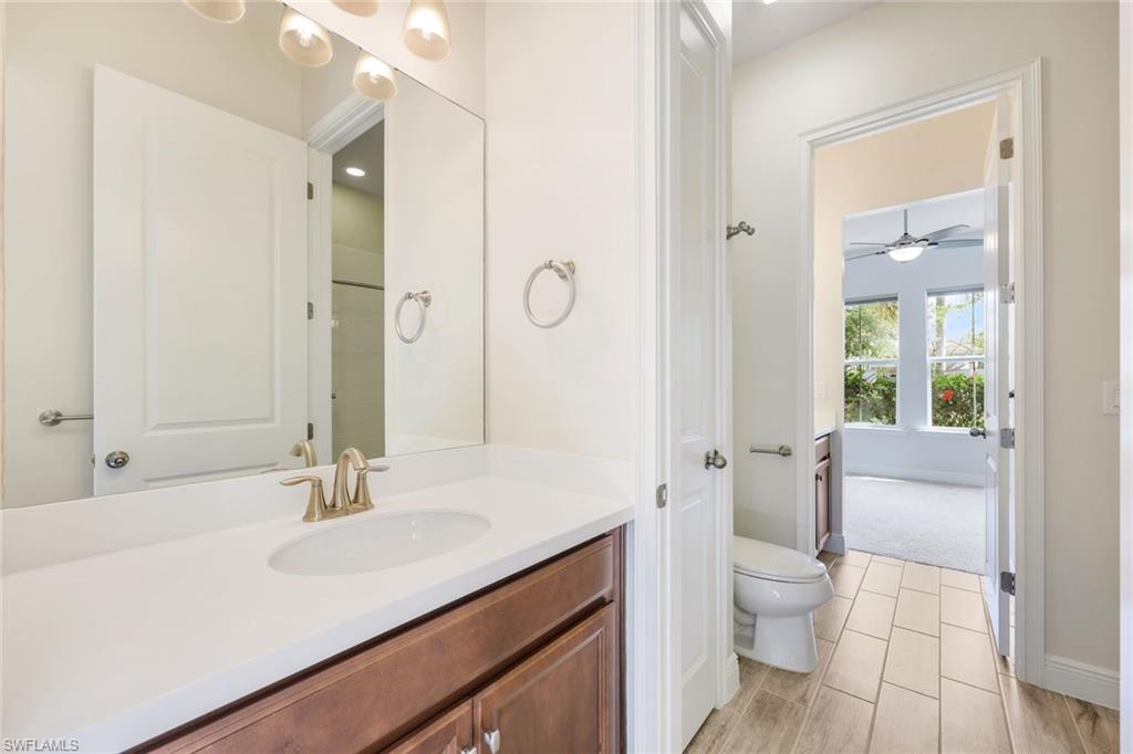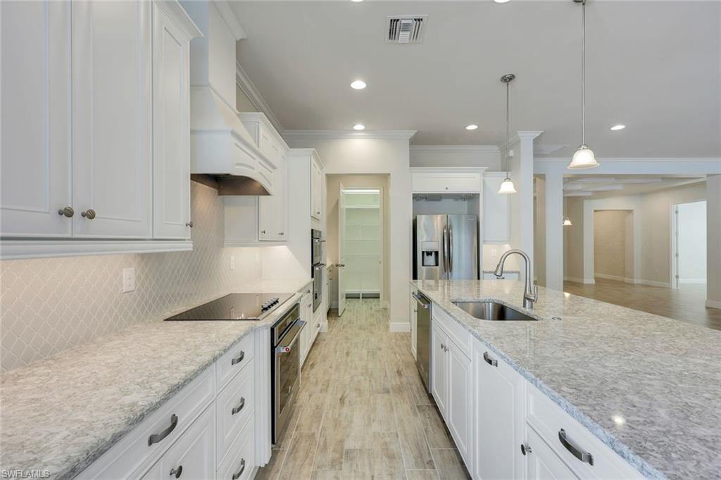 THREE-CAR GARAGE! REFRESHED PRICE! LOWEST PRICED LISTING IN COMPASS LANDING! BRING ALL OFFERS!Compass Landing is a private and secluded gated community, and this home features a DEEP OVERSIZED LOT sitting on .22 acres. This superior single-family home, with a West Indies elevation, is ready for a new homeowner! From the moment you enter this desired Augustine III model, you will appreciate the quality of workmanship and how meticulously maintained it is. The home opens up to coffer/tray ceilings in the foyer and den with double crown molding and recessed lighting, which has also been added to the kitchen, master bedroom, and great room. The gorgeous kitchen has been upgraded with 42" cabinets, island shiplap, quartz counters, a walk-in pantry, and stainless steel Whirlpool appliances. No carpet! You will find plank tiles throughout. The owner’s suite boasts TWO walk-in closets; owner’s bath with dual sinks, quartz counter tops, and oversized walk-in shower. Both guest bedrooms also have walk-in closets, and the bathroom shower has been upgraded. In addition to extra ceiling storage on both sides of the garage, the laundry room has tons of extra storage and a laundry tub. Additional features include upgraded light fixtures and gutters, and downspouts, not part of the builder package. Compass Landing is a private and secluded gated community located in North Naples and minutes to I-75, Mercato, Waterside Shops, Gulf Beaches and zoned with “A” rated Collier County public schools. Residents enjoy a 2,600-sqft amenity center appointed with a resort-style pool, clubhouse, tot lot, and exercise room. Call to schedule your private showing today!