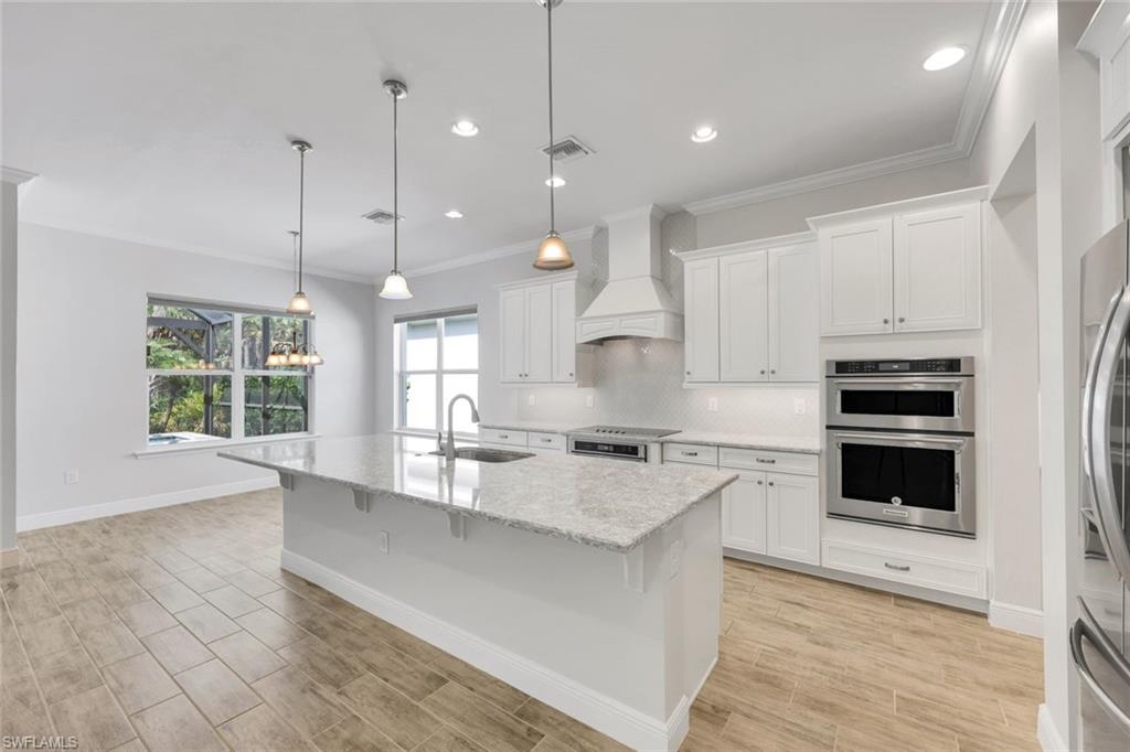 Motivated seller! Seller will give $5,000 to buyer's closing costs. Welcome to 3845 Helmsman Drive in beautiful Naples, Florida. This executive “Pennant Model” home blends West Indies-inspired architecture with luxury living. The 4-bedroom, 3.5-bathroom residence offers a spacious and thoughtfully designed layout, including two en-suite bedrooms, a versatile guest suite, and a luxurious master retreat with a spa-like bathroom featuring an oval soaking tub, oversized glass shower, dual vanities, and a triple-decker walk-in closet. The gourmet kitchen boasts an impressive 11'6" island that seats six, with granite countertops, custom cabinetry, a spacious walk-in pantry, and a generously sized butler’s prep area. The kitchen flows into the expansive great room with a fireplace, and space for a 75” TV above the mantle. The formal dining room, highlighted by a custom chandelier, complements the inviting study with French doors. Throughout the home, modern wood-look plank porcelain tile, crown molding, and custom luxury carpentry finishes elevate the style. Outdoors, enjoy a serene wooded preserve view from the screened lanai, protected by an electric hurricane shutter and complemented by brick-paved patio, perfect for relaxing or entertaining. The home also features accordion shutter throughout all windows. The 3-car epoxy-finished garage offers ample storage with hanging shelves. Located within a secure gated community, this property offers more than a home, it’s a lifestyle. Residents enjoy resort-style amenities including a large pool, spa, clubhouse with social spaces, a fully equipped fitness area, and a playground. The neighborhood is family-friendly and convenient, with safe walkable streets, access to top-rated schools, and proximity to Naples’ finest attractions. Just minutes away are pristine Gulf Coast beaches, championship golf courses, and a variety of fine dining and highly rated restaurants. Whether you’re seeking casual waterfront dining or upscale shopping at Mercato and 5th Avenue South, the area provides endless opportunities for entertainment. For those seeking seasonal flexibility, this property offers an incredible rental opportunity during high season at up to $15,000 per month. The home allows you to move right in and begin enjoying the unmatched Florida lifestyle.