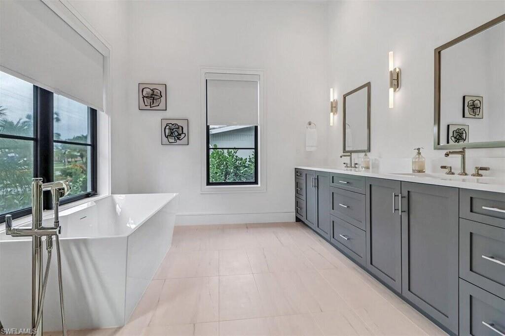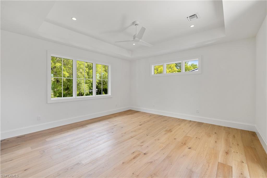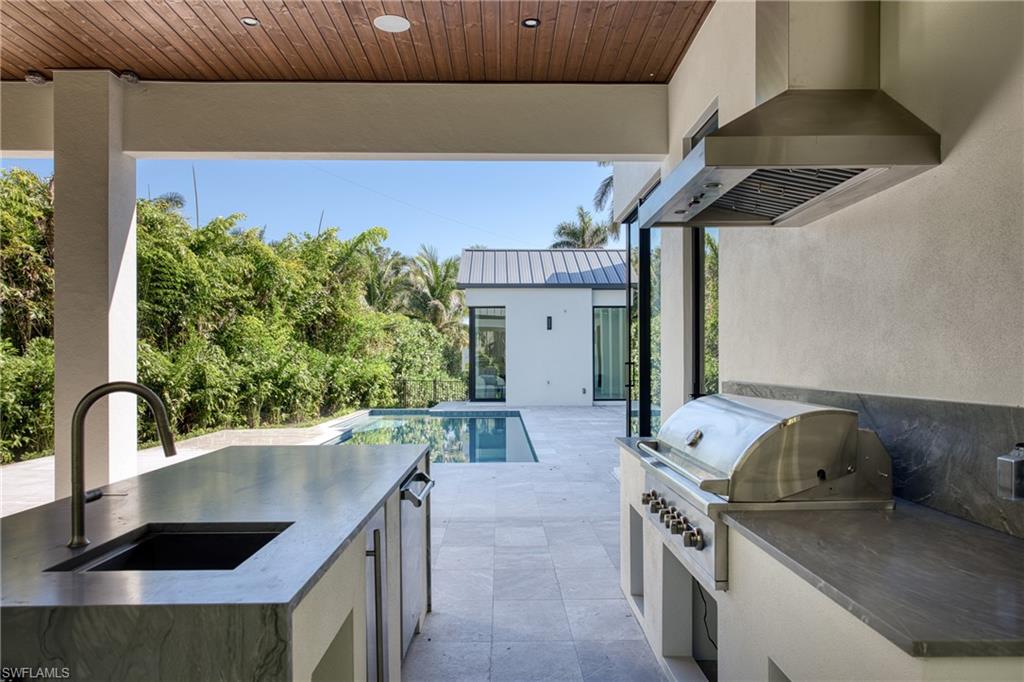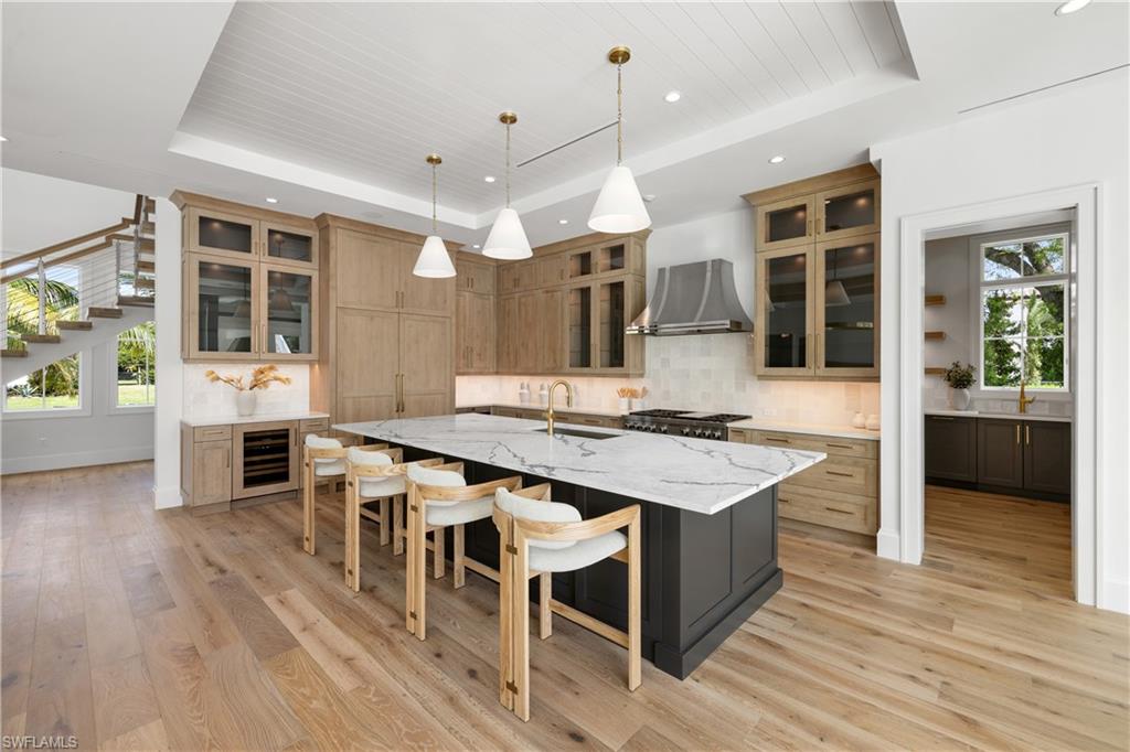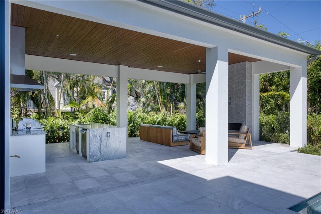 This exquisite 2020 custom-built residence in the heart of Coquina Sands offers 3,730 square feet of thoughtfully designed living space, blending modern elegance with timeless comfort. In one of Naples desired central locations, this home is just a few blocks from the beach, minutes to the new Four Seasons Resort, and moments from fine dining and shops of 5th Avenue South. The home features four spacious en-suite bedrooms plus a den, all centered around an open-concept floor plan that welcomes abundant natural light and effortless flow. Soaring 12-foot ceilings elevate every living space, from the family room to the formal sitting area, separated by a stunning glass-enclosed, temperature-controlled 80-bottle wine cellar. An entertainer’s kitchen offers a double gas range, dual ovens and a hidden butler’s kitchen for seamless hosting. Custom millwork, built-ins and walk-in closets enhance the home’s refined design, while the primary suite serves as a serene retreat with dual vanities and a large walk-in shower. The outdoor living space is equally impressive, featuring a covered lanai with gas grill and sink, a cozy fireplace and a luxurious custom spa. With desired southern exposure, the backyard enjoys sunlight all day, creating a private oasis in the heart of Naples.