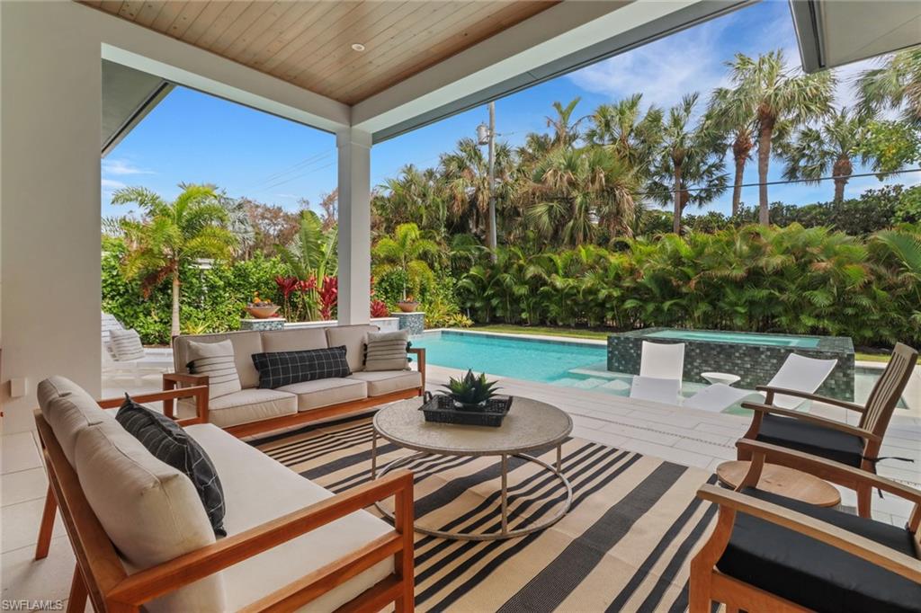 Spectacular new construction single story home located on an estate sized lot in Coquina Sands just 2 blocks to the Gulf of Mexico. Designed by Stofft Cooney Architects and built by Equinox Construction Group this home offers five bedrooms all ensuite and a club room on one level. Exquisite interior finishes selected by Ficarra Design Associates include a chefs inspired kitchen with beautiful custom cabinetry, large island with marble countertop, high end appliance package. Other features include European Oak floors, marble and tile bath. Great room and lanai offers a seamless transition to the amazing outdoor entertaining area that has a summer kitchen, fire place, large pool and spa. Exterior highlights include roll down screens and shutters, 3 car garage with circular paver drive. Quality finishes through out make this home a must see.