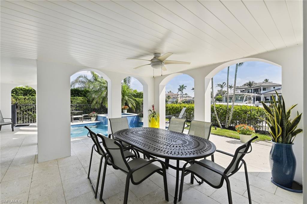 Experience the best of coastal Naples living in this beautifully renovated single-story home, ideally located in Coquina Sands—just a short walk to the beach and the exciting new “Miracle Mile” corridor, home to the Four Seasons, Rosewood, and Naples’ newest luxury destinations. Set on an oversized .37-acre lot, this residence offers exceptional privacy and space rarely found this close to the Gulf. Elevated more than 11 feet above flood level, it blends modern comfort with timeless elegance—fully move-in ready for effortless living. The outdoor spaces define Naples lifestyle: a resort-style pool and spa surrounded by lush landscaping, a private pergola retreat, and a screened outdoor living area complete with a fully equipped summer kitchen—perfect for relaxing or entertaining. Inside, the home’s thoughtful floor plan showcases high-end finishes and abundant natural light. The living room’s rich wood floors and fireplace create a warm, inviting ambiance, while the dining area opens through glass sliders to tranquil garden views. The chef’s kitchen features a large island, solid-surface countertops, gas cooktop, Miele built-in coffee system, wine cooler, and a Kinetico RO water system. The primary suite is a private retreat with a spa-inspired bath and direct access to the outdoor spa deck. Three additional bedrooms, an office (optional fifth bedroom), and a versatile bonus room currently used as a home gym provide plenty of space for family and guests. Recent upgrades ensure peace of mind: a Generac whole-house generator, new pool and spa equipment, air-conditioned garage, dual-system water heater, Sonos sound system, security and camera setup, and more. This home combines luxury, location, and livability in one of Naples’ fastest-growing and most desirable neighborhoods—just moments from the beach, golf, and world-class dining and shopping.