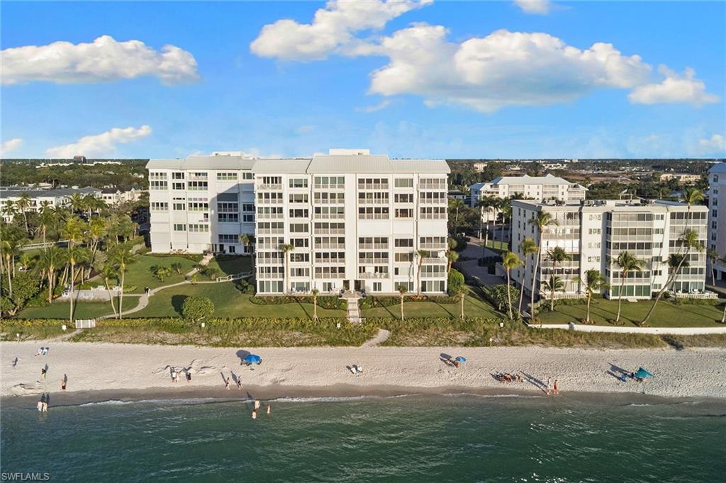 In the heart of Coquina Sands, Laurentians remains one of Naples desirable beachfront addresses. This pristine, low-density community offers just 32 residences across two buildings with only two units per floor, ensuring abundant natural light, privacy and tranquil living. Beautifully maintained, this classic Naples building has undergone all major improvements, allowing owners to enjoy a worry-free beachfront lifestyle. Amenities include under-building garage parking, a 100-square-foot private storage room and a well-managed association that prioritizes maintenance and quiet enjoyment. Directly on the Gulf, this second-floor residence showcases impressive panoramic views and endless western sunsets from the kitchen, dining room, living room, and primary suite through expansive picture windows and sliding glass doors. The spacious primary suite features a beachfront sitting area with northern and western exposure. Three additional bedrooms, one with its covered balcony, provide exceptional flexibility and privacy for family and guests. Just minutes from fine dining, shopping, and cultural experiences along Fifth Avenue South and Third Street South, Laurentians places you in the heart of Naples coastal lifestyle.