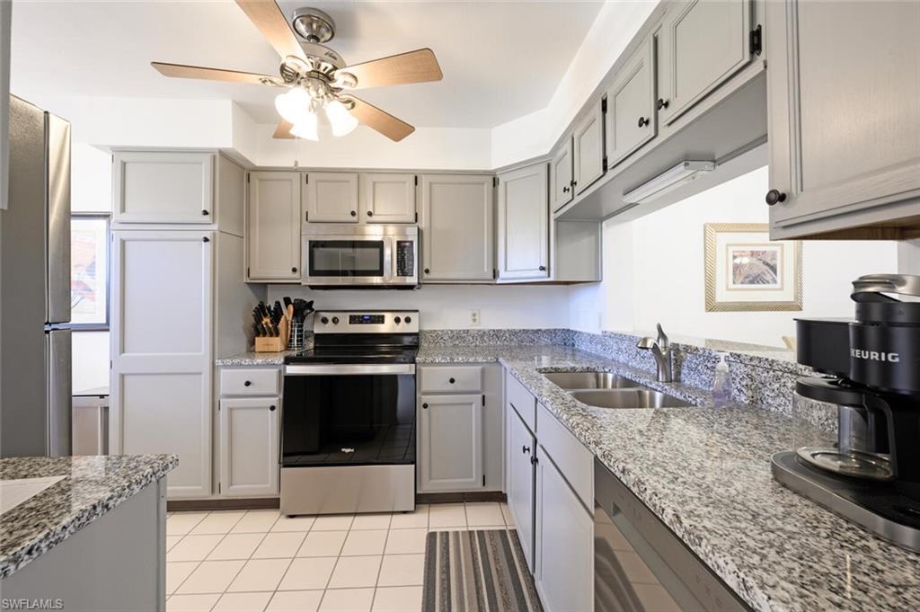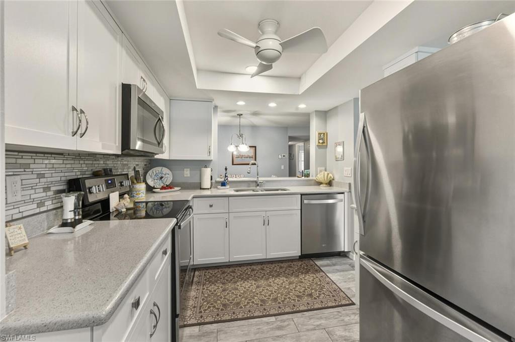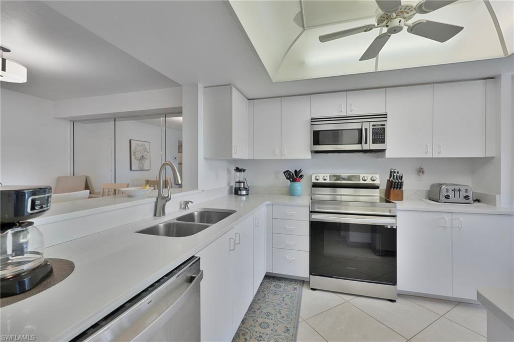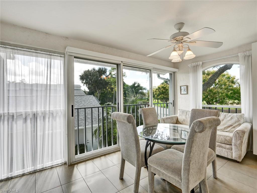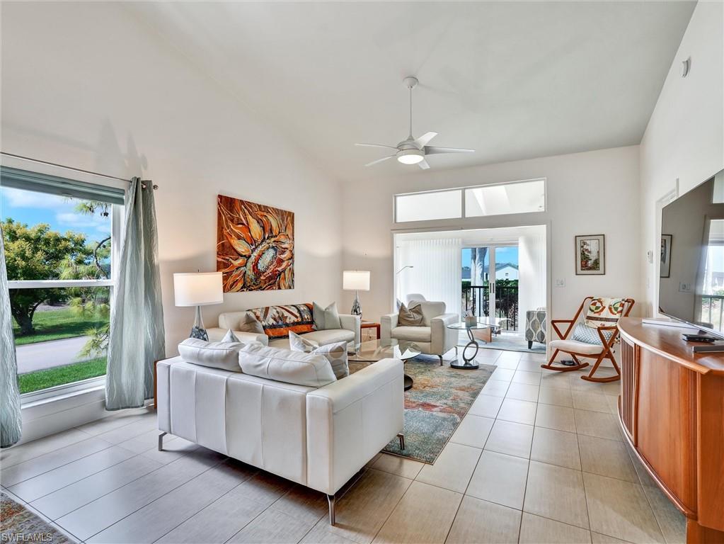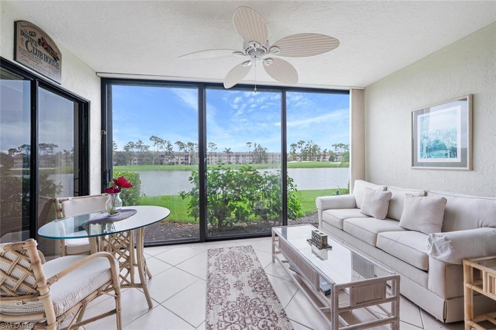 Here it is the one you've been waiting for a second floor end unit upgraded golfing condo you will simply love. Updated open concept kitchen sure to win over any Buyer. Contemporary design combined with tasteful decor makes this one the one to see! Tiled throughout living area. Imagine yourself with a happy hour on your screened in lanai and this breathtaking view overlooking water to the golf course. All of this in the newly refurbished Countryside Golf and Country Club Resort!Come see what everyone is talking about with the brand new resort style pool and the completely refurbished indoor and outdoor dining, clubhouse, an Arthur Hills golf course, driving range and putting green, fitness center with classes, tennis complex, pickleball. Countryside's 2025 renovations have won over the potential new Buyers in one of Naples friendliest golf resort communities. Close to the clubhouse and amenities. Fitness center in the morning, followed by a round of golf and perhaps the beach for the afternoon, Naples and Countryside offer it all. You've earned the Naples lifestyle, live it well in Countryside Golf and Country Club.