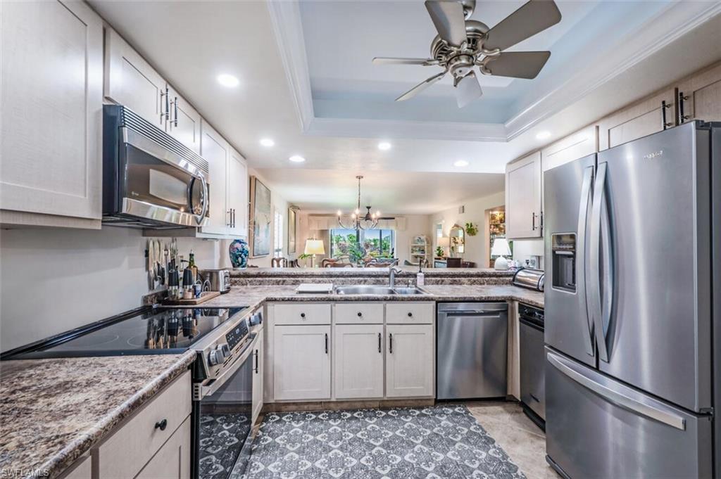 Enjoy the Beauty and Tranquility of This Turnkey Veranda in Countryside Golf and Country Club Nestled on the 12th hole, this stunning veranda offers a peaceful retreat with beautiful views. The home is just steps away from the recently completed, state-of-the-art clubhouse, which includes a new outdoor pool bar and pool, providing the perfect spot to relax. The spacious, open-concept layout includes two bedrooms, a den that can easily be converted into a third bedroom, and a bright, welcoming living space ideal for entertaining. The kitchen features granite countertops, and the unit has been updated with new flooring throughout the common area, fresh paint, and a newer dishwasher. The roof is roughly four years old, and the home includes a detached one-car garage for added convenience. Additionally, you’re just steps away from a gorgeous inground pool and tennis court. With the special 10,000 assessment already paid, this home is not only a fantastic place to live but is also ideally located just a short distance from the world-renowned 5th Avenue, where you can enjoy dining, shopping, and entertainment. Whether you’re relaxing at home or exploring the vibrant surroundings, this is the perfect place to create new memories.