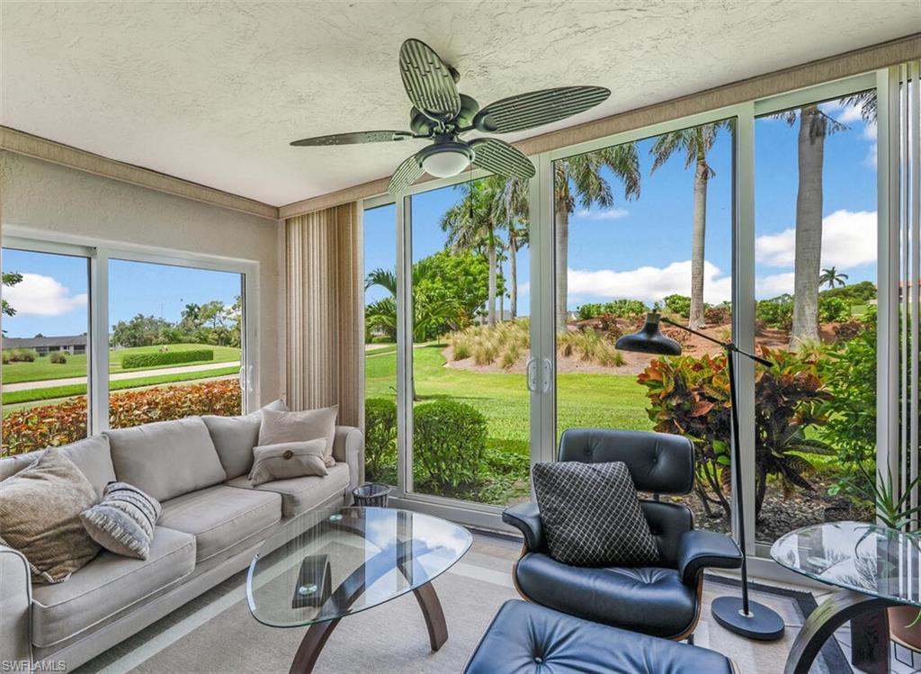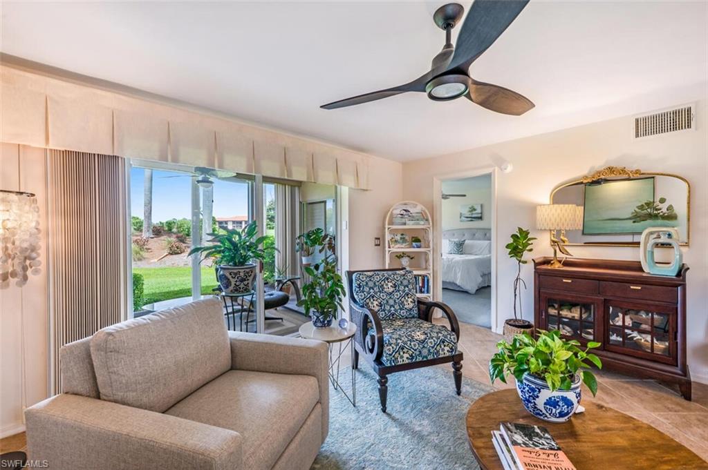 Come and see what they're all talking about ! Here you go a full golf membership first floor fully furnished two bedroom , two bath impeccable condo with a fabulous view you will truly appreciate ! Just move in and enjoy this beautifully decorated condo. New paint and carpeting. Newer stainless steel appliances in kitchen. New hot water heater. One minute walk to the newly renovated clubhouse ( July 2025) and resort style pool as well as golf . No need for a second car the amenities are so close by to enjoy. Fantastic 18 hole golf , driving range, beautifully brand new renovated indoor and now outdoor dining, brand new resort style pool with bar area and food, tennis complex, attended fitness center with classes, bocce ball and pickle ball ! Countryside has it all now a completely renovated resort style community with reasonable fees. ! All of this and so close to downtown Naples and the beaches . Fitness center in the morning followed by golf before heading to the beach for the afternoon , then back to the club for dinner with friends . You will love the Naples lifestyle in one of Naples friendliest full golf and resort communities Countryside!