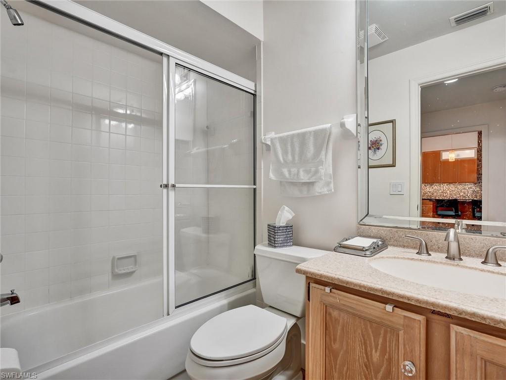 This beautifully updated first-floor 2-bedroom, 2-bath veranda with a 1-car garage offers the perfect blend of comfort, style, and resort-style amenities. Enjoy a full golf membership to one of Naples’ most desirable bundled golf communities, complete with a championship course, newly renovated clubhouse, fitness center, tennis courts, and resort-style pool with poolside food and beverage service. Inside, you’ll find a thoughtfully designed split-bedroom floor plan with custom cabinetry, abundant storage, and recently remodeled kitchen and bathrooms. The home features a new AC unit (2024) and is wired for a generator hookup, offering peace of mind during storm season. Relax and unwind in the glass-enclosed rear lanai overlooking the 7th fairway and serene lake views, or take in the evening sunsets from the front lanai. The community pool is just steps away, making every day feel like a vacation. Experience the best of Naples living — golf, sunshine, and community — all within the gated comfort of Countryside Golf & Country Club.