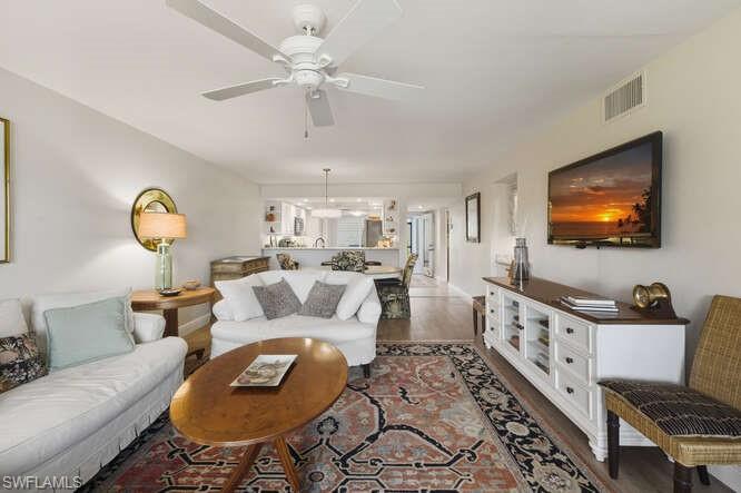 Discover a rare gem in the prestigious, gated community of Countryside. This top-floor end-unit condo exceeds expectations with its meticulously maintained, turn-key furnished 2-bedroom, 2-bath layout, a coveted deeded carport, and Social Membership. Recent upgrades include refreshed bathrooms, luxurious vinyl plank flooring, updated fans and fixtures, and stainless steel appliances. Enjoy an 18-hole championship golf course, along with access to outstanding amenities: onsite dining, a state-of-the-art fitness center, tennis and pickleball courts, pool, spa, and bocce courts. A major clubhouse renovation soon to be completed, further enhancing the lifestyle experience. With the clubhouse assessment already paid, this unit offers exceptional value—just moments from Naples' upscale boutiques, fine dining, and pristine Gulf beaches.