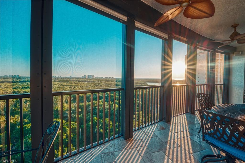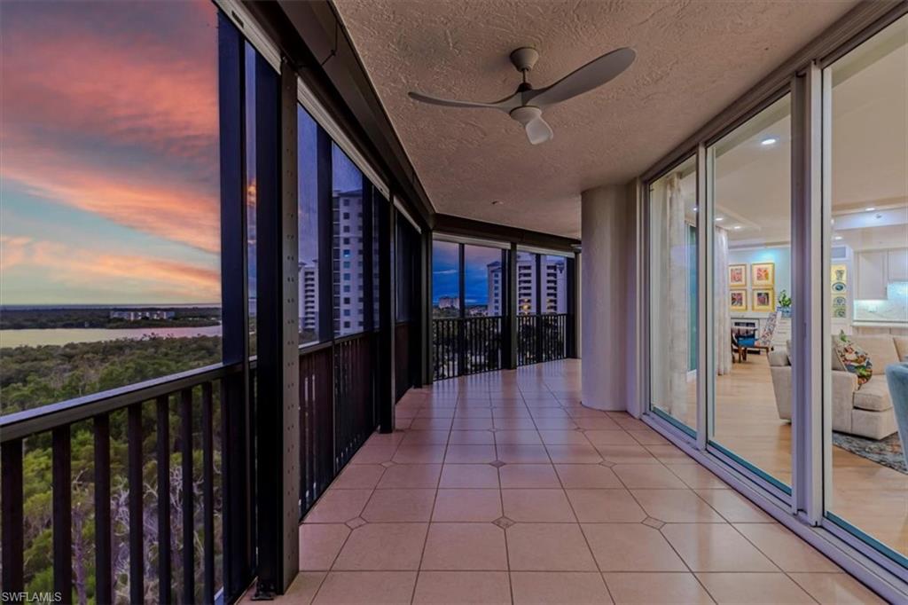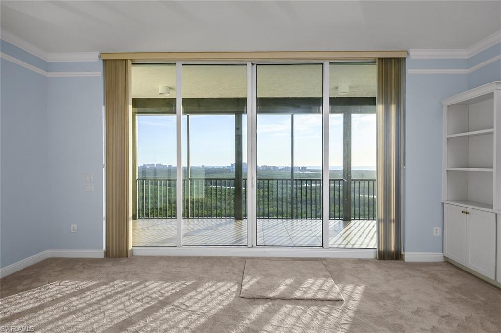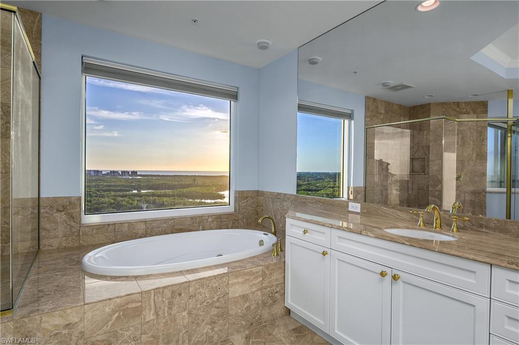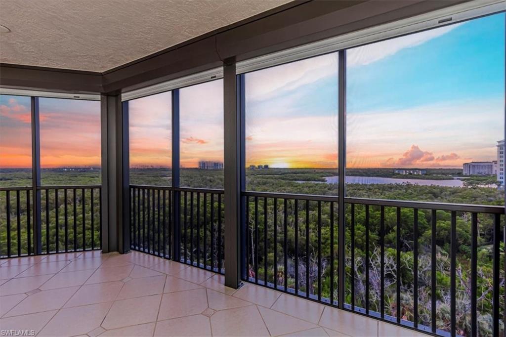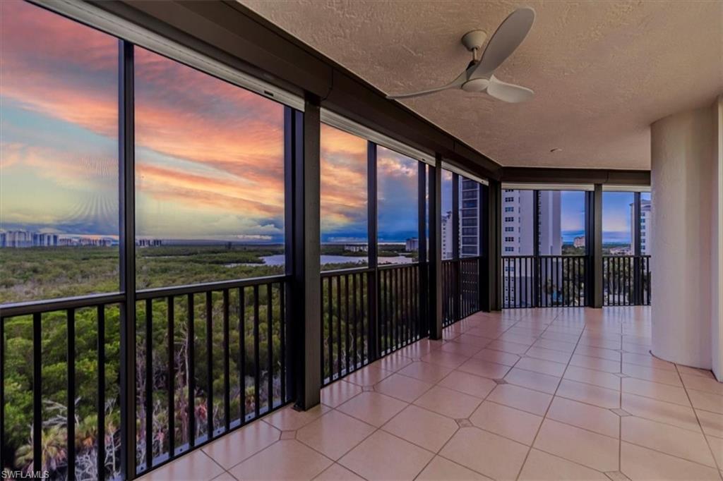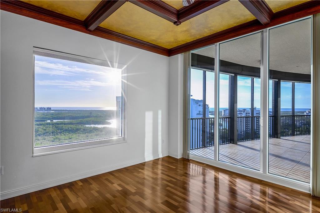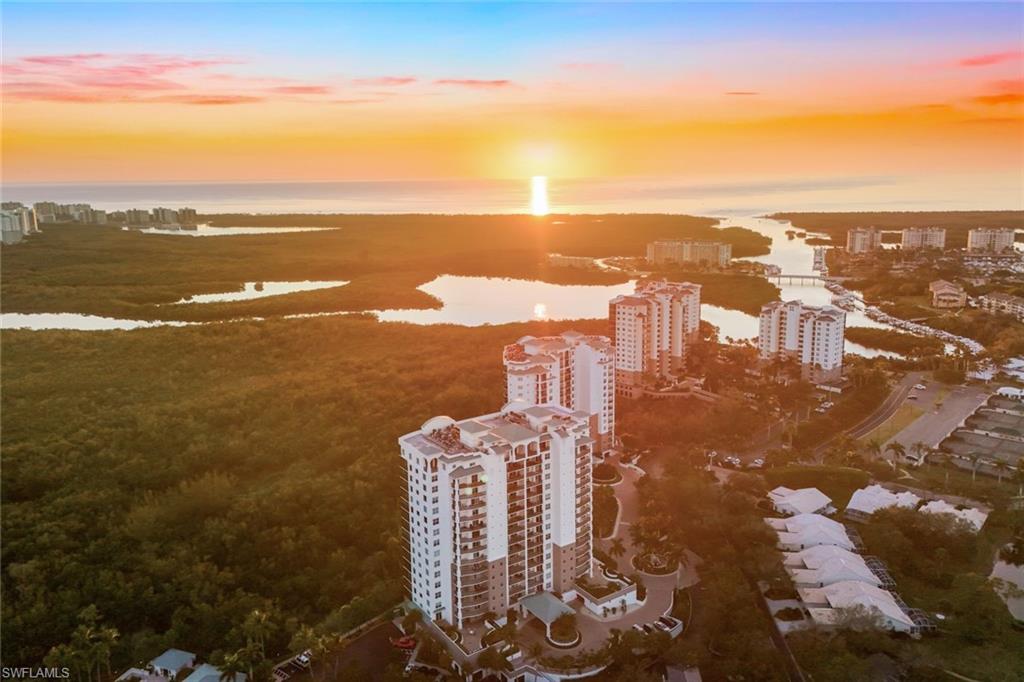 PRIVATE ENCLOSED 2-CAR HUMIDITY CONTROLLED UNDER BUILDING GARAGE WITH LARGE HUMIDITY CONTROLLED STORAGE UNIT INSIDE!! Both have dehumidification to keep everything cool and dry all year long! Fantastic sunrise to sunset UNOBSTRUCTED views from this absolutely stunning 17th floor "MINI-PENTHOUSE" with 10'+ high ceilings! This spacious 3BR+Den/3BA turnkey furnished residence with incredible panoramic views of the Gulf, Bay, preserve and Naples skyline features soaring ceilings, crown molding, an island kitchen with custom cabinetry, granite counters and newer high-end stainless steel appliances including built-in Sub-Zero refrigerator/freezer, custom built-in closets in Primary BR, marble Primary Bath, surround sound in primary bedroom and living room, hurricane shutters, whole house water purification system and so much more! Whole home leak detection system with sensors throughout all wet areas in the unit (as well as in the entire building) that will shut main water valve and alert the Manager if it detects a leak. A/C’s replaced in 2022 and hot water heater replaced in 2025. Exclusive membership to the PRIVATE CALYPSO CLUB is included with a gorgeous resort-style tropical pool, spa, state-of-the-art fitness center, 2 luxurious guest suites, outdoor pavilion with fireplace, BBQ grills and a beautiful social room with wet bar, fireplace and media center. Also included is a transferable membership to the fabulous Tarpon Cove Beach & Racquet Club with casual and fine dining, 6 Har-Tru tennis courts (lighted for night play!), fully equipped fitness center, island-style pool with tiki bar, bocce courts and an hourly private boat shuttle to the beach. Boat docks available for lease/purchase.