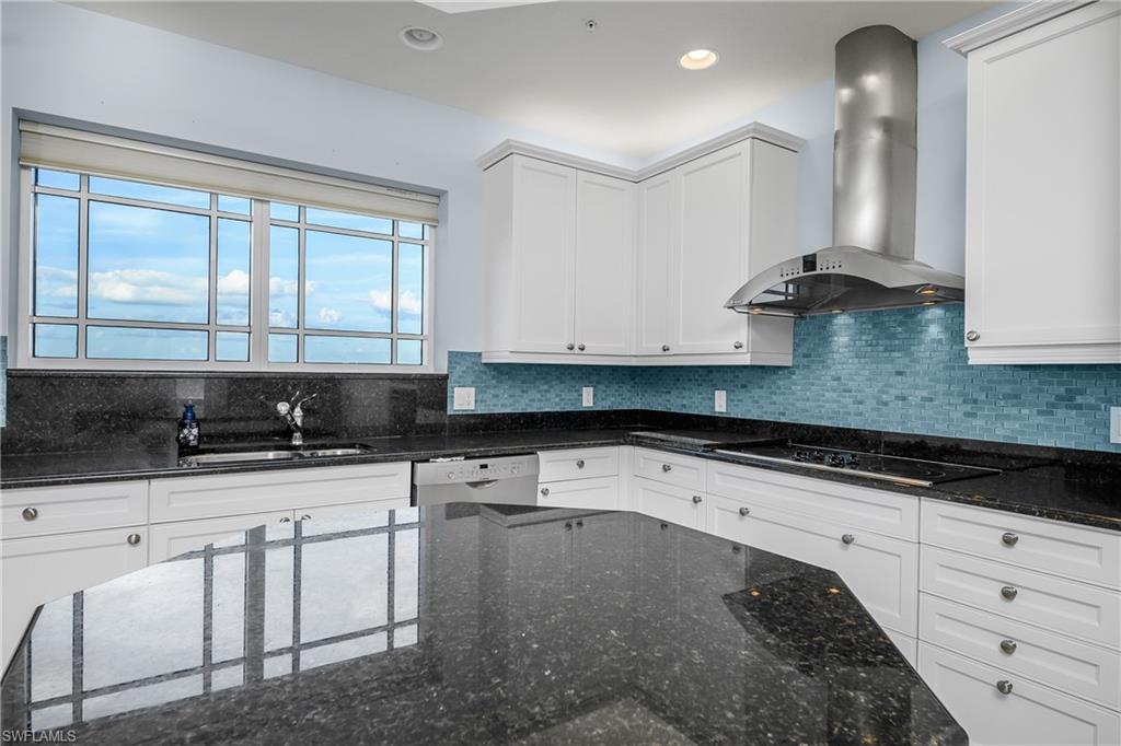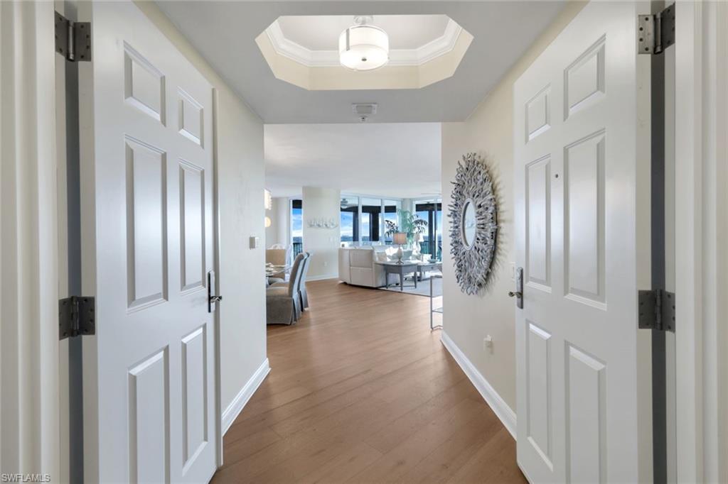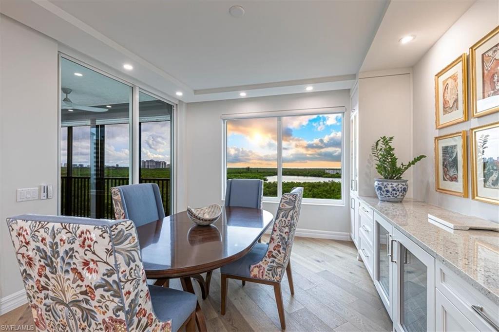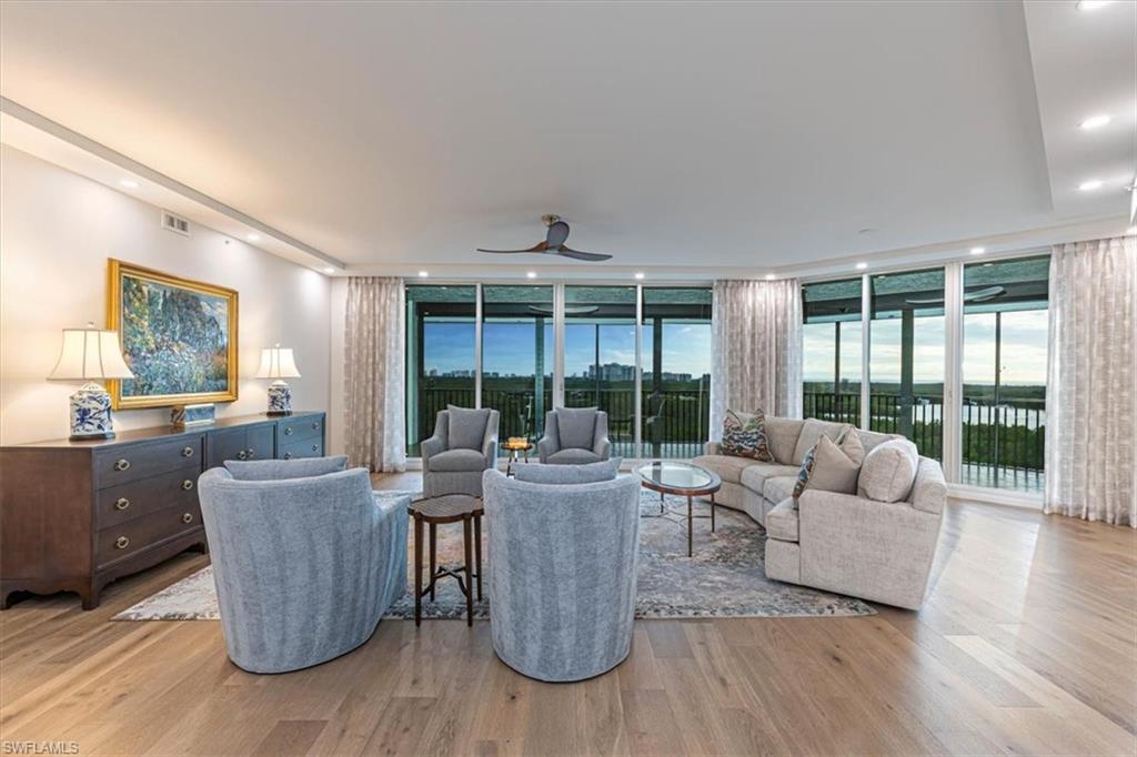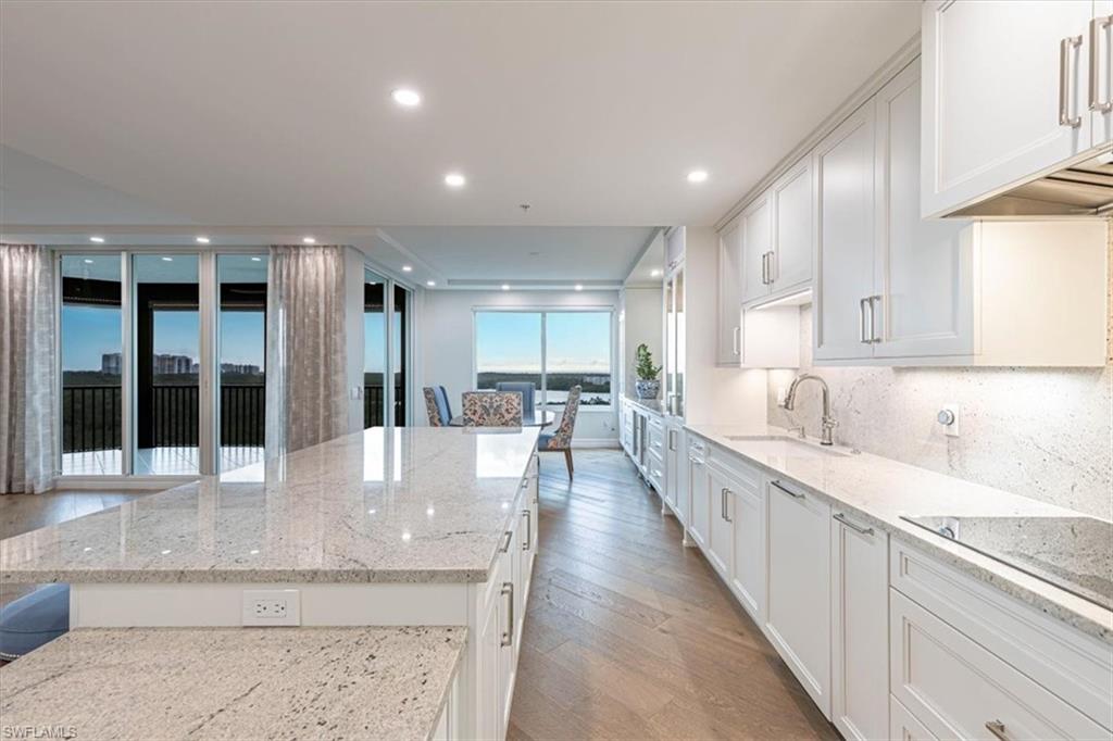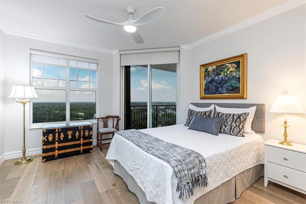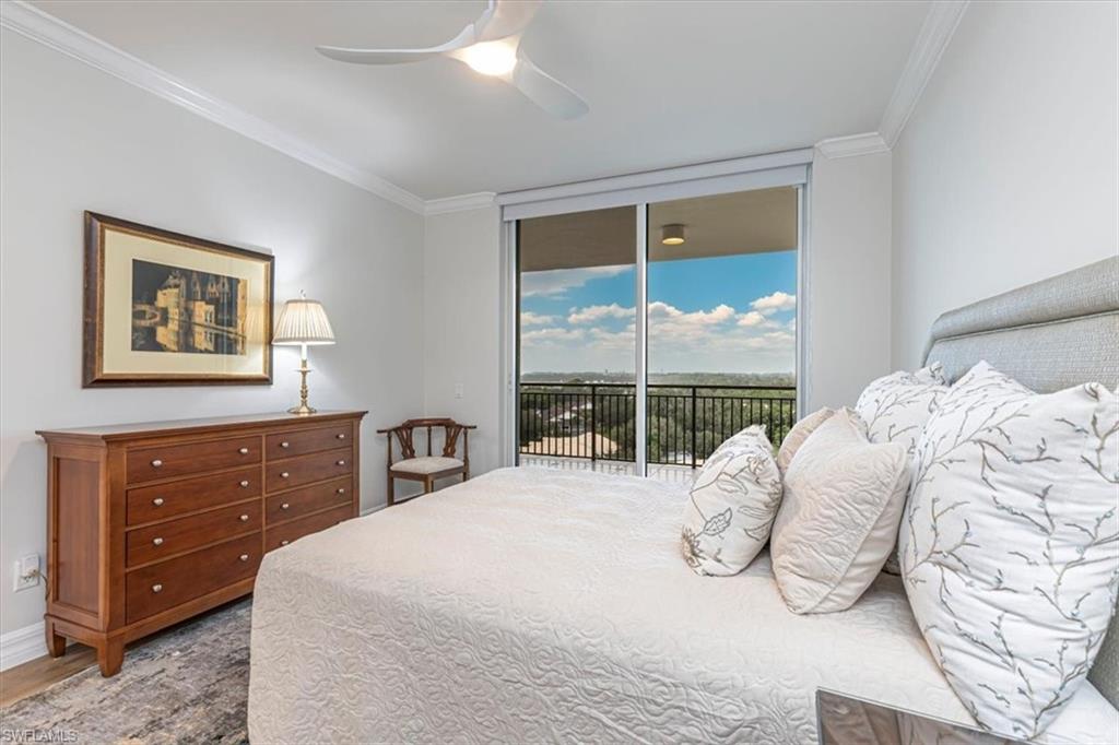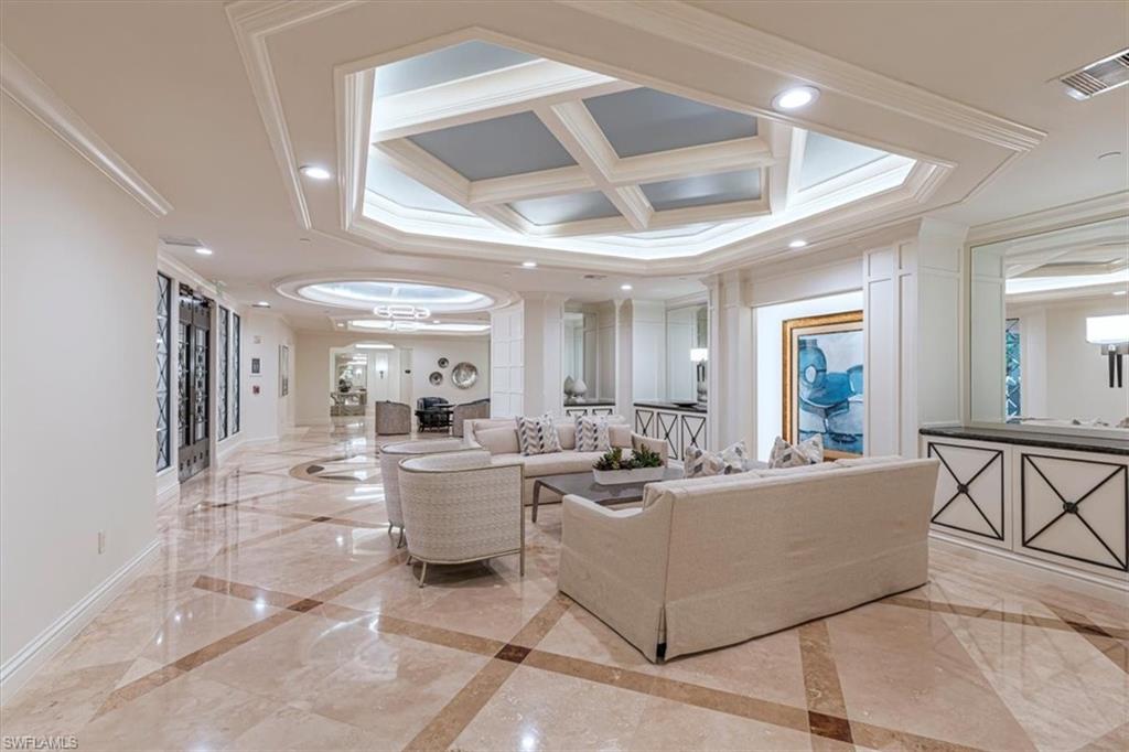 PRIVATE ENCLOSED 2-CAR HUMIDITY CONTROLLED UNDER BUILDING GARAGE WITH LARGE HUMIDITY CONTROLLED STORAGE UNIT INSIDE!! Both have dehumidification to keep everything cool and dry all year long! Fantastic sunrise to sunset UNOBSTRUCTED views from this absolutely stunning 17th floor "MINI-PENTHOUSE" with 10'+ high ceilings! This spacious 3BR+Den/3BA turnkey furnished residence with incredible panoramic views of the Gulf, Bay, preserve and Naples skyline features soaring ceilings, crown molding, an island kitchen with custom cabinetry, granite counters and newer high-end stainless steel appliances including built-in Sub-Zero refrigerator/freezer, custom built-in closets in Primary BR, marble Primary Bath, surround sound in primary bedroom and living room, hurricane shutters, whole house water purification system and so much more! Whole home leak detection system with sensors throughout all wet areas in the unit (as well as in the entire building) that will shut main water valve and alert the Manager if it detects a leak. A/C’s replaced in 2022 and hot water heater replaced in 2025. Exclusive membership to the PRIVATE CALYPSO CLUB is included with a gorgeous resort-style tropical pool, spa, state-of-the-art fitness center, 2 luxurious guest suites, outdoor pavilion with fireplace, BBQ grills and a beautiful social room with wet bar, fireplace and media center. Also included is a transferable membership to the fabulous Tarpon Cove Beach & Racquet Club with casual and fine dining, 6 Har-Tru tennis courts (lighted for night play!), fully equipped fitness center, island-style pool with tiki bar, bocce courts and an hourly private boat shuttle to the beach. Boat docks available for lease/purchase.