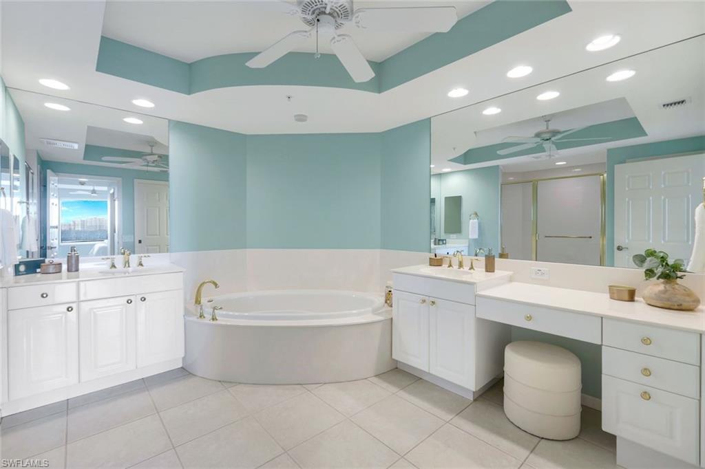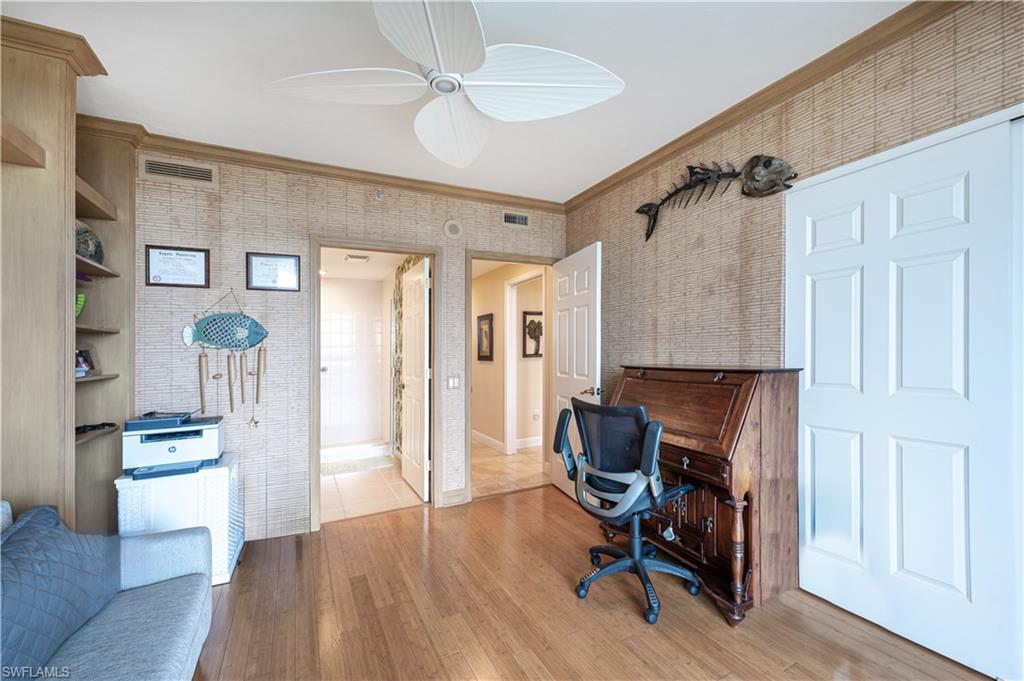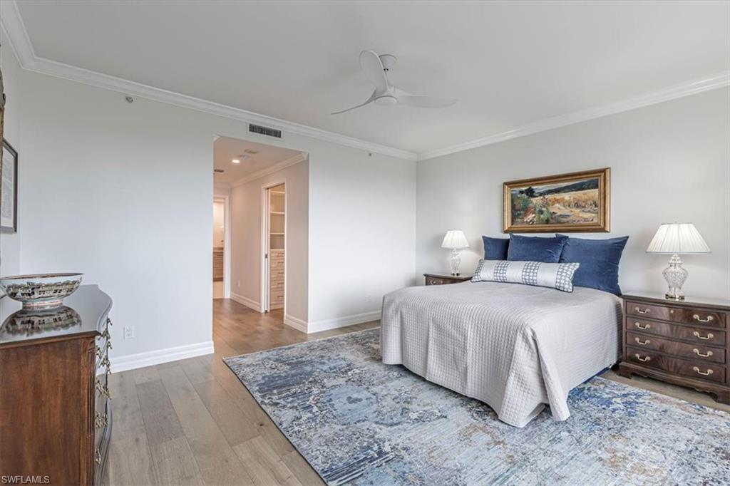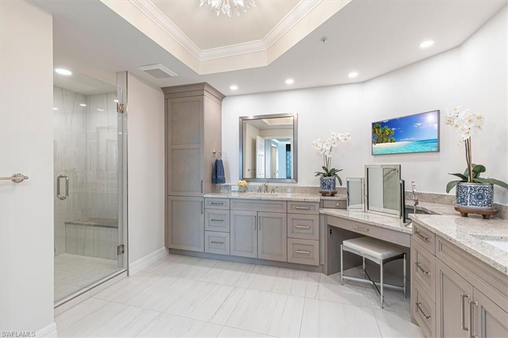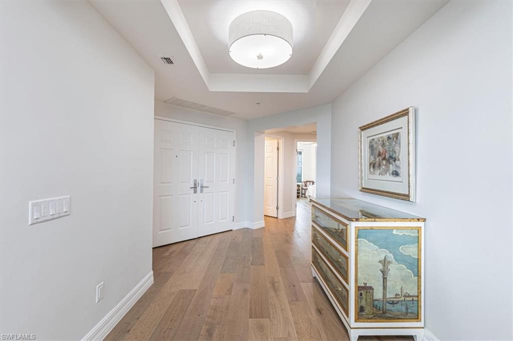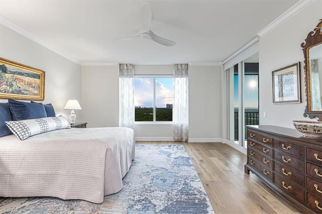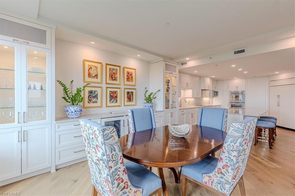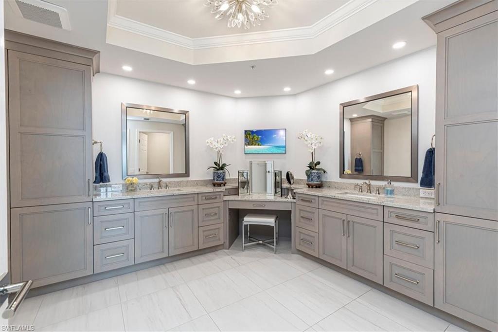 PRIVATE ENCLOSED 2-CAR HUMIDITY CONTROLLED UNDER BUILDING GARAGE WITH LARGE HUMIDITY CONTROLLED STORAGE UNIT INSIDE!! Both have dehumidification to keep everything cool and dry all year long! Fantastic sunrise to sunset UNOBSTRUCTED views from this absolutely stunning 17th floor "MINI-PENTHOUSE" with 10'+ high ceilings! This spacious 3BR+Den/3BA turnkey furnished residence with incredible panoramic views of the Gulf, Bay, preserve and Naples skyline features soaring ceilings, crown molding, an island kitchen with custom cabinetry, granite counters and newer high-end stainless steel appliances including built-in Sub-Zero refrigerator/freezer, custom built-in closets in Primary BR, marble Primary Bath, surround sound in primary bedroom and living room, hurricane shutters, whole house water purification system and so much more! Whole home leak detection system with sensors throughout all wet areas in the unit (as well as in the entire building) that will shut main water valve and alert the Manager if it detects a leak. A/C’s replaced in 2022 and hot water heater replaced in 2025. Exclusive membership to the PRIVATE CALYPSO CLUB is included with a gorgeous resort-style tropical pool, spa, state-of-the-art fitness center, 2 luxurious guest suites, outdoor pavilion with fireplace, BBQ grills and a beautiful social room with wet bar, fireplace and media center. Also included is a transferable membership to the fabulous Tarpon Cove Beach & Racquet Club with casual and fine dining, 6 Har-Tru tennis courts (lighted for night play!), fully equipped fitness center, island-style pool with tiki bar, bocce courts and an hourly private boat shuttle to the beach. Boat docks available for lease/purchase.