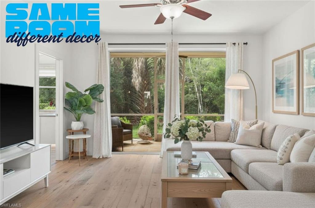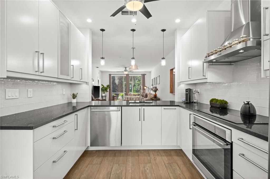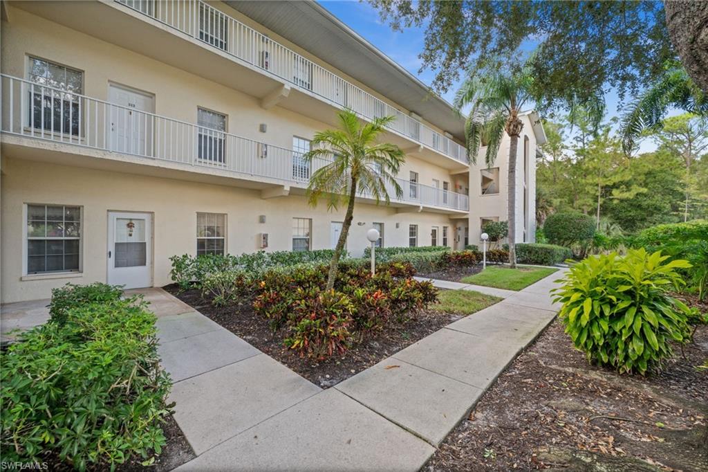 IDEAL LOCATION | 1-CAR ENCLOSED GARAGE | FANTASTICALLY REMODELED | CABLE/INTERNET AND WATER COVERED BY ASSOCIATION FEES LEAVING ONLY ELECTRIC TO PAY ! Discover this beautifully remodeled 2-bedroom, 2-bath condo ideally situated just off Pine Ridge Road, placing you minutes from Naples’ best beaches, shopping, dining, and top-rated schools. With nearly 1,200 square feet of thoughtfully designed living space, this home blends modern upgrades with everyday comfort. A rare feature with this particular unit: your very own detached 1-car garage, included in the sale, perfect for storage or keeping your vehicle out of the Florida sun. Inside, you’ll find custom wide-plank engineered wood flooring, sleek floating vanities, quartz countertops, and Bosch appliances - including an induction cooktop and hooded vent. The kitchen’s hands-free faucet, soft-close cabinetry, and auto light-up drawers add both convenience and sophistication. Every detail has been carefully curated to make daily living feel elevated. The condo also comes with a new air conditioning system, ensuring peace of mind for years to come. Enjoy your private screened lanai or take advantage of the community’s two oversized pools (one just steps away). With low HOA fees you’ll love the worry-free lifestyle. Opportunities like this don’t come around often - you won’t find another one like it. Grab it before someone else does!