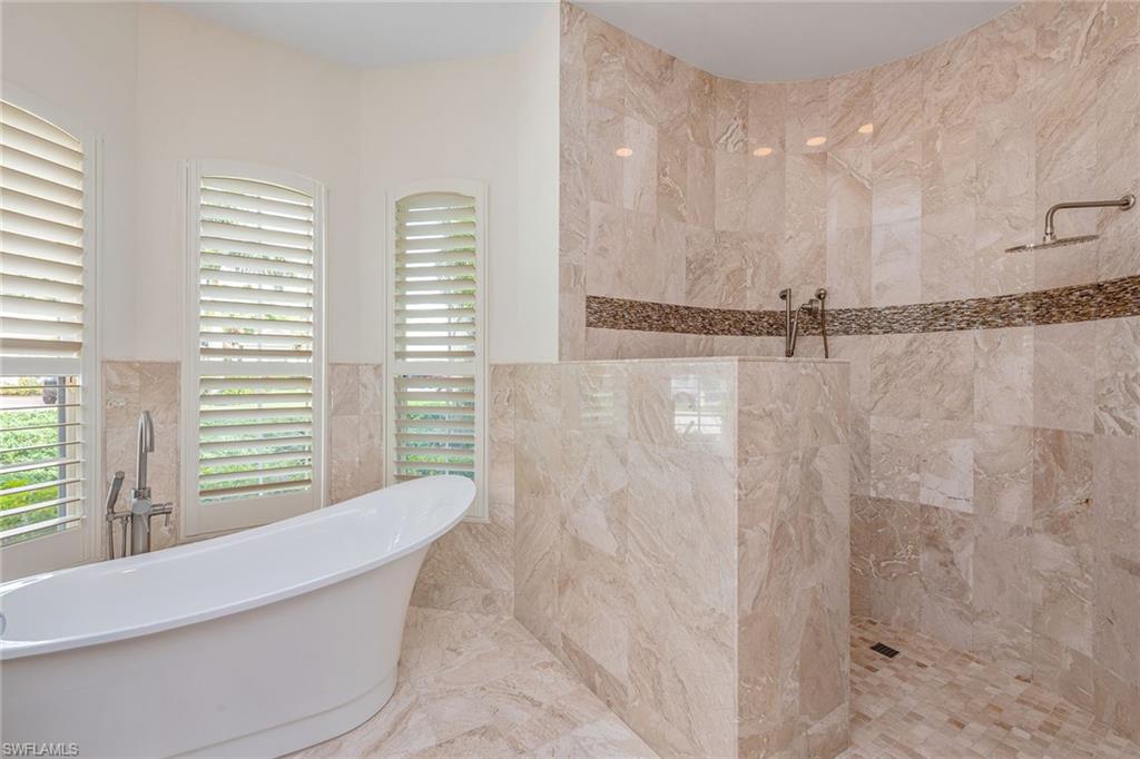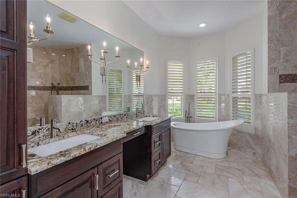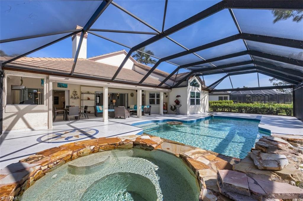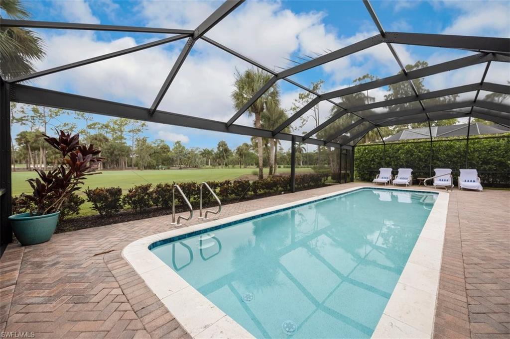 The perfect home for entertaining friends, family, and overnight guests! Even better, a full golf membership is available with this expansive and meticulously maintained Eagle Creek estate residence. This exceptional home offers an abundance of space and luxurious features throughout, providing privacy and open-concept areas. The bright and flowing layout showcases a beautiful kitchen, featuring luxury finishes and premium appliances, seamlessly opening to the dining and living areas, ideal for entertaining or intimate gatherings. Additionally, you will find three generously sized bedrooms, 2.5 baths and a large study with wraparound windows, offering serene water and golf course views. The incredible owner’s retreat includes a welcoming bedroom, attractive bath, ample closet space and a private sitting room with tranquil vistas, a haven for relaxation. Guests will feel right at home in the private guest suite, which boasts its sitting room, a spacious bedroom, a well-appointed bath and two large closets. The third guest bedroom is thoughtfully situated for privacy with easy access to a nearby luxurious bath. This home is on an oversized .41-acre lot, showcasing breathtaking water and golf course views. Step outside to enjoy these stunning vistas and famed Naples sunsets from the inviting covered lanai or take a dip in the sparkling swimming pool and spa, surrounded by a marble pool deck and panoramic screen enclosure. Even better, this home features a newer tile roof, two new HVAC systems and electronic storm screens on the lanai. This one-of-a-kind property is the epitome of country club living. Eagle Creek’s main clubhouse just underwent a complete remastering, transforming it into one of the finest clubhouses in Naples. Ready for its next owner, this home promises a lifestyle of elegance, relaxation and entertainment. Please note that the total HOA costs listed on external sites are inclusive of master HOA, estate home HOA, and club membership dues.