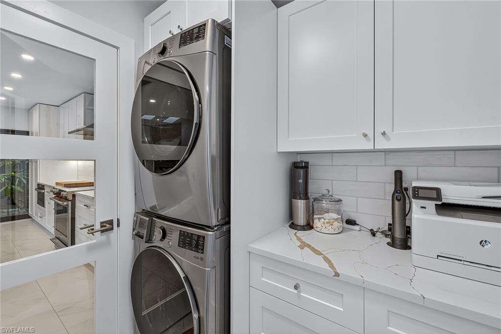 Positioned to capture sweeping west-facing water and golf course views, this refined three-bedroom, two-and-a-half-bath estate home in Eagle Creek Golf and Country Club offers a rare blend of privacy, elegance and resort-inspired living. As the sun sinks over the fairways, enjoy an unrivaled front-row seat to Naples famed sunsets from nearly every vantage point. Inside, marble flooring flows throughout most of the residence, setting a sophisticated tone that carries from the foyer into the bright and open living spaces. The updated kitchen, designed with form and function in mind, features solid wood cabinetry, premium appliances and a walk-in pantry, a thoughtful blend of timeless design and everyday utility. The light-filled primary suite is a serene retreat, with long views of the pool and tranquil vistas beyond. Two custom walk-in closets and a bath finished in elegant marble add a quiet sense of luxury. Outdoors, the residence unfolds into a destination all its own. A large covered lanai and expansive marble pool deck frame the oversized pool and spa, while a panoramic screen enclosure ensures every view remains uninterrupted. It’s a space designed to be peaceful and social, equally suited for quiet mornings or evening gatherings. Recent updates, including a newer tile roof, air conditioning system and water heater, provide peace of mind and lasting value. A short distance away, the newly renovated Eagle Creek clubhouse invites residents to experience championship golf, elevated dining and a vibrant social calendar. For those seeking wellness and leisure, the nearby Crystal Lake clubhouse offers outdoor dining, a fitness facility, tennis and pickleball, and a resort-style pool set among lush landscaping. This is more than a home, it’s a lifestyle framed by views, and tailored for the best of country club living.