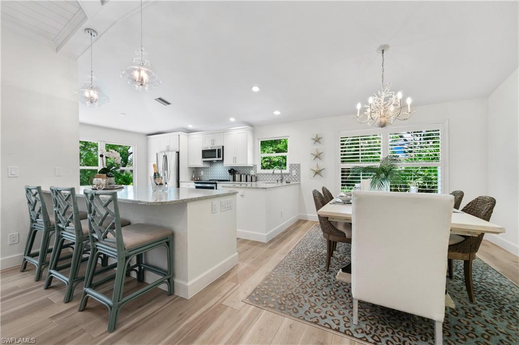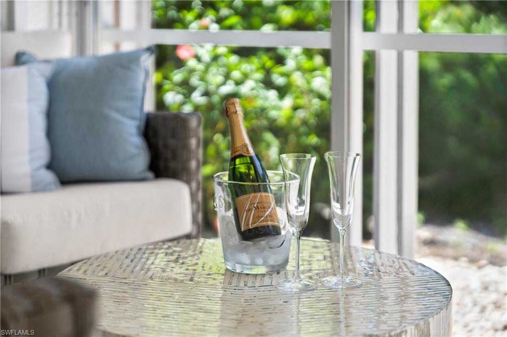 Discover the perfect blend of style, comfort, and convenience in this fully renovated and completely furnished corner residence in the centrally located Villages of Emerald Bay. From the private gated courtyard entry to the soaring ceilings and light-filled living spaces, every detail has been designed for easy living and timeless appeal. The home has been completely reimagined with updated flooring, quartz countertops, polished nickel fixtures, custom cabinetry, designer lighting, and premium appliances. The primary suite offers a serene retreat with a custom makeup area and updated bath, while the guest bath and laundry feature the same high-end finishes with new washer, dryer, sink, and storage. Additional upgrades include impact glass sliders and windows with transferable warranty, new A/C with UV light, refinished ceilings, tiled lanai with new fan, and new doors and baseboards throughout. Offered fully furnished with designer pieces from Ethan Allen, Lexington Tommy Bahama, Bernhardt, and more, this home is truly move-in ready. The Villages of Emerald Bay is one of the best-located gated communities in Naples, west of US-41 and only a few short minutes to the beautiful Vanderbilt Beach, Mercato, and world-class dining/entertainment/shopping. With 216 residences tucked among lakes and lush landscaping, residents enjoy two heated pools and spas, tennis and pickleball courts, a clubhouse with library and event space, and a very active social calendar. This is a rare opportunity to own a fully renovated, designer-furnished residence in a community that captures the very best of the Naples lifestyle. Schedule your private tour today!
