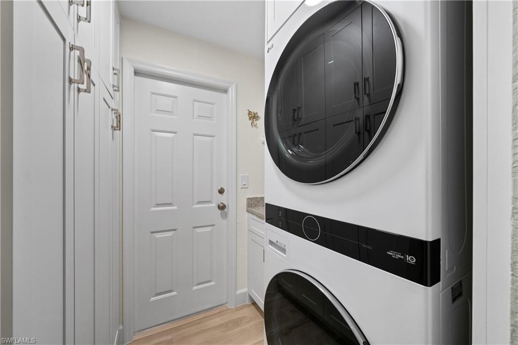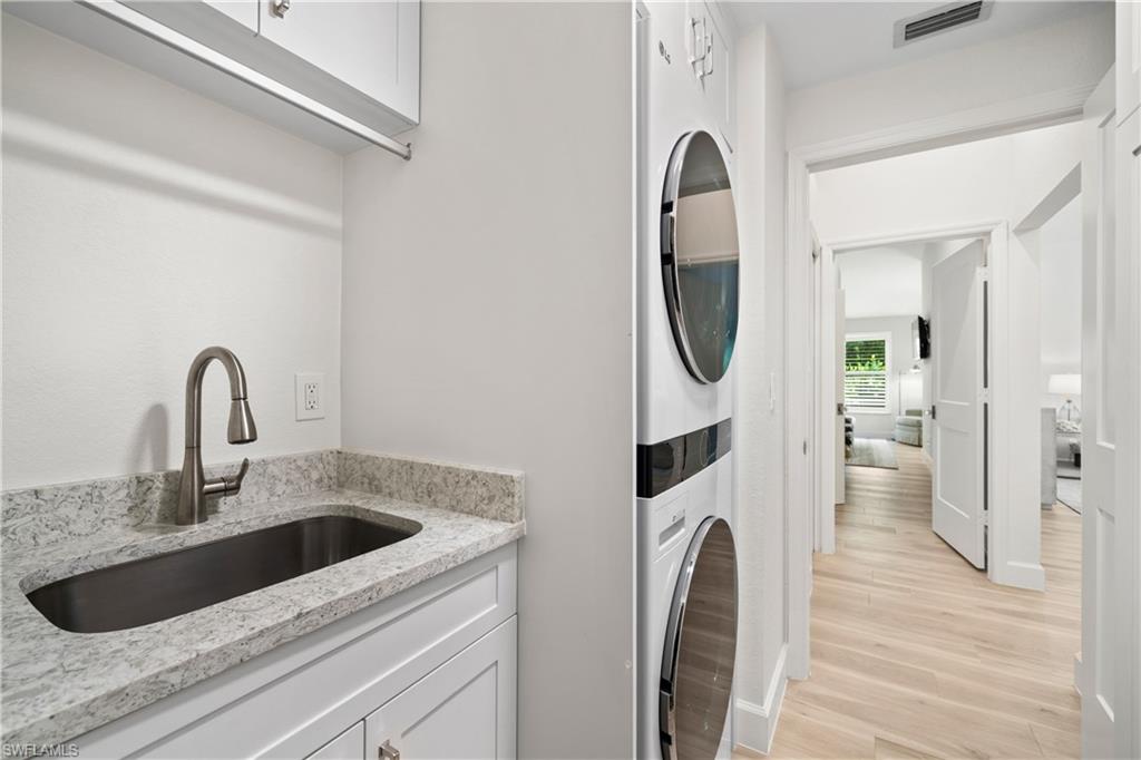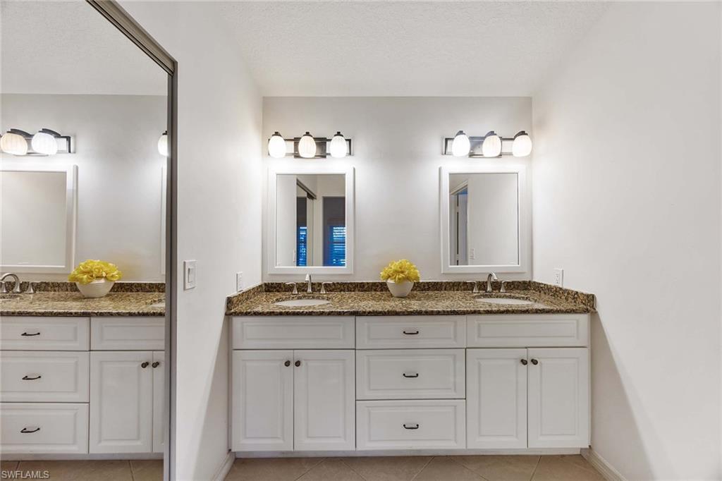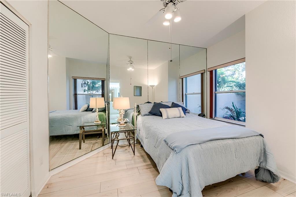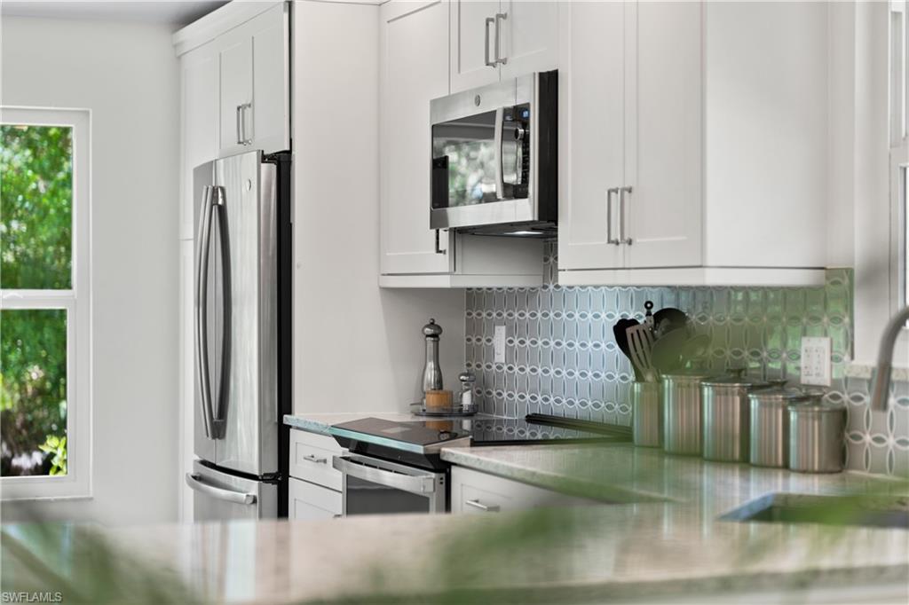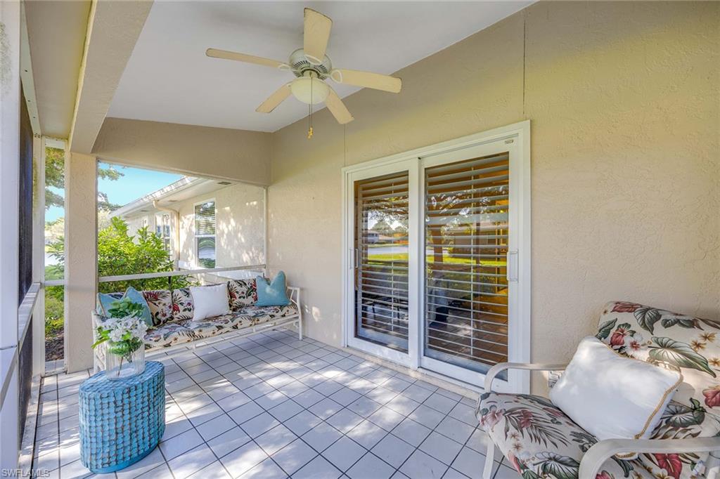 Wake up to breathtaking sunrises over the sparkling, long lake from the most sought-after building in Emerald Bay! Enjoy your morning coffee while taking in the scenic views from this beautifully updated and turnkey furnished condo, designed for comfort and style. It’s perfect for easy move-in or could serve as an exceptional seasonal investment property. Upon entry, you’ll be greeted by a charming, furnished courtyard that sets the tone for the inviting interior. Inside, the bright, open-concept living area features a spacious great room, dining area, and kitchen – ideal for both relaxing and entertaining. The kitchen has been thoughtfully renovated with crisp white shaker cabinetry, elegant granite countertops, a stylish backsplash, ambient lighting, slide-out shelves, a reverse osmosis water system, and a premium Subzero fridge. Both bathrooms feature stylishly updated vanities and sleek frameless glass showers for a polished look. Additional highlights include brand-new luxury vinyl plank flooring in the bedrooms, crown molding, decorator lighting, new ceiling fans, plantation shutters, built-in bedroom closets, and a motorized window shade at the slider for added privacy & convenience. The front door features a glass/screen combo to let in the breeze while keeping insects out. You can rest easy with impact windows and slider doors throughout, as well as a new water heater for peace of mind. The Villages of Emerald Bay is a picturesque, gated community located just west of U.S. 41, conveniently close to Delnor-Wiggins State Park, Vanderbilt Beach, Barefoot Beach & Bonita Beach. Its prime location places residents between two popular shopping and dining destinations, Mercato and Coconut Point Mall, making it ideal for those seeking both tranquility and accessibility. The neighborhood is renowned for its tree-lined streets and offers an array of amenities, including two community pools (this unit is just steps away from one of them), a hot tub, clubhouse, tennis/pickleball courts and an active social calendar. The Villages of Emerald Bay seamlessly blends a peaceful sanctuary with convenient access to all the best dining, shopping, and attractions that Naples and the surrounding areas offer. Whether you're looking for a serene winter retreat or a smart investment, this condo has it all!