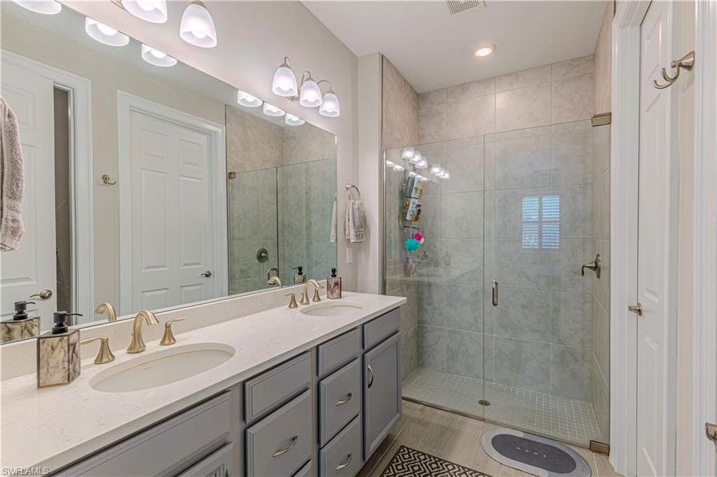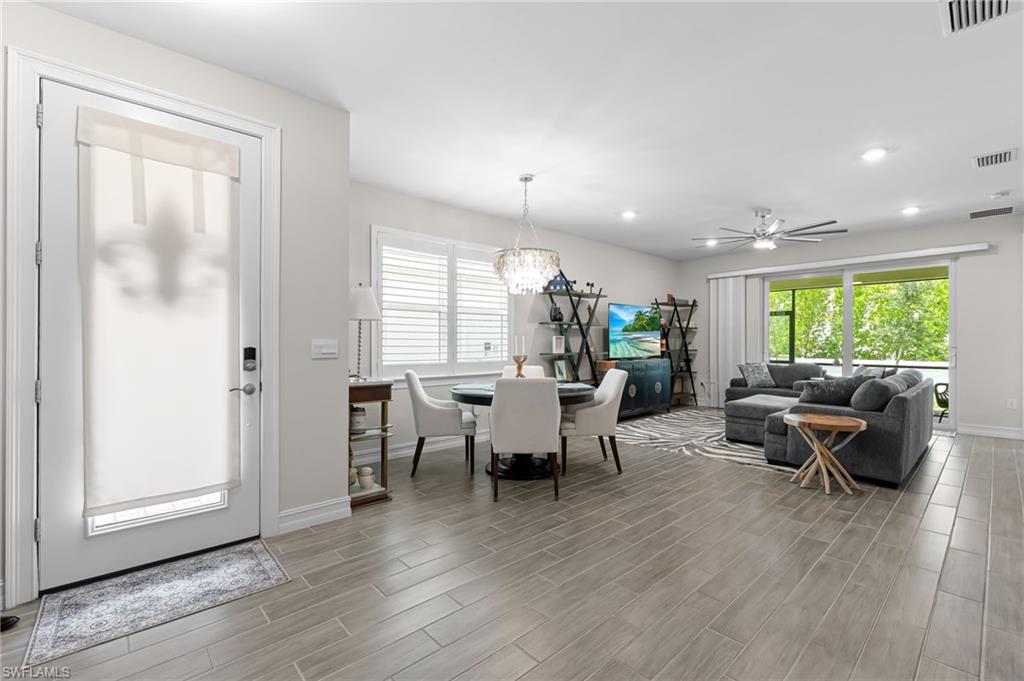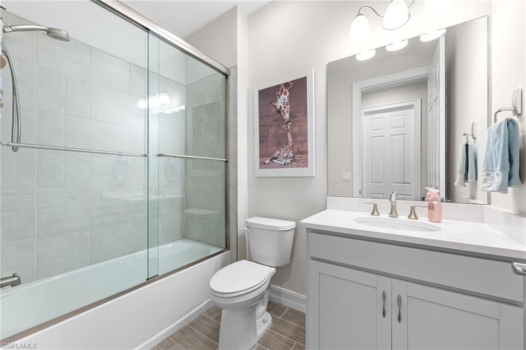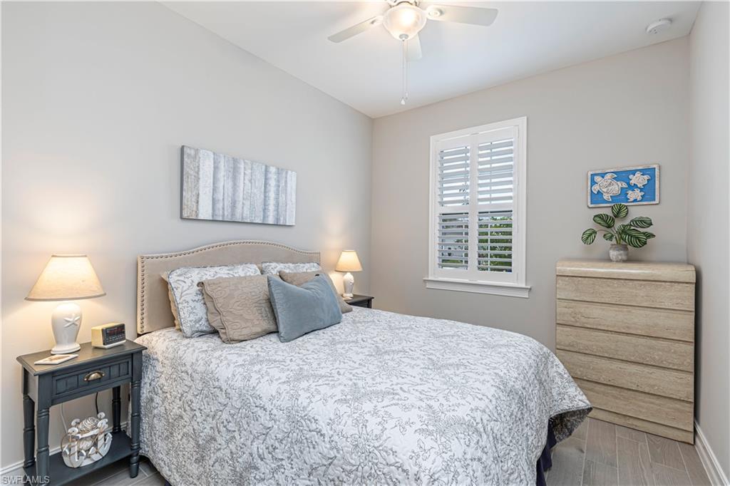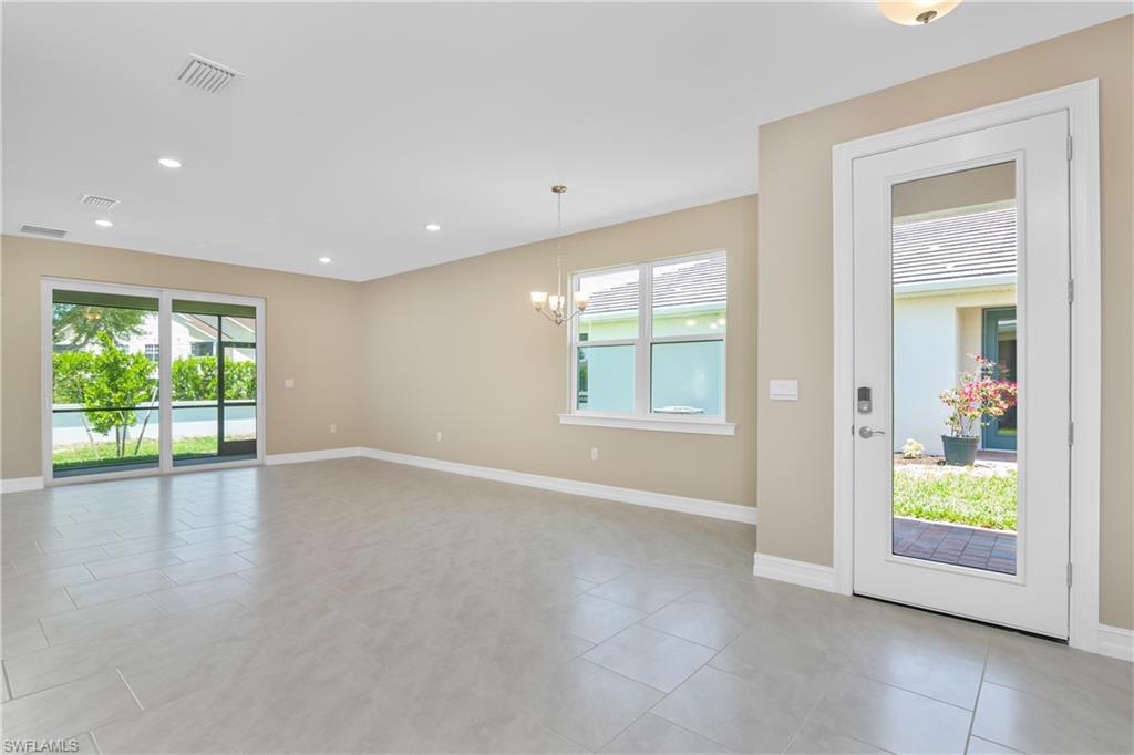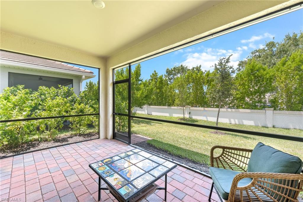 PRICED TO SELL!! MOVE IN READY—2023 BUILD!! Welcome to this elegant and meticulously maintained home in beautiful Naples, Florida! This home is one of the few villa's in Enbrook that is located in "X" flood zone which means NO flood insurance required AND comes with transferable Builder Home Warranty. A stunning 2 bedroom + den, 2 bathroom residence boasts modern features, high end finishes and an inviting open concept design - perfect for both relaxation and entertaining. You will fall in love with the stylish tile wood plank flooring, modern lighting and ceiling fans and premium finishes throughout. Each hurricane-rated window is equipped with beautiful custom Plantation Shutters. The large hurricane-rated lanai slider has a wonderful custom power shade to operate at the push of a button to allow the natural light to flow throughout. The gourmet kitchen boasts upgraded cabinetry, stainless steel appliances, convection oven, quartz countertops and large island to enjoy your morning breakfast. The luxurious primary suite features a walk in closet with custom closet organization, dual vanity and large walk-in tiled shower. This SMART HOME complete with an added ADT Alarm System with window and door sensors, plus cameras will not only provide extra security but allow you to control your home selected lights, thermostat, doors including garage electronically by the touch of your cell phone. The covered screened-in lanai is a perfect oasis for enjoying Florida's beautiful year-round weather. In addition to the private western facing lot you will notice the added benefit of extra land on this one-of-a kind lot. Located in the vibrant Enbrook community, this home offers resort-style amenities including a modern clubhouse with fitness center, pool table, kitchen use and plenty of seating for your party, sparkling pool, pickleball and tennis courts! Enjoy easy access to Naples' and Marco Island pristine beaches, a wide variety of shopping, tantalizing dining and entertainment galore while living in a peaceful and picturesque neighborhood. Don't miss this incredible opportunity to own a beautiful-easy-to-maintain 2-car garage villa in one of Naples' most desirable pet-friendly communities! Schedule your private tour today!