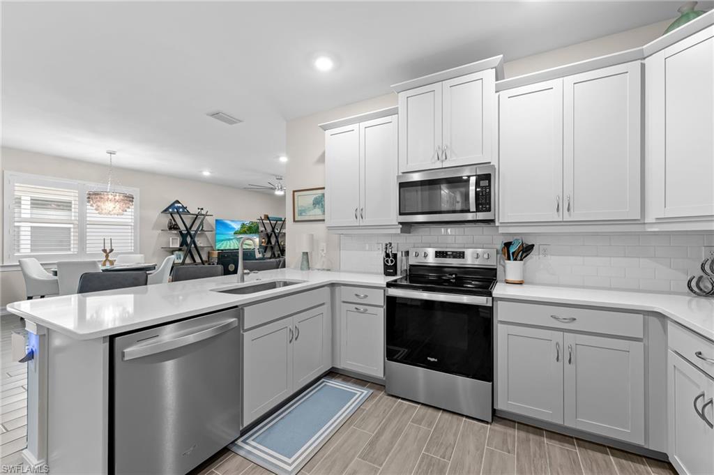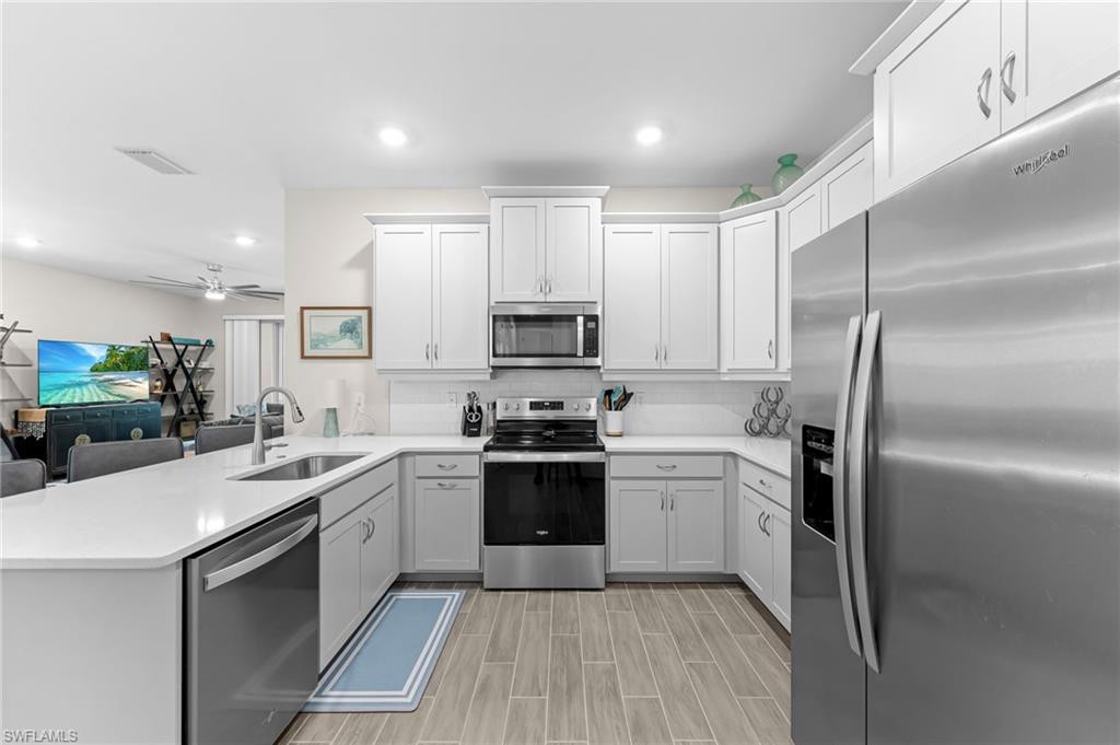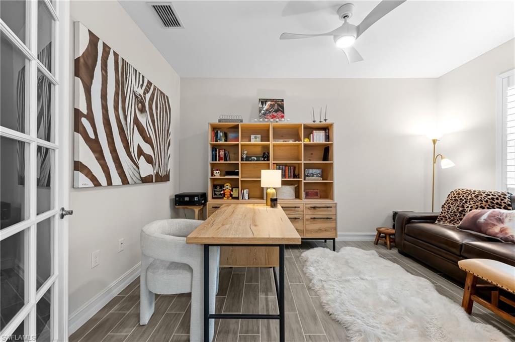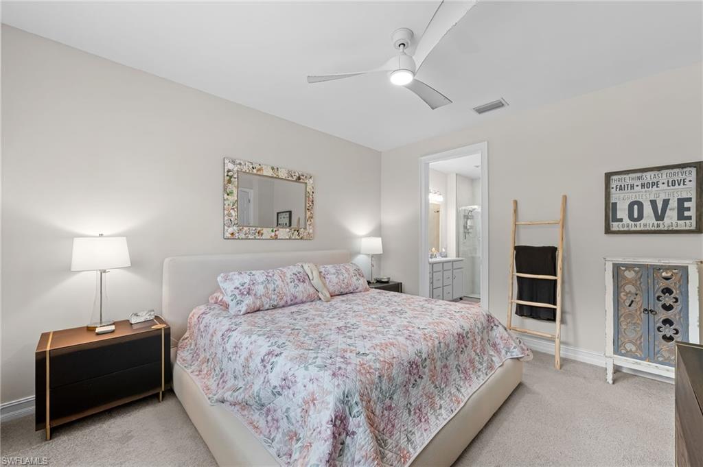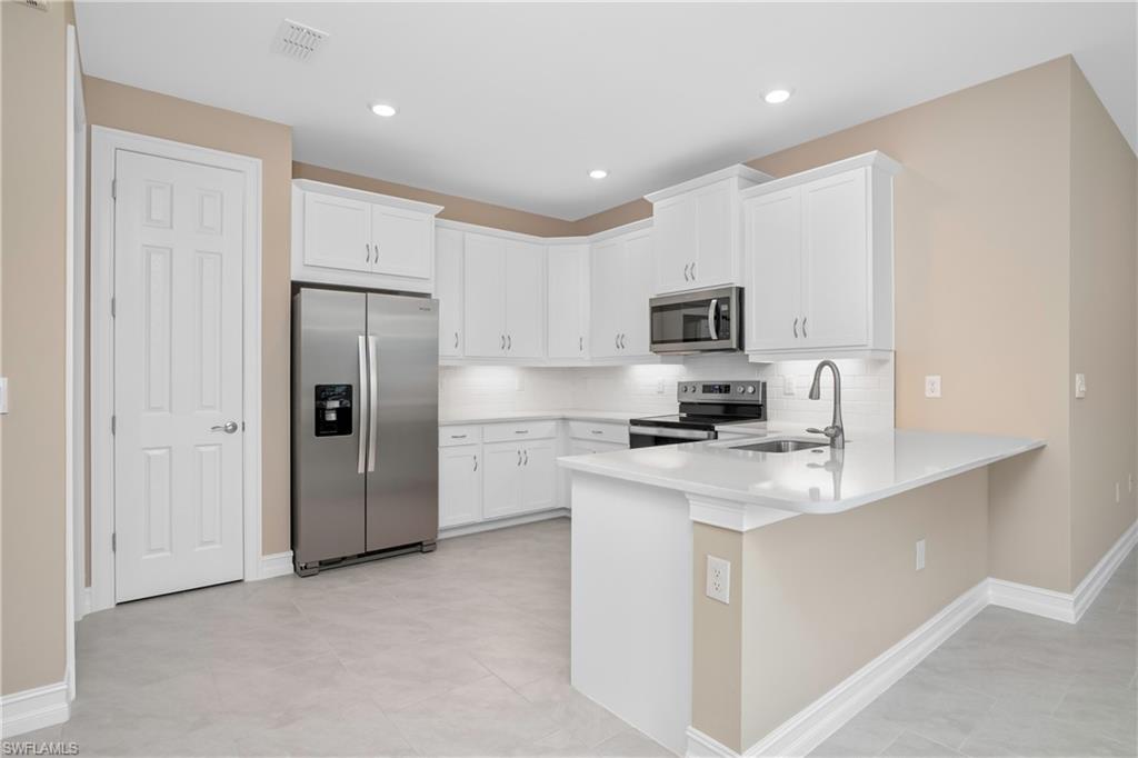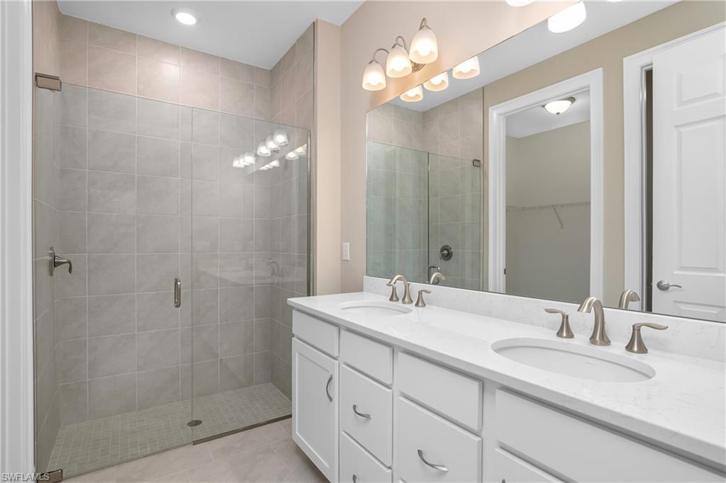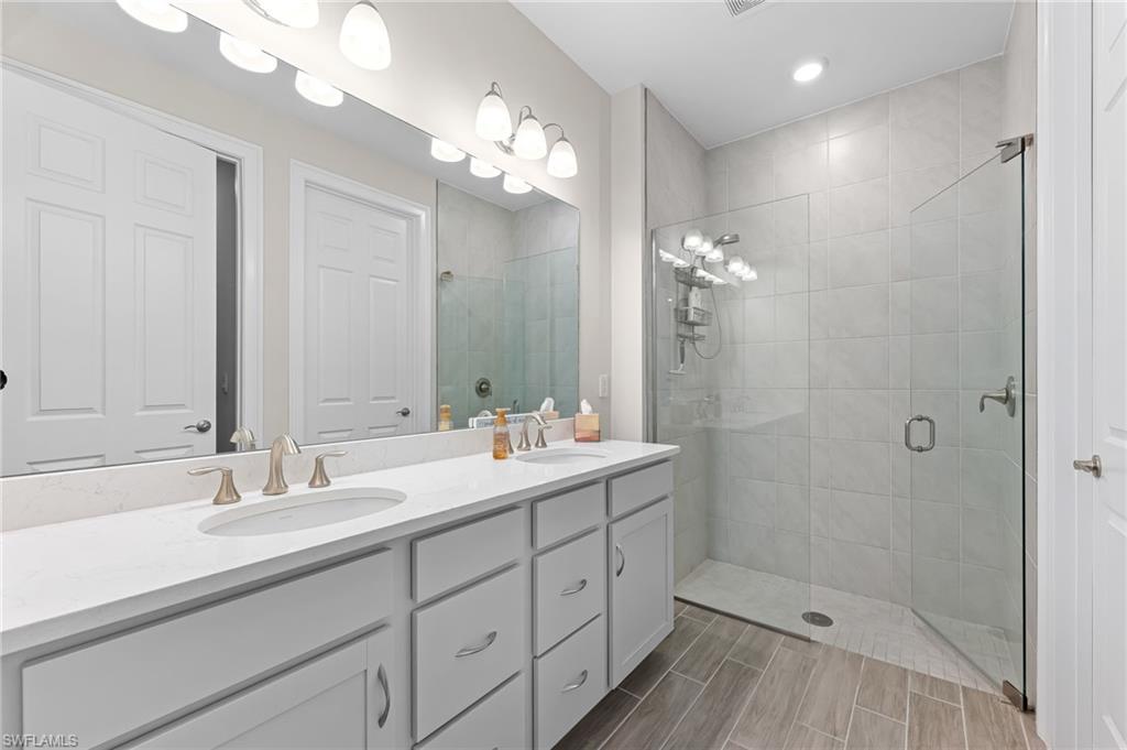 PRICED TO SELL!! MOVE IN READY—2023 BUILD!! Welcome to this elegant and meticulously maintained home in beautiful Naples, Florida! This home is one of the few villa's in Enbrook that is located in "X" flood zone which means NO flood insurance required AND comes with transferable Builder Home Warranty. A stunning 2 bedroom + den, 2 bathroom residence boasts modern features, high end finishes and an inviting open concept design - perfect for both relaxation and entertaining. You will fall in love with the stylish tile wood plank flooring, modern lighting and ceiling fans and premium finishes throughout. Each hurricane-rated window is equipped with beautiful custom Plantation Shutters. The large hurricane-rated lanai slider has a wonderful custom power shade to operate at the push of a button to allow the natural light to flow throughout. The gourmet kitchen boasts upgraded cabinetry, stainless steel appliances, convection oven, quartz countertops and large island to enjoy your morning breakfast. The luxurious primary suite features a walk in closet with custom closet organization, dual vanity and large walk-in tiled shower. This SMART HOME complete with an added ADT Alarm System with window and door sensors, plus cameras will not only provide extra security but allow you to control your home selected lights, thermostat, doors including garage electronically by the touch of your cell phone. The covered screened-in lanai is a perfect oasis for enjoying Florida's beautiful year-round weather. In addition to the private western facing lot you will notice the added benefit of extra land on this one-of-a kind lot. Located in the vibrant Enbrook community, this home offers resort-style amenities including a modern clubhouse with fitness center, pool table, kitchen use and plenty of seating for your party, sparkling pool, pickleball and tennis courts! Enjoy easy access to Naples' and Marco Island pristine beaches, a wide variety of shopping, tantalizing dining and entertainment galore while living in a peaceful and picturesque neighborhood. Don't miss this incredible opportunity to own a beautiful-easy-to-maintain 2-car garage villa in one of Naples' most desirable pet-friendly communities! Schedule your private tour today!