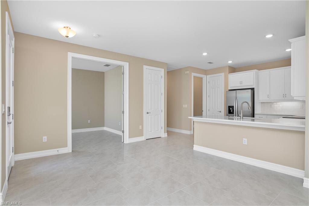 Built in 2023, this immaculate 2 bedroom plus den villa, showcases serene lake and fountain views from the private screened lanai. The sunshade was added for extra privacy while enjoying the sounds from the fountain and sipping your favorite beverage. The open floor plan features plantation shutters, high ceilings, and abundant natural light. The kitchen offers quartz countertops, stainless steel appliances, and a large wrap around bar. The master suite includes a custom walk-in closet, double sink vanity and large walk-in shower. Additional highlights: epoxy-finished garage floor, split-bedroom layout, and versatile den for extra guests or private office space. Separate laundry room with cabinets for storage. Brand new front door screen and numerous ceiling fans, allows the SWFL breeze to pass through the home during the fabulous winter months the Paradise Coast is known for. Other extras for you are the bath mirrors and enhanced landscaping. Enbrook’s gated community amenities include a clubhouse, resort pool, fitness center, tennis, pickleball, and bocce. Ideally located near shopping, dining, and the beaches of Naples and Marco Island. The Marco Island Judge Jolly bridge is 7 miles and Naple's 5th Ave. is 11 miles. Being a Collier County resident, you can enjoy any of the county beach parking lots with your free parking sticker. Seller has made application with FEMA to remove the required Flood Insurance on this property making it possible to finance without flood insurance