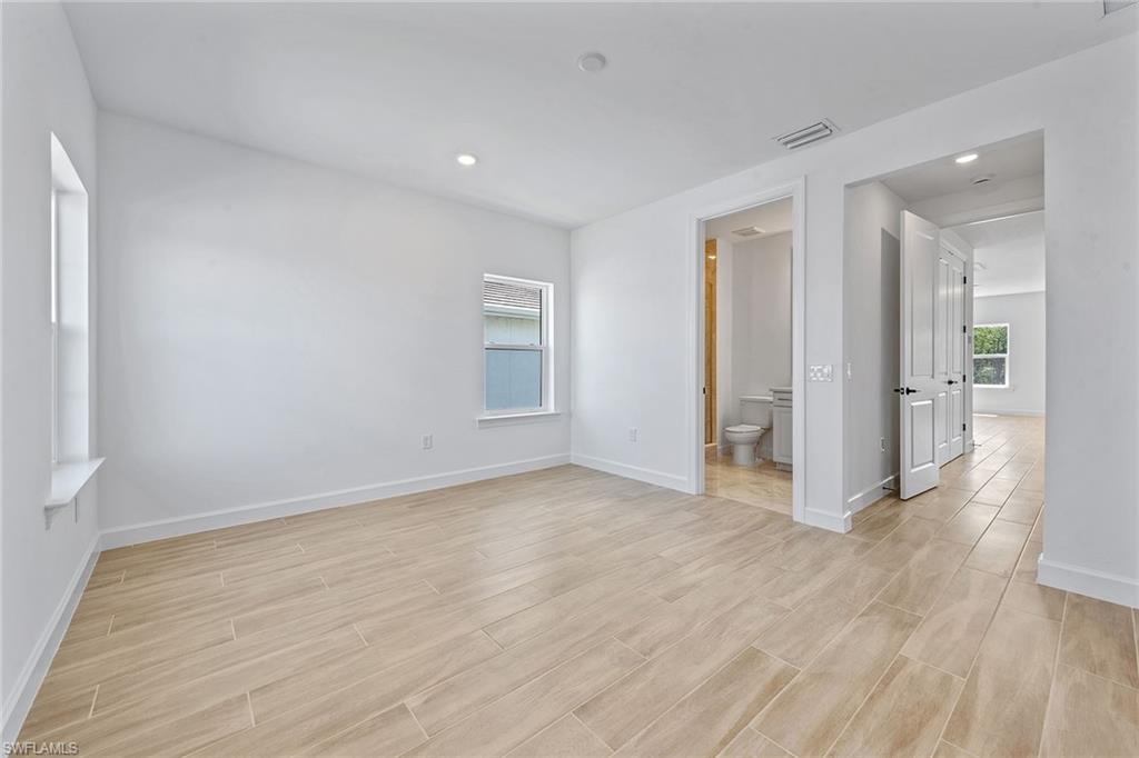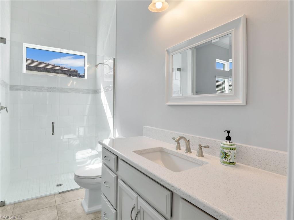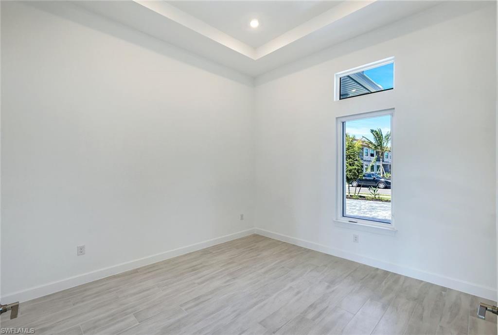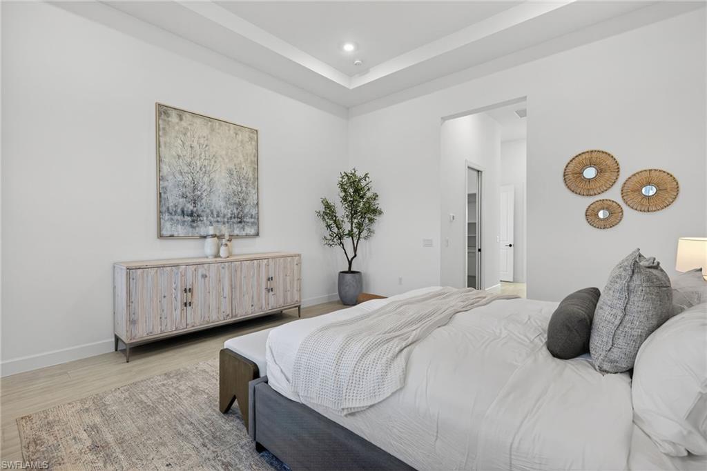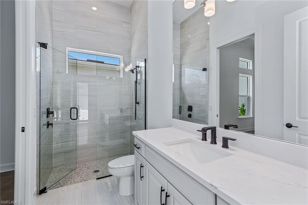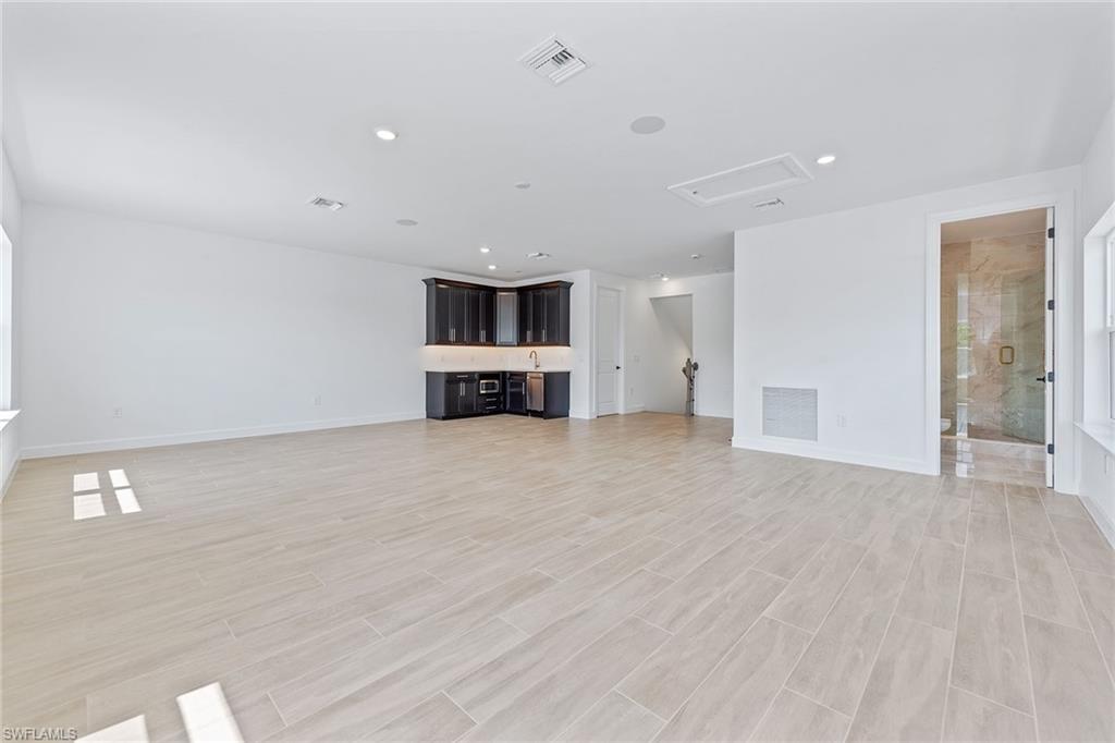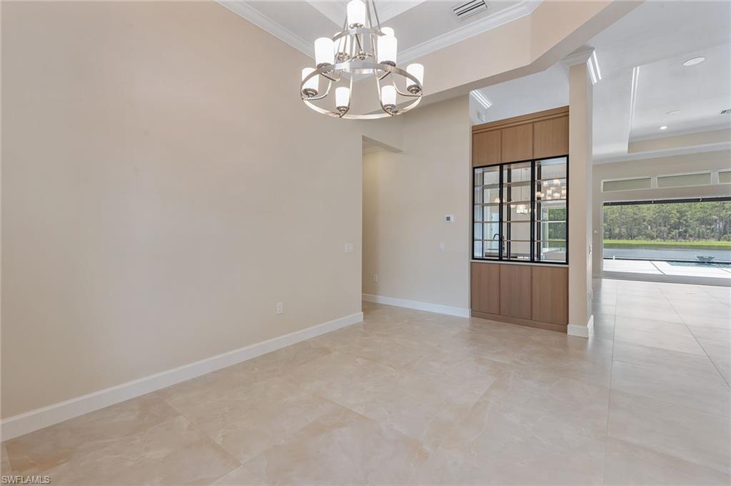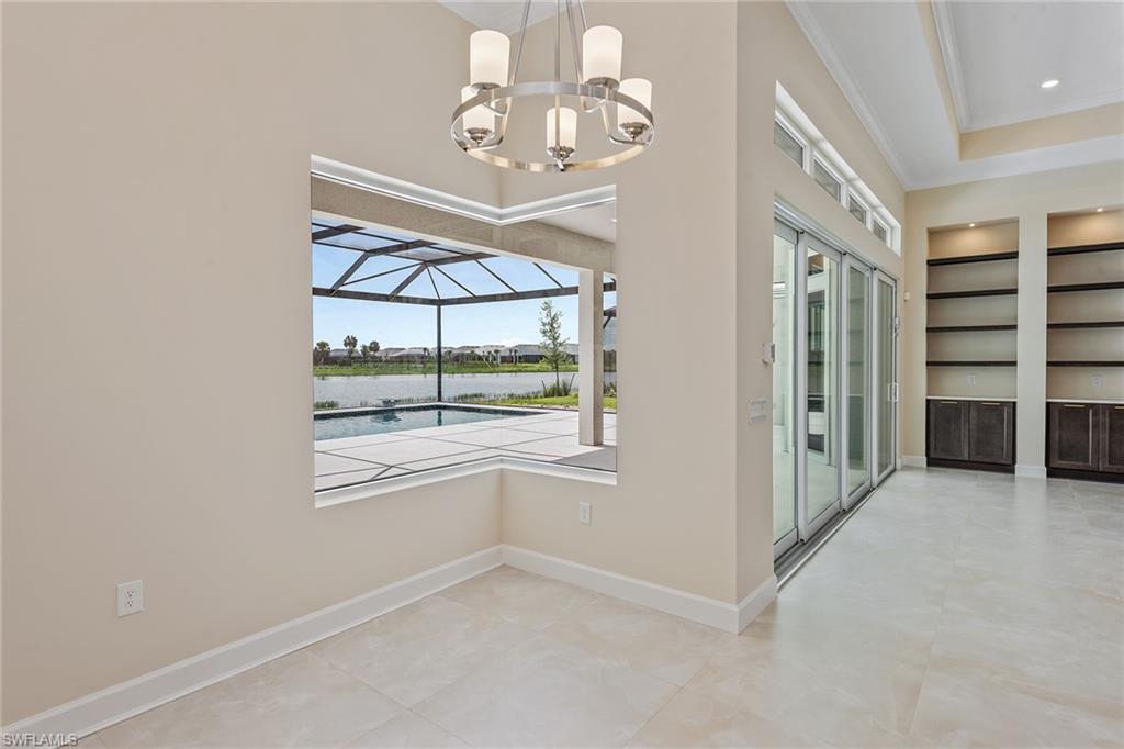 NEWLY BUILT LAKEFRONT POOL HOME WITH UNOBSTRUCTED VIEWS. This 4,500+ sq ft residence sits on a $400K premium lot with long lake views, complete privacy, and no future development across the water. The home impresses from the moment you arrive with an extended paver driveway, upgraded elevation, and hurricane-impact windows and doors. Inside, soaring tray ceilings, wood-beam accents, wainscoting, custom millwork, and wood-like tile floors create a warm, elegant feel. The open great room showcases panoramic lake views, a custom fireplace, built-in TV, and Sonos surround sound. The chef’s kitchen features quartz countertops, a massive island, gas cooktop, double ovens, dual wine coolers, soft-close cabinets, under-cabinet lighting, and a stylish glass-front bar. The first-floor owner’s suite is a private retreat with a bay window overlooking the lake, his/her walk-in closets with built-in cabinetry, and a spa-like bath with quartz counters, dual vanities, and a massive walk-in shower with three shower heads. Each guest bedroom includes an en-suite bath and walk-in closet. Upstairs, the bonus room offers a wet bar, lounge area, a full bath, and an additional guest suite with another full bath attached—perfect for entertaining or hosting guests. The outdoor living space is a true oasis with a gas-heated saltwater pool and spa, panoramic screens, extended lanai space, a full outdoor kitchen with grill, stovetop, sink, fridge, and a dedicated pool bath. Additional highlights include a 3-car epoxy garage, three AC units, tankless water heater, natural gas, generator-ready hookup, and no flood zone. Esplanade by the Islands offers resort-style living with a clubhouse, wine bar, restaurant, tiki bar, fitness center, dog park, and full social calendar—all minutes from Marco Island, Downtown Naples, and Gulf beaches. This home combines custom design, high-end finishes, and a one-of-a-kind lakefront lot—truly a rare find. MAKE AN OFFER TODAY.