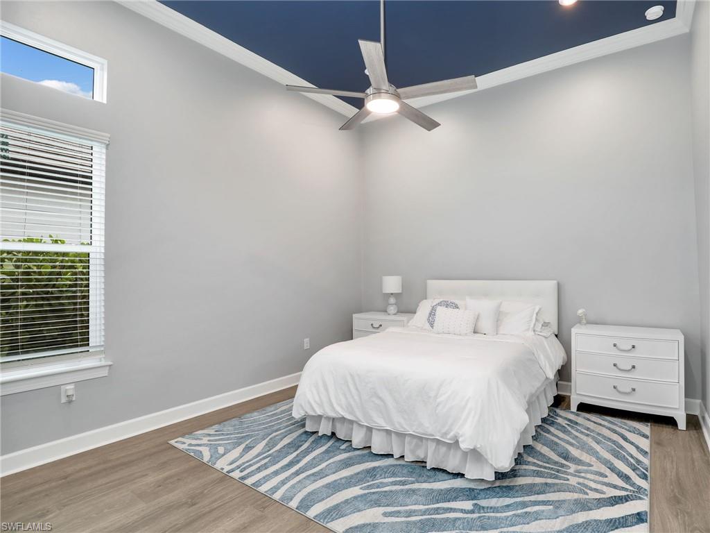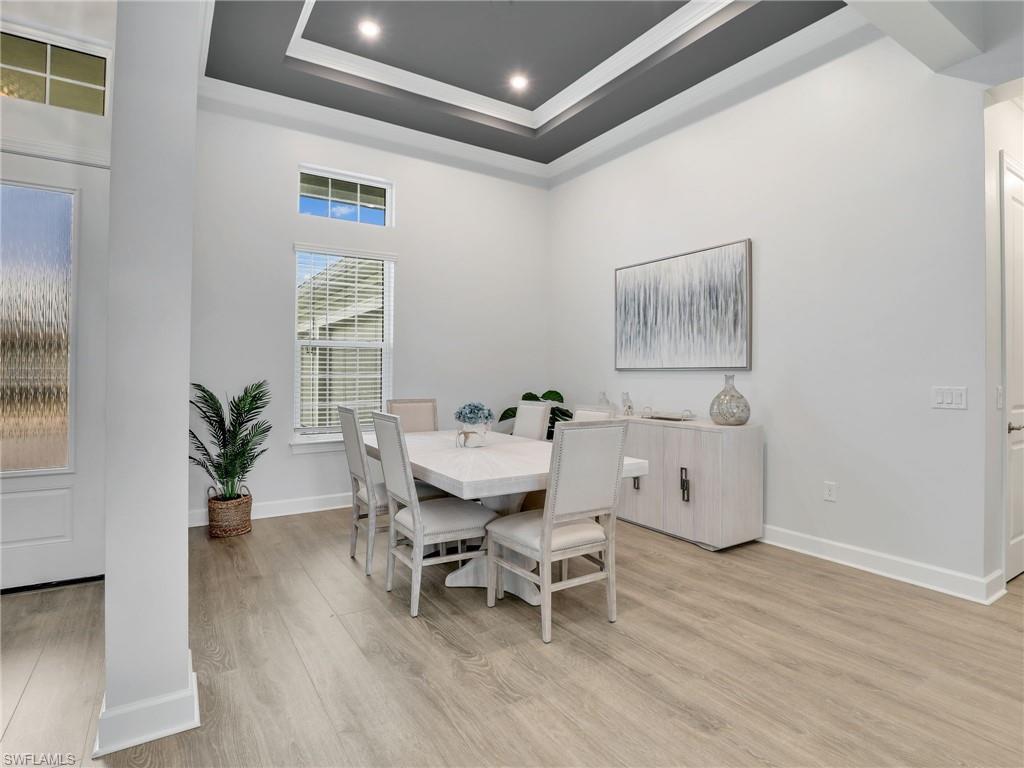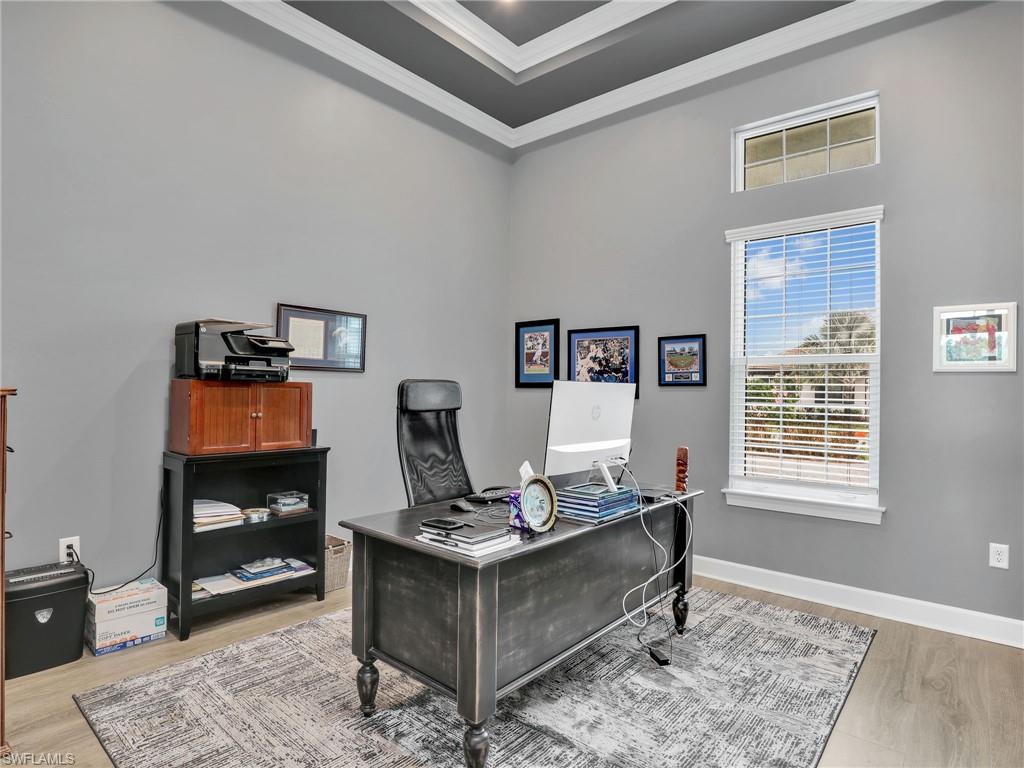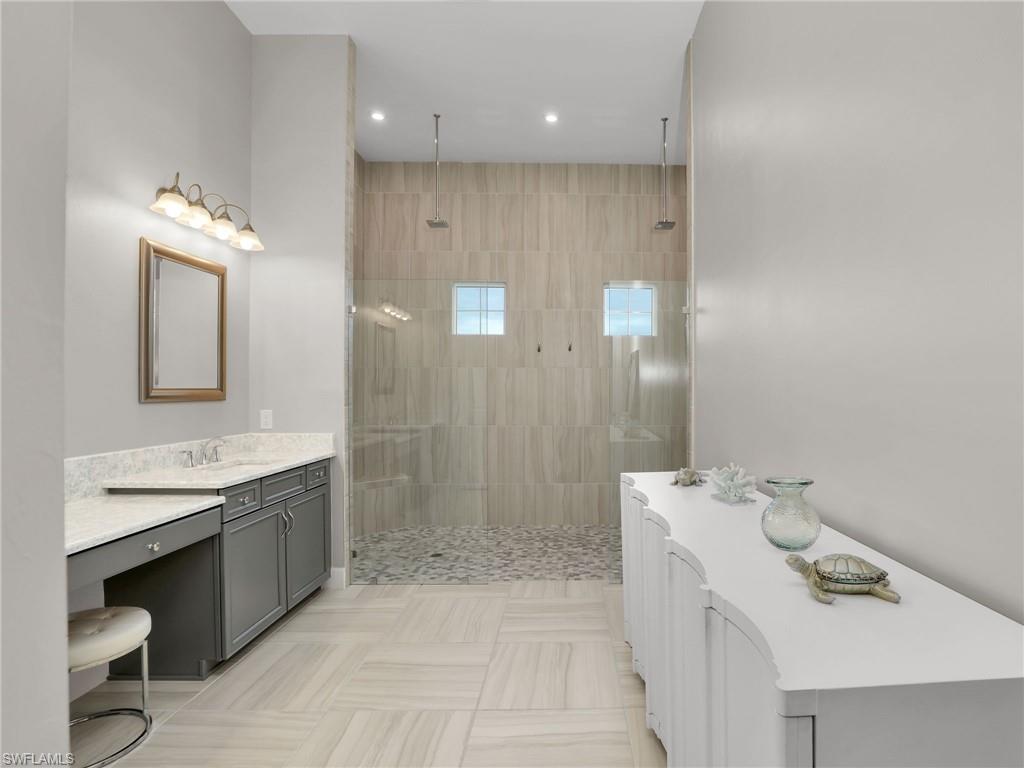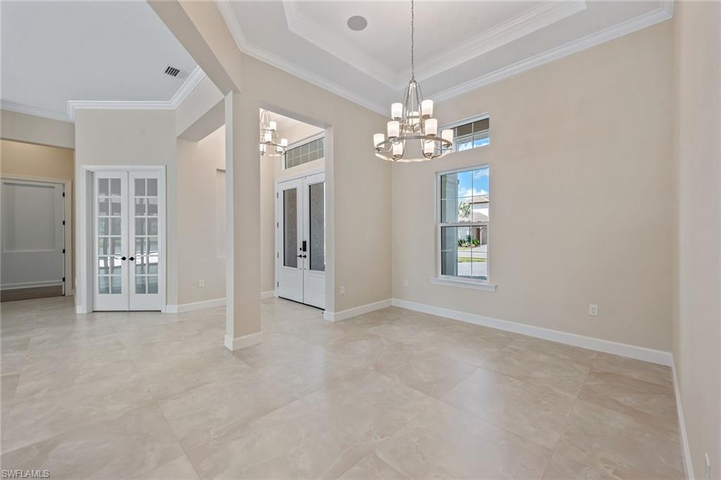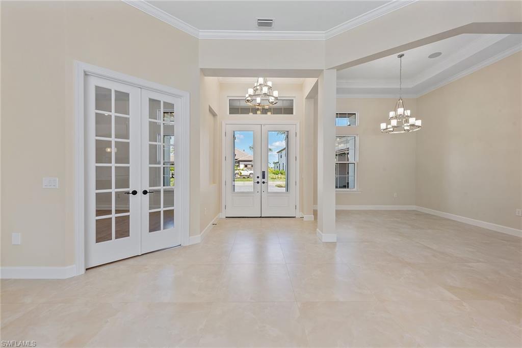 Showcasing a recent $25,000 custom upper-cabinet upgrade, this elegant Beacon with Loft, featuring a refined coastal elevation in timeless hues. Its striking curb appeal opens to a modern floor plan with porcelain tile flooring, 12-foot ceilings, and 8-foot solid-core doors. Impact glass ensures beauty, security, and tranquility. The spacious living area, prepped for a gas or electric fireplace, offers comfort and flexibility. The Chef’s Kitchen boasts shaker cabinetry, under-cabinet lighting, a farmhouse sink, large island, GE Monogram appliances, griddle, and pot filler, 24-inch upper cabinets with glass doors including custom molding will be installed soon. The primary suite features bay window views, two walk-in closets, and a spa-style bath with dual sinks and an oversized dual shower-head shower. Upstairs, the loft includes a private suite, generous living space, and wet bar—ideal for guests or versatile living. Sliding doors lead to a lanai with serene water and palm views, prepped for a custom pool and outdoor kitchen. Nestled in the prestigious Esplanade by The Islands on a prime water lot, the community’s luxurious amenities. Wellness Center, Bahama Bar & Grill, Dog Park, Massage Treatment Room, Fitness Center, Pickleball, Tennis, Bocce Ball, and Resort-Style Pool & Spa with a Culinary Center planned. Enjoy an exceptional upscale lifestyle. Close to dining, shopping, entertainment, downtown Naples, and Marco Island, this home offers refined living. Schedule your private showing today.